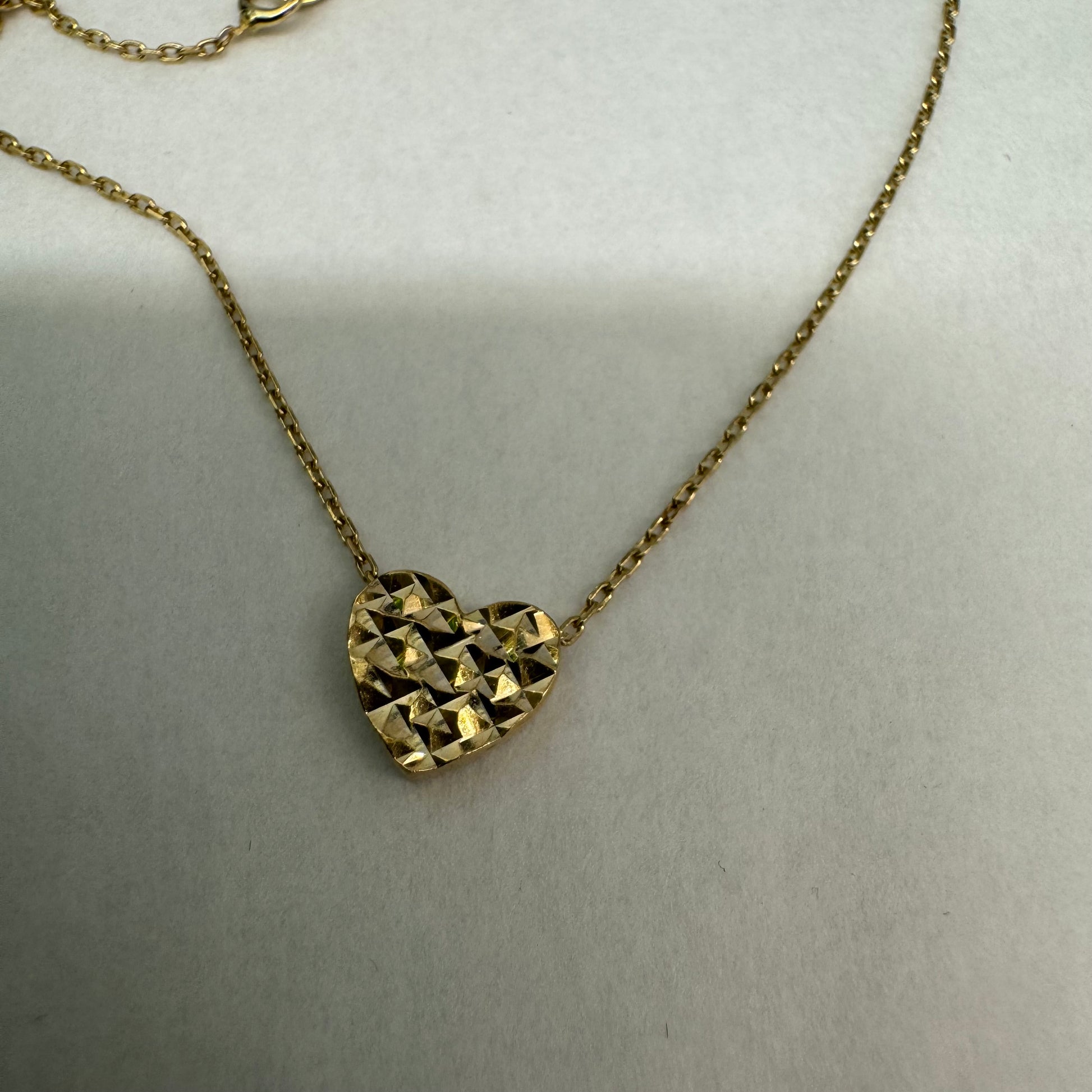 14K gold necklace featuring a heart-shaped pendant with a delicate geometric texture