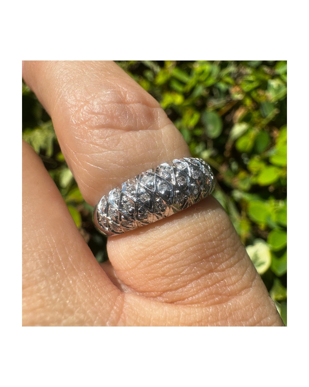 טבעת זהב לבן 14 קראט משובצת יהלומים