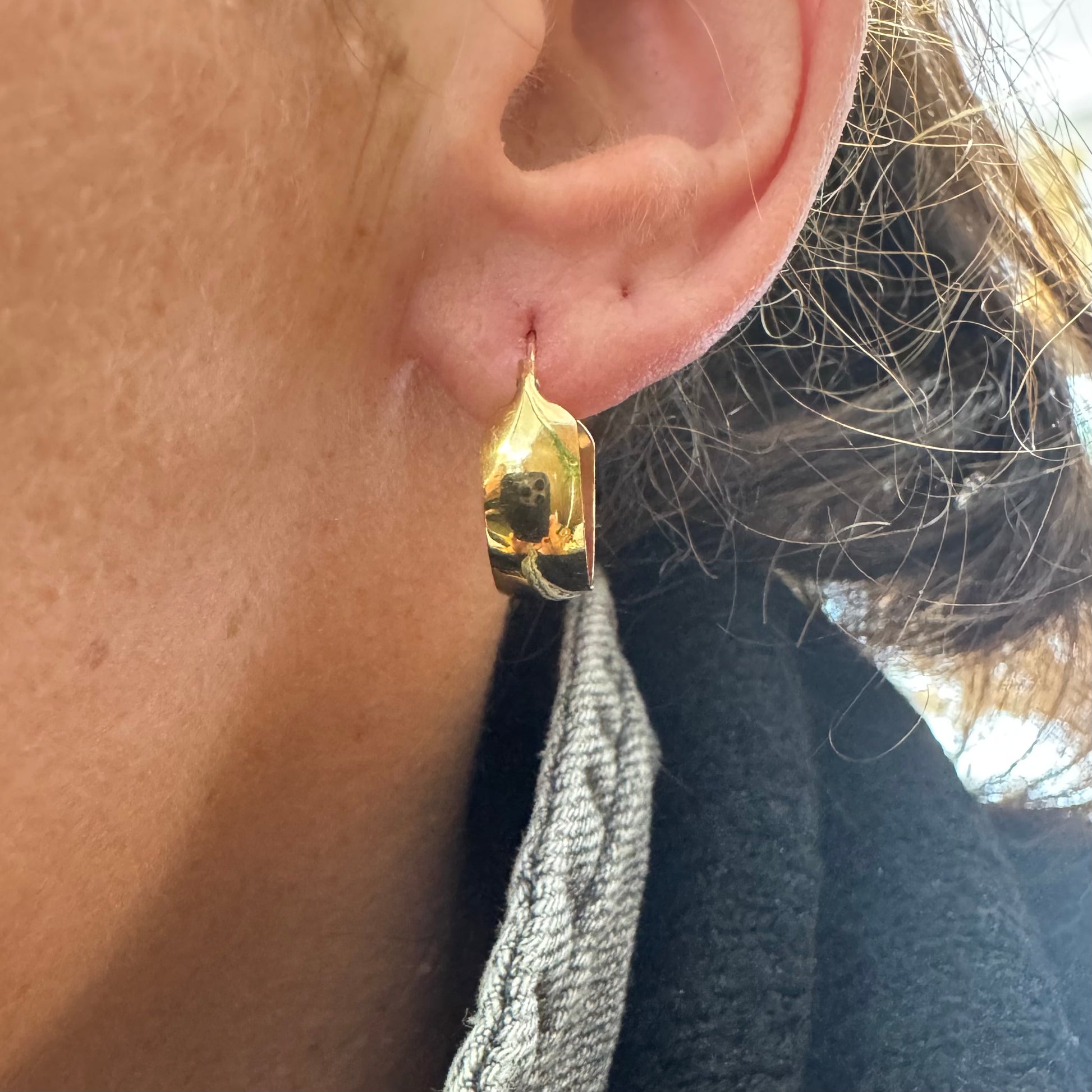 עגילי זהב צהוב 10 קראט חישוקים עבים וקלילים