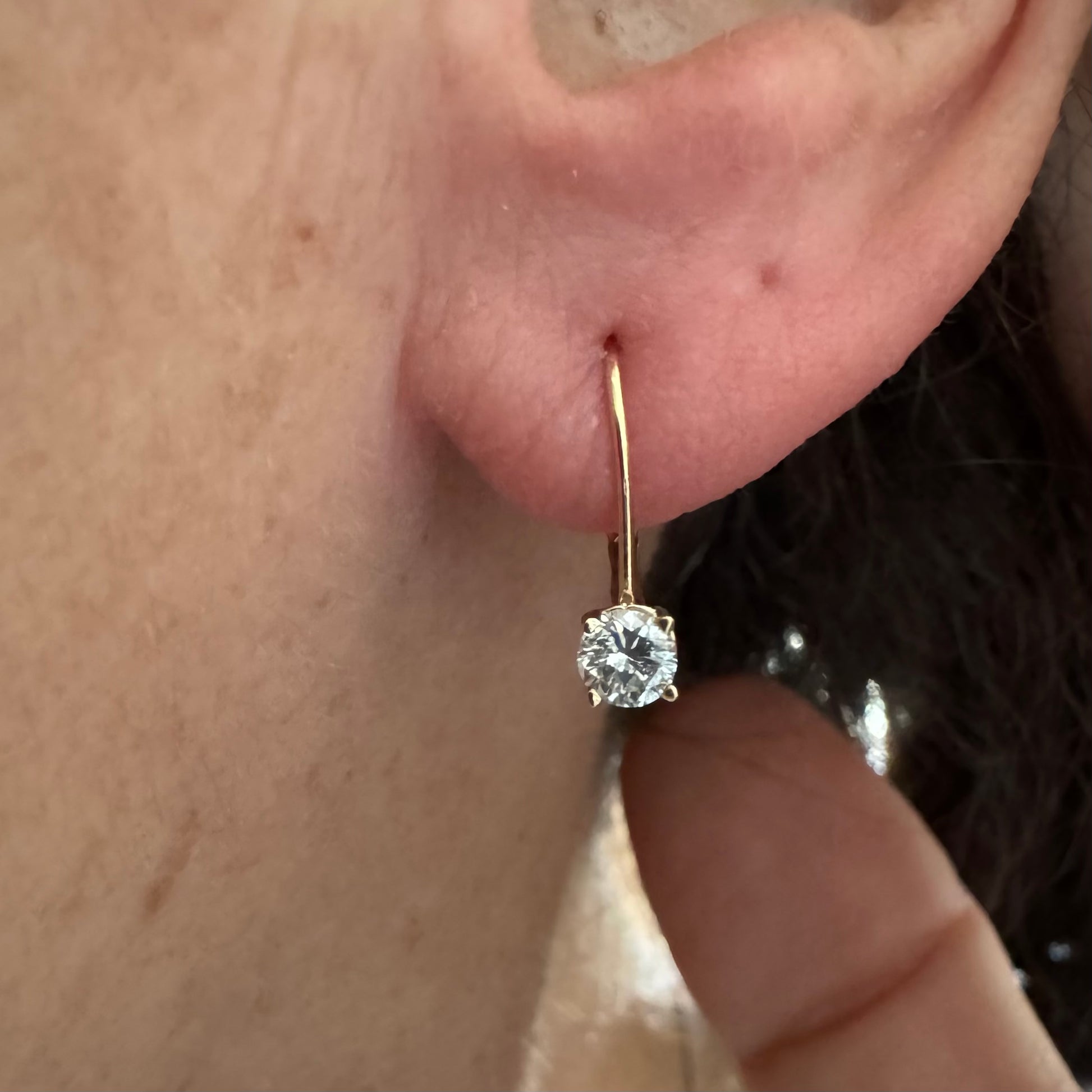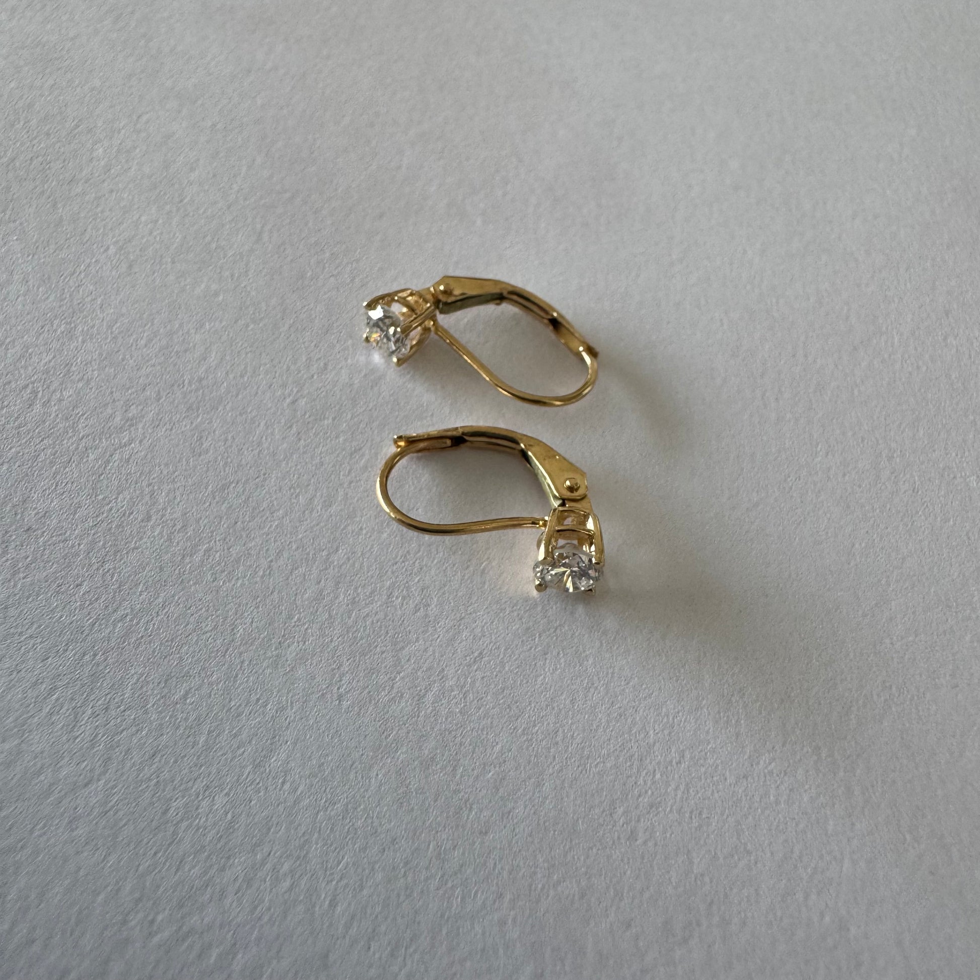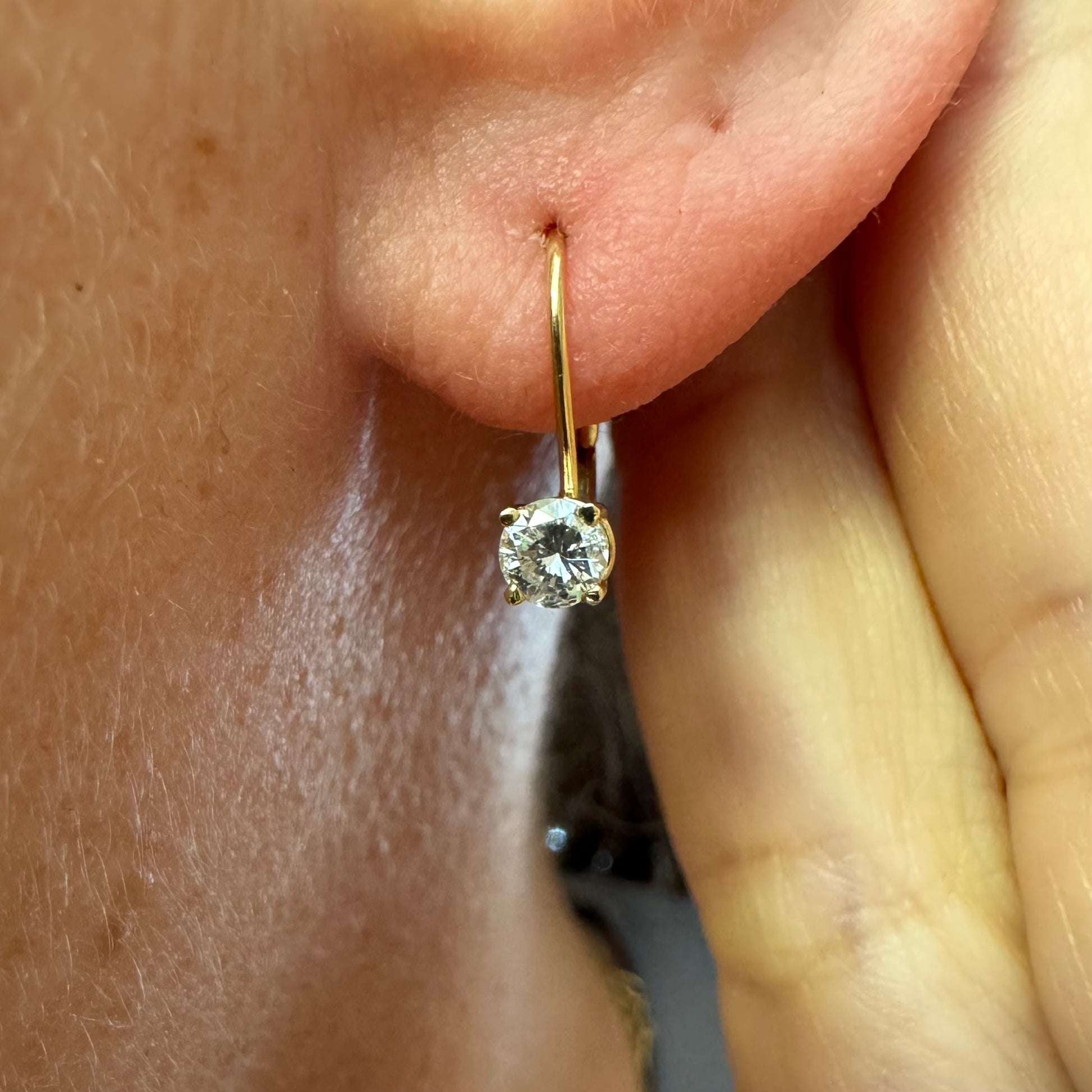 עגילי זהב 14 קראט משובצים יהלום עגול בשיבוץ קלאסי שמדגיש את האור והניקיון של האבן.