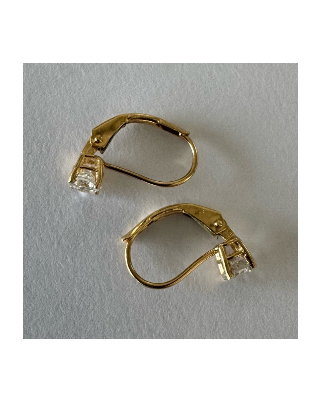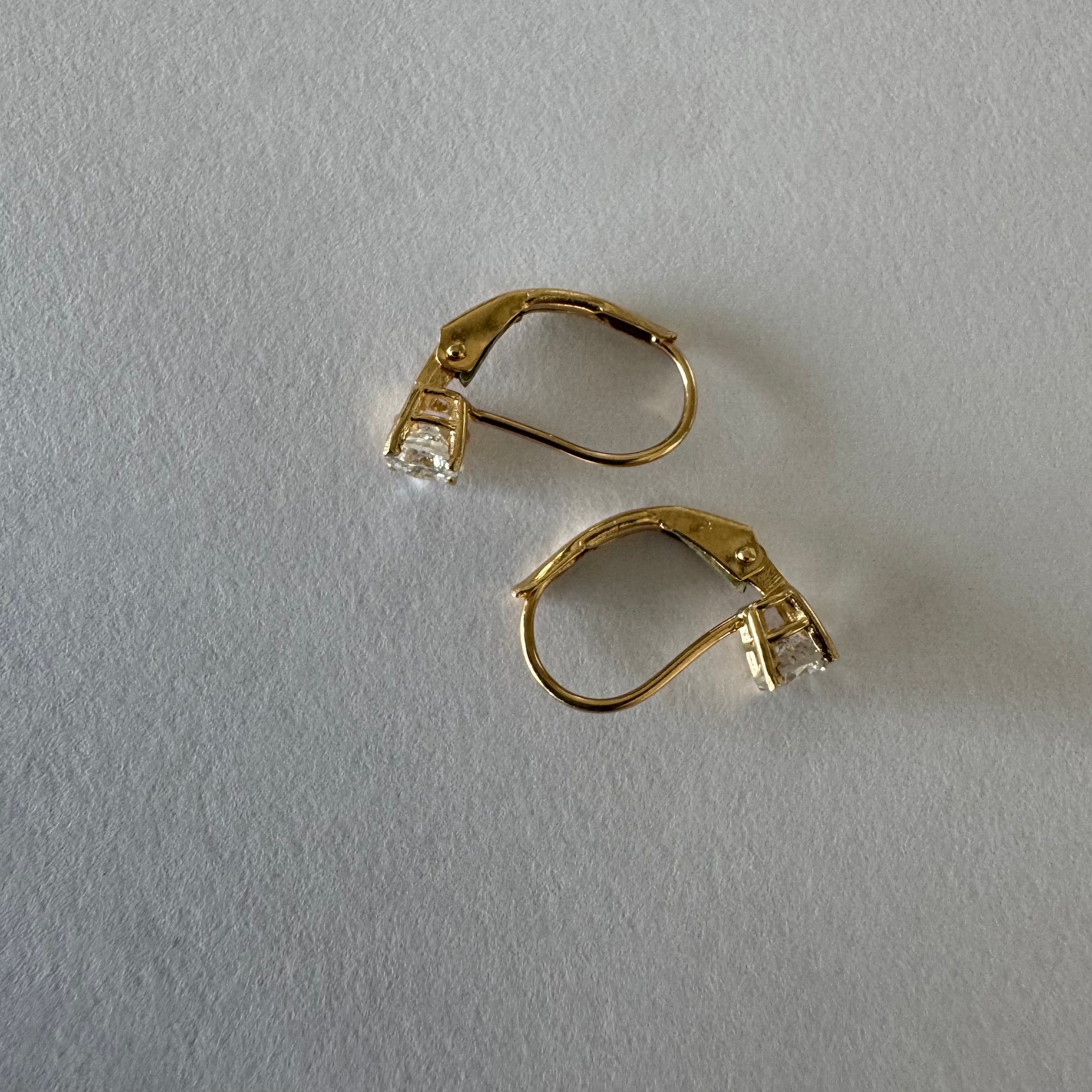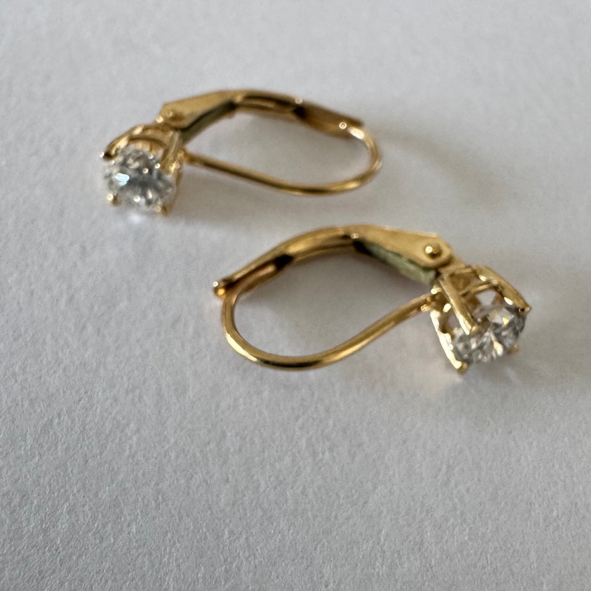 עגילי זהב 14 קראט משובצים יהלום עגול בשיבוץ קלאסי שמדגיש את האור והניקיון של האבן.
