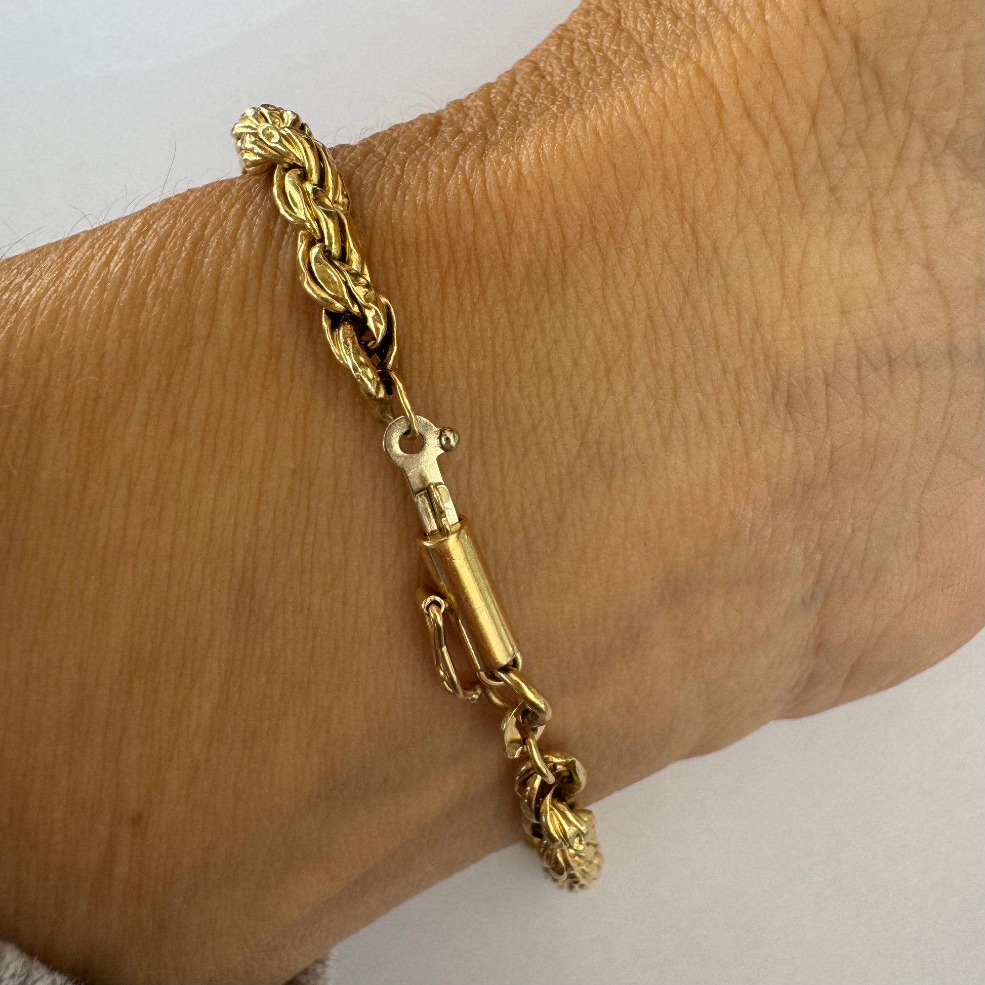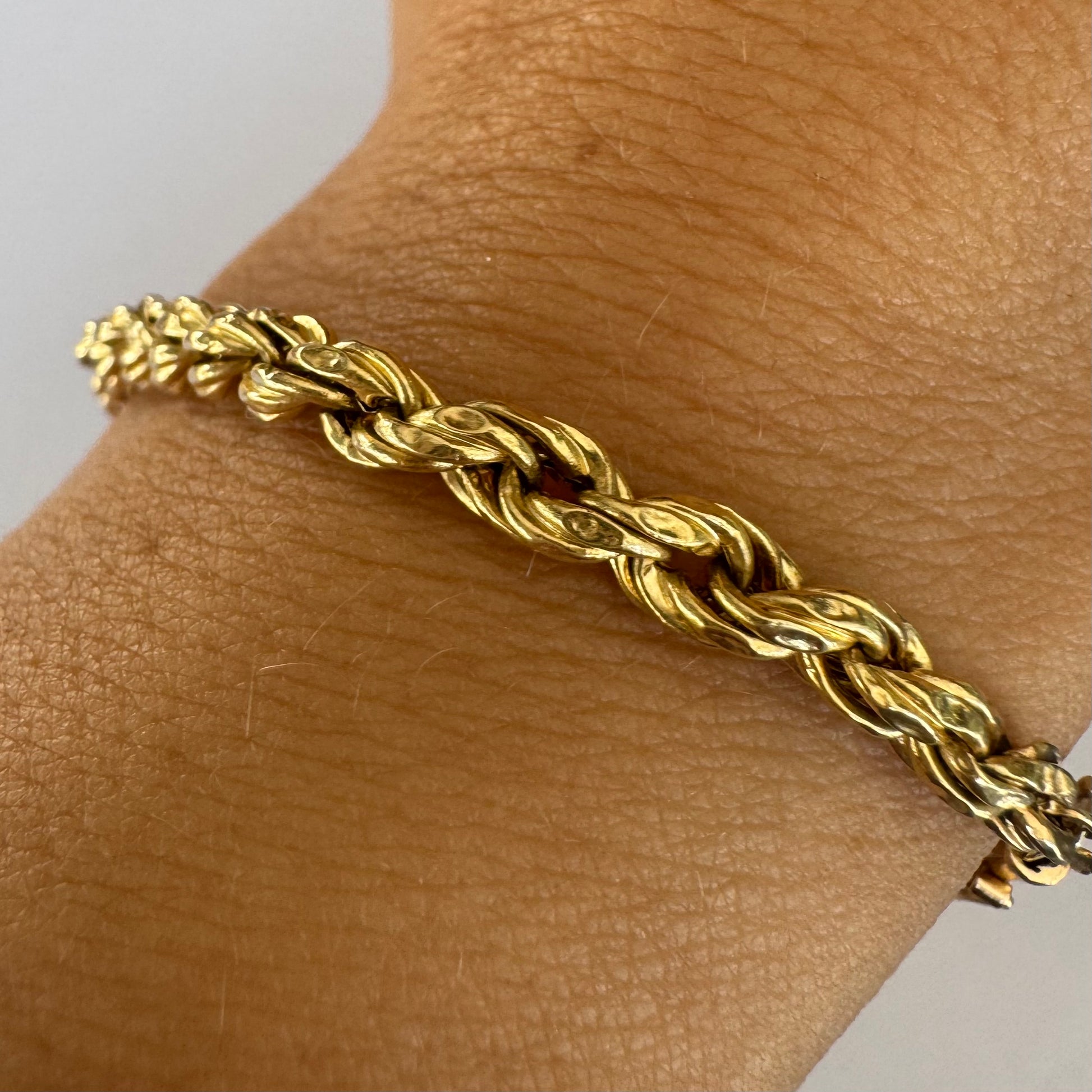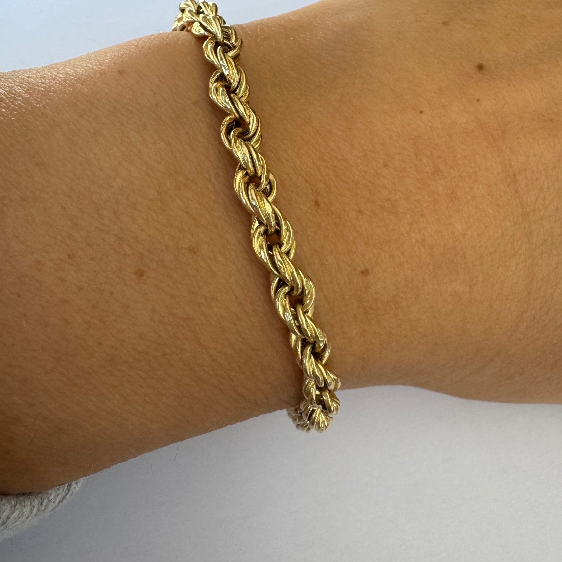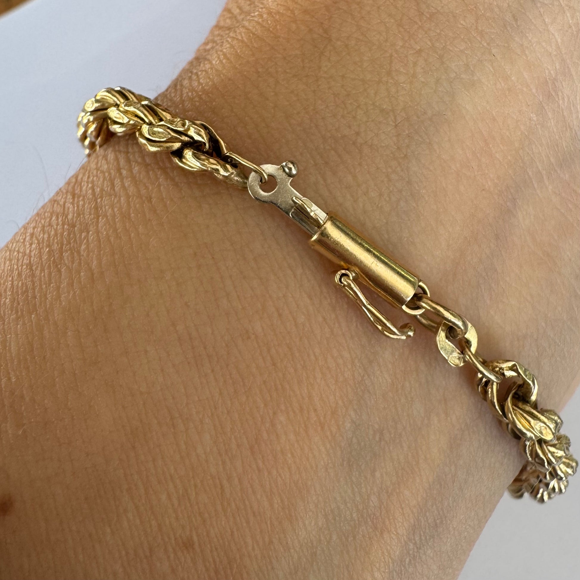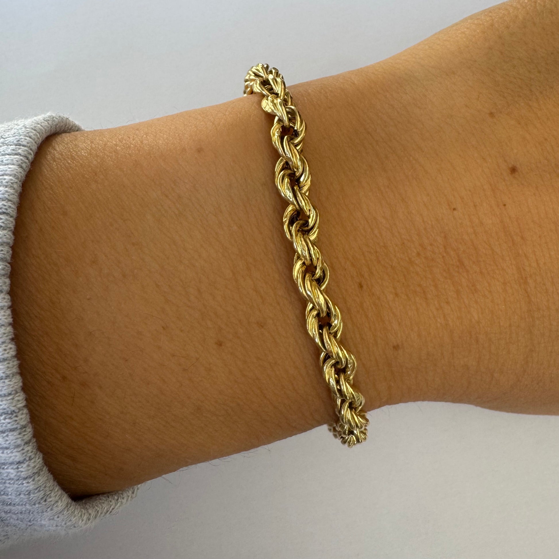 צמיד זהב צהוב 14 קראט בעיצוב שזירה עשיר ומלא נוכחות.