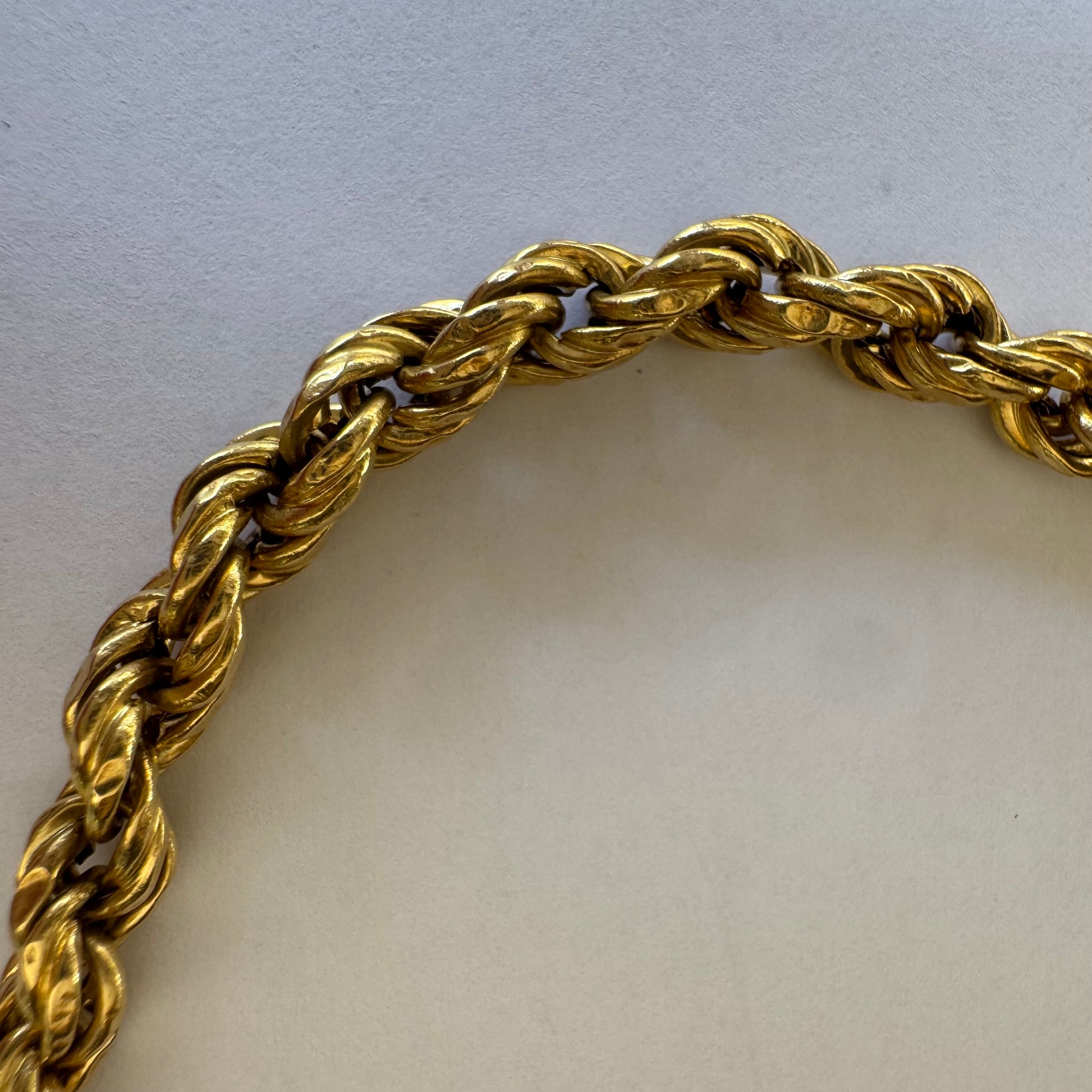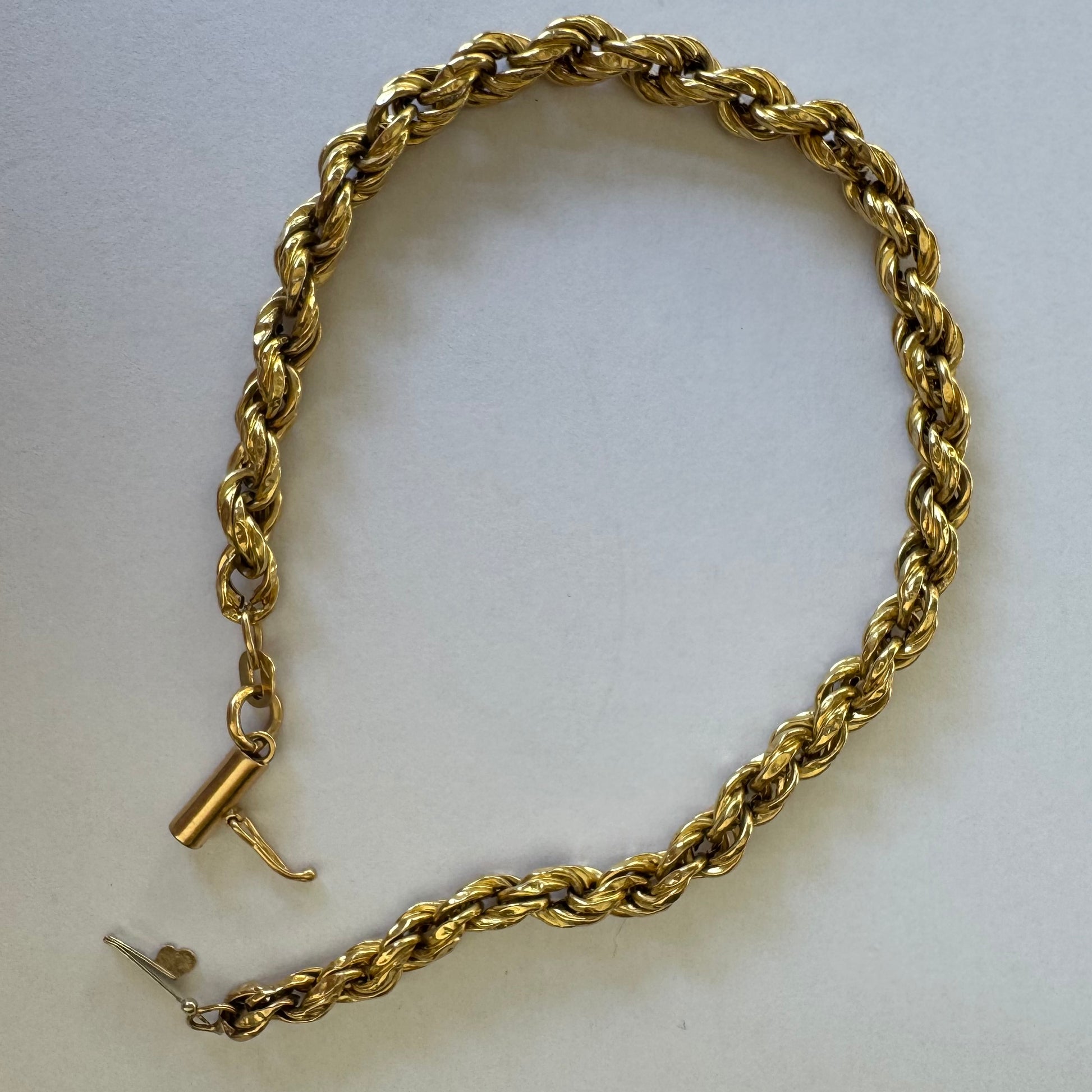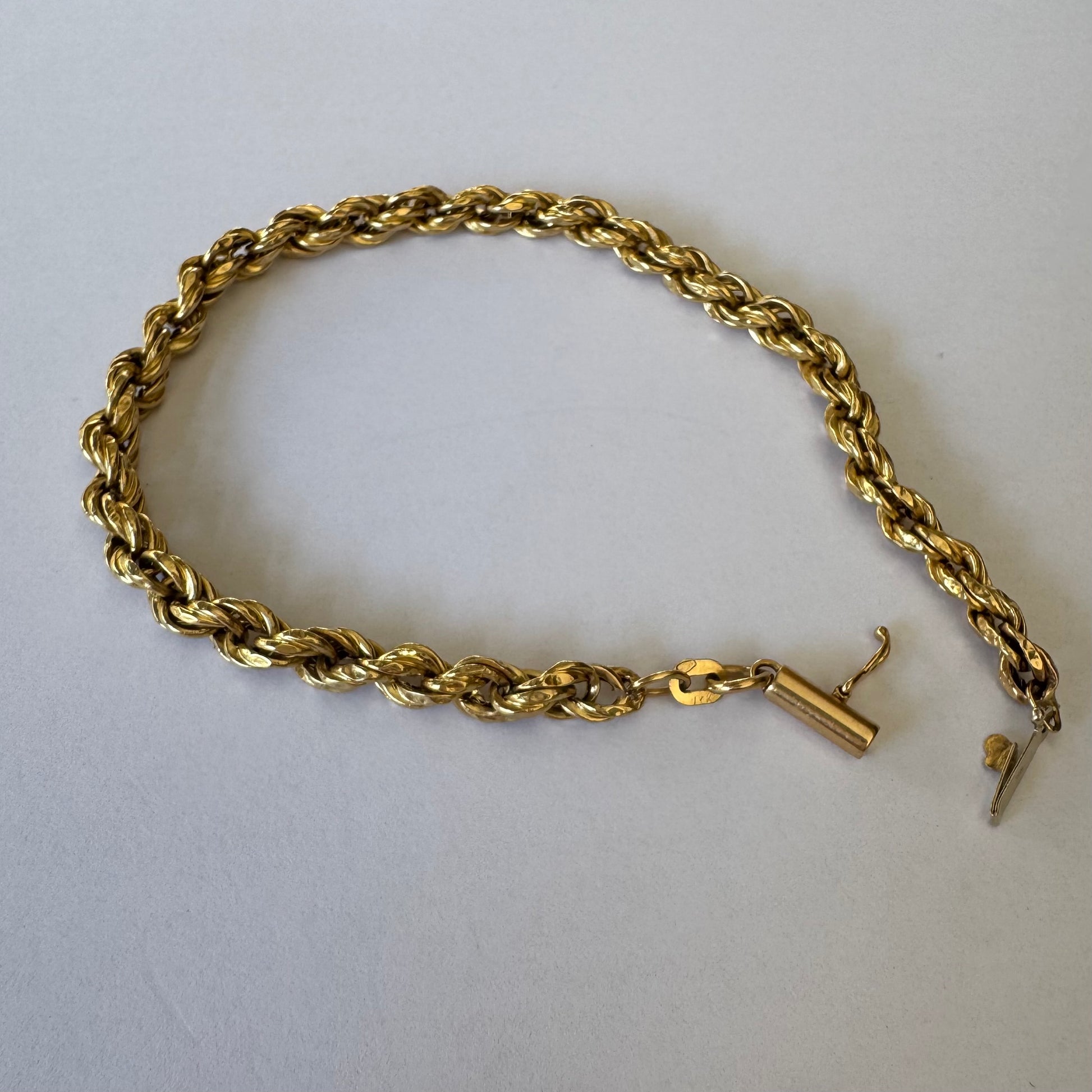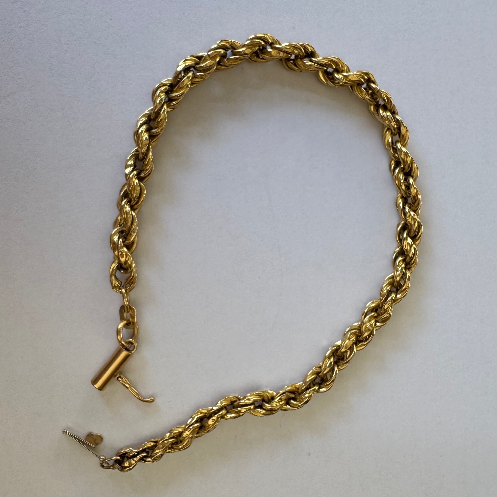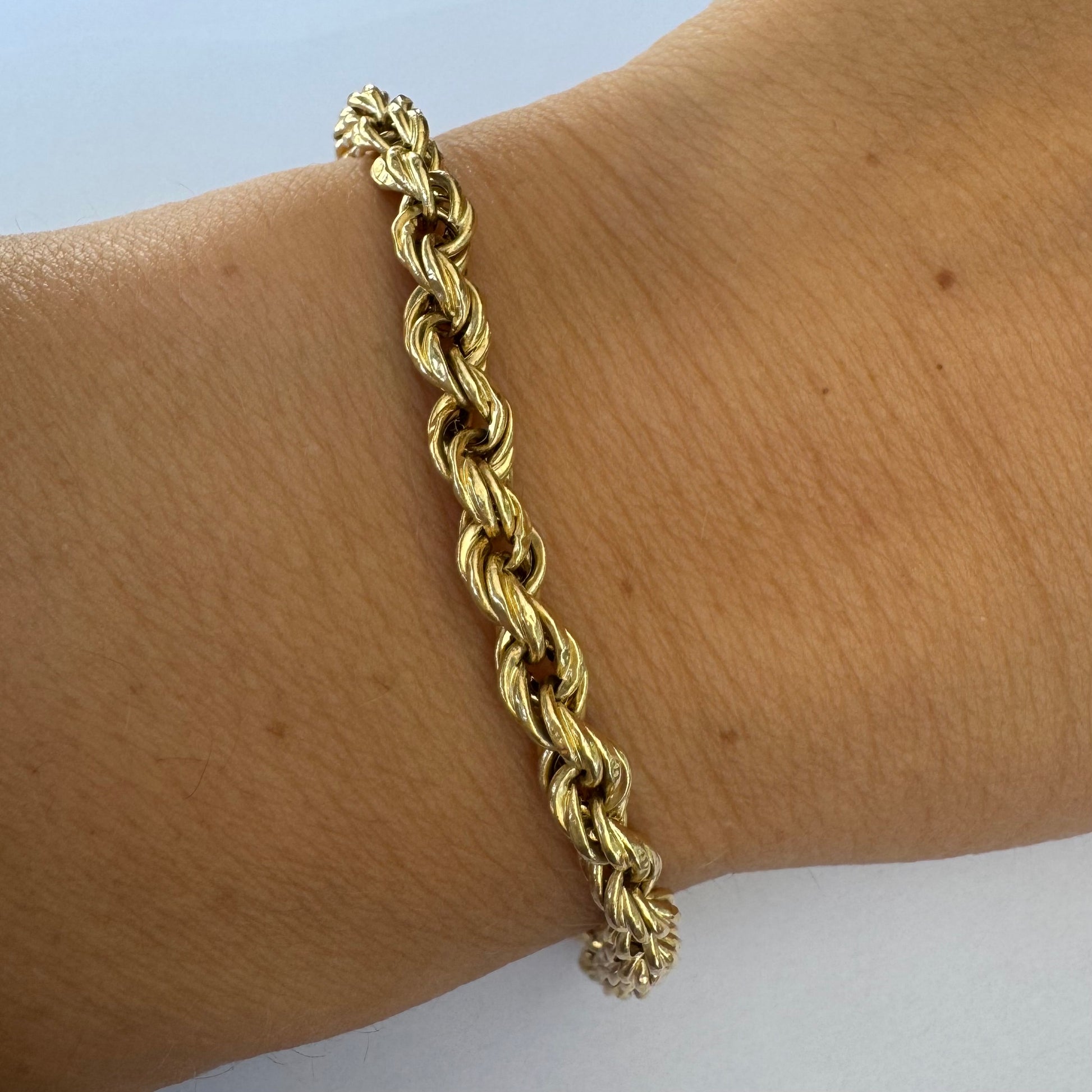 צמיד זהב צהוב 14 קראט בעיצוב שזירה עשיר ומלא נוכחות.