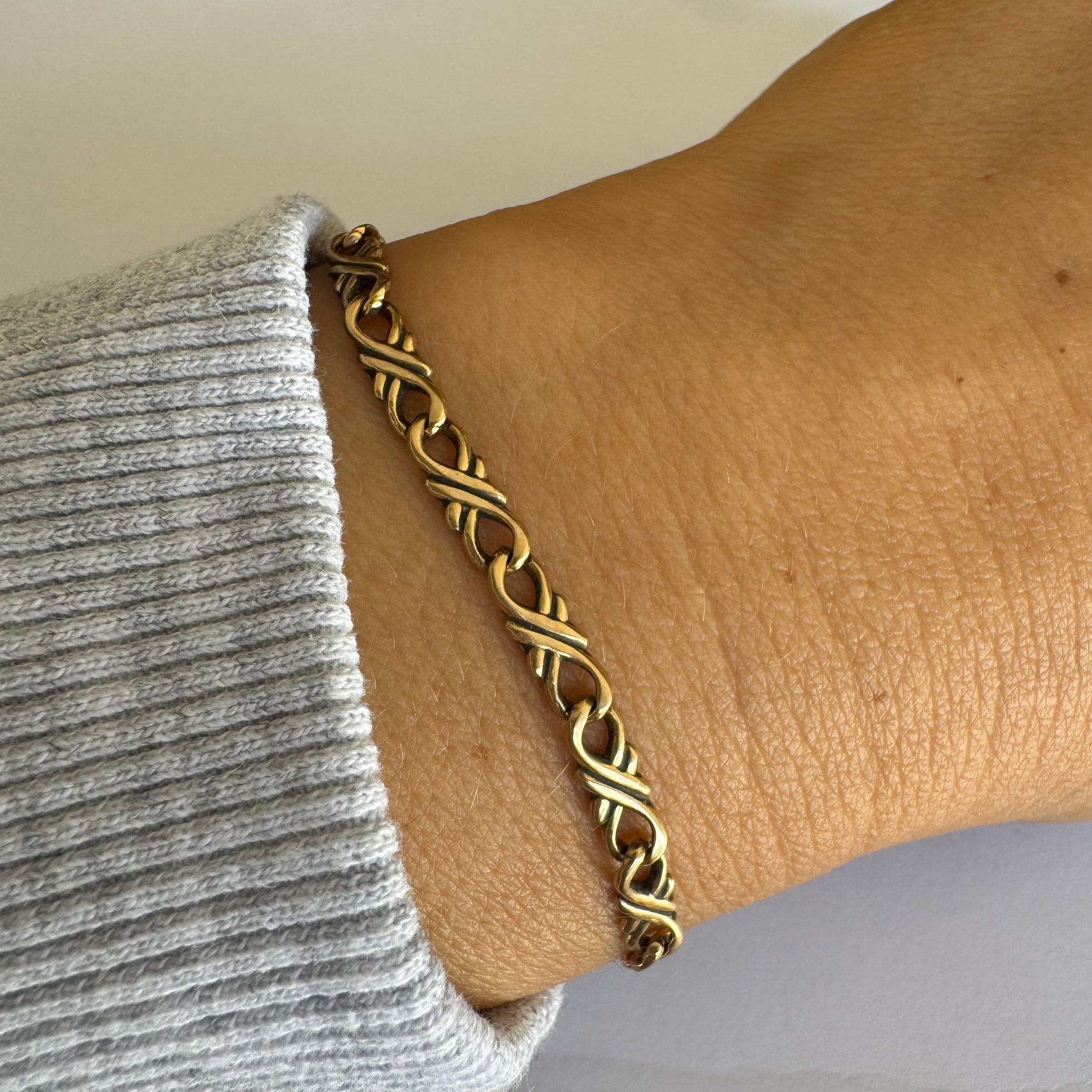 צמיד זהב 14 קראט, בעיצוב חוליות עדין ומסולסל.