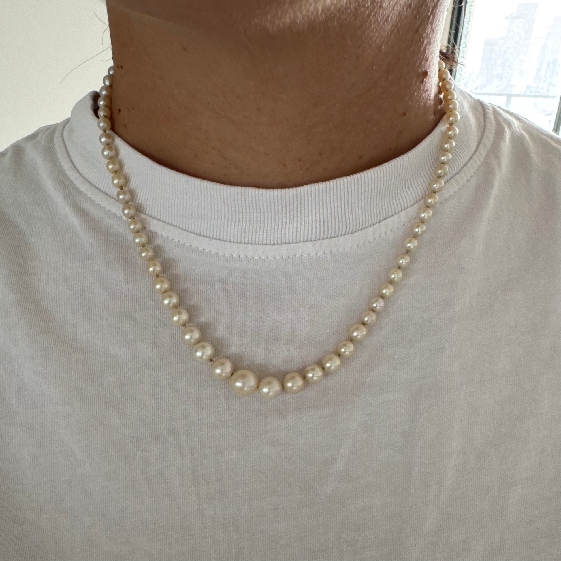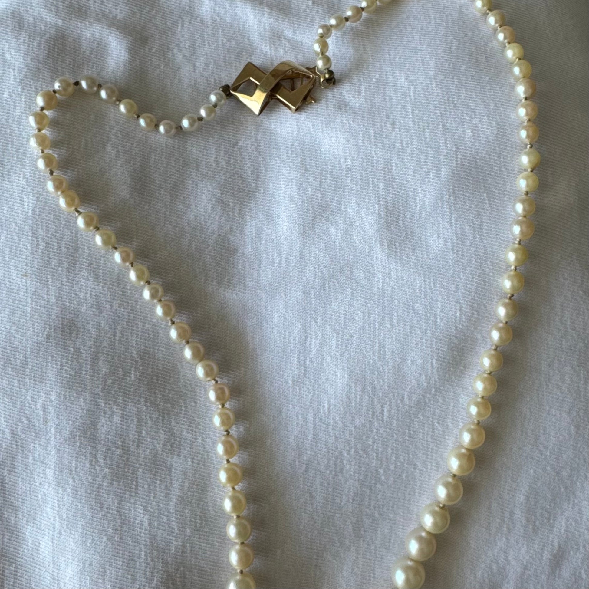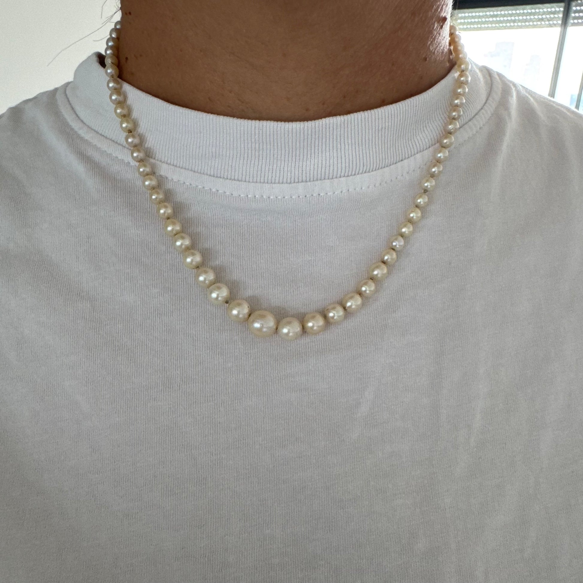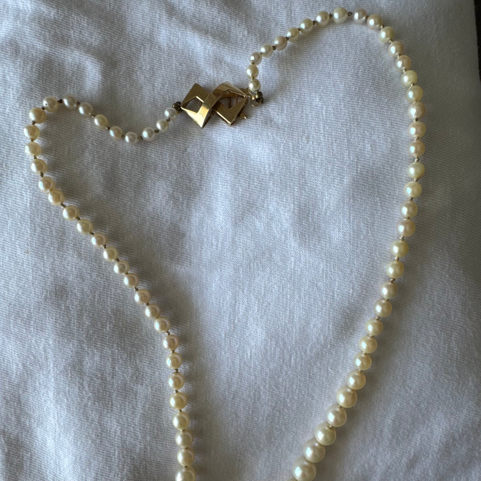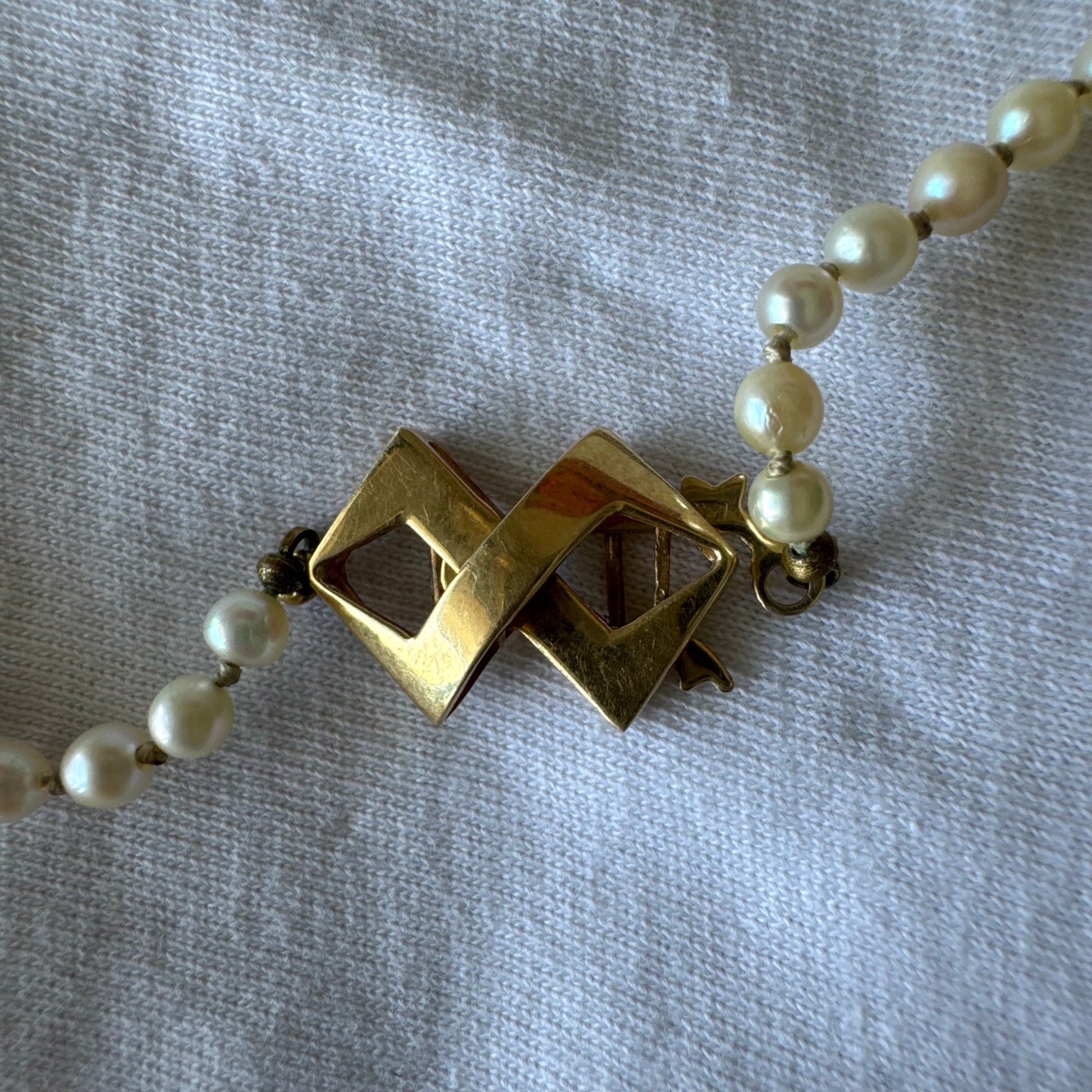 שרשרת פנינים קלאסית עם סוגר גאומטרי מזהב צהוב 14 קראט.