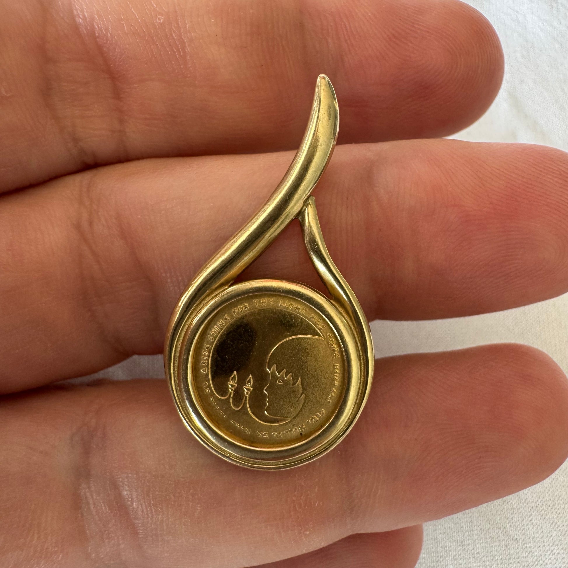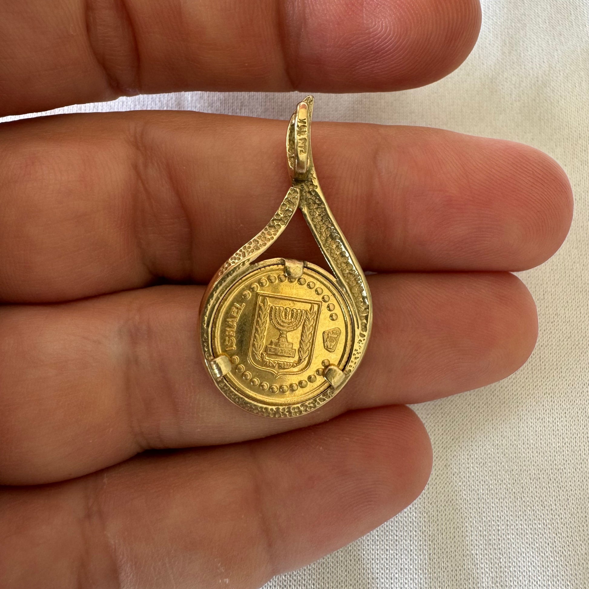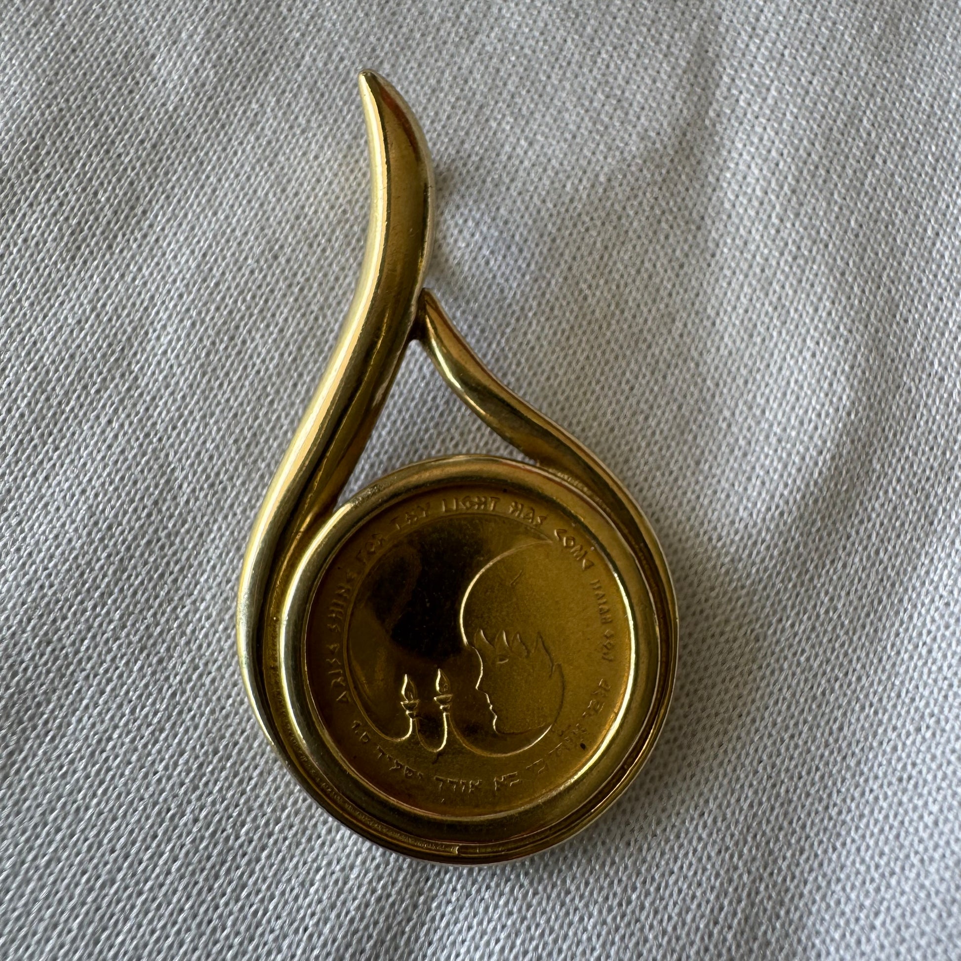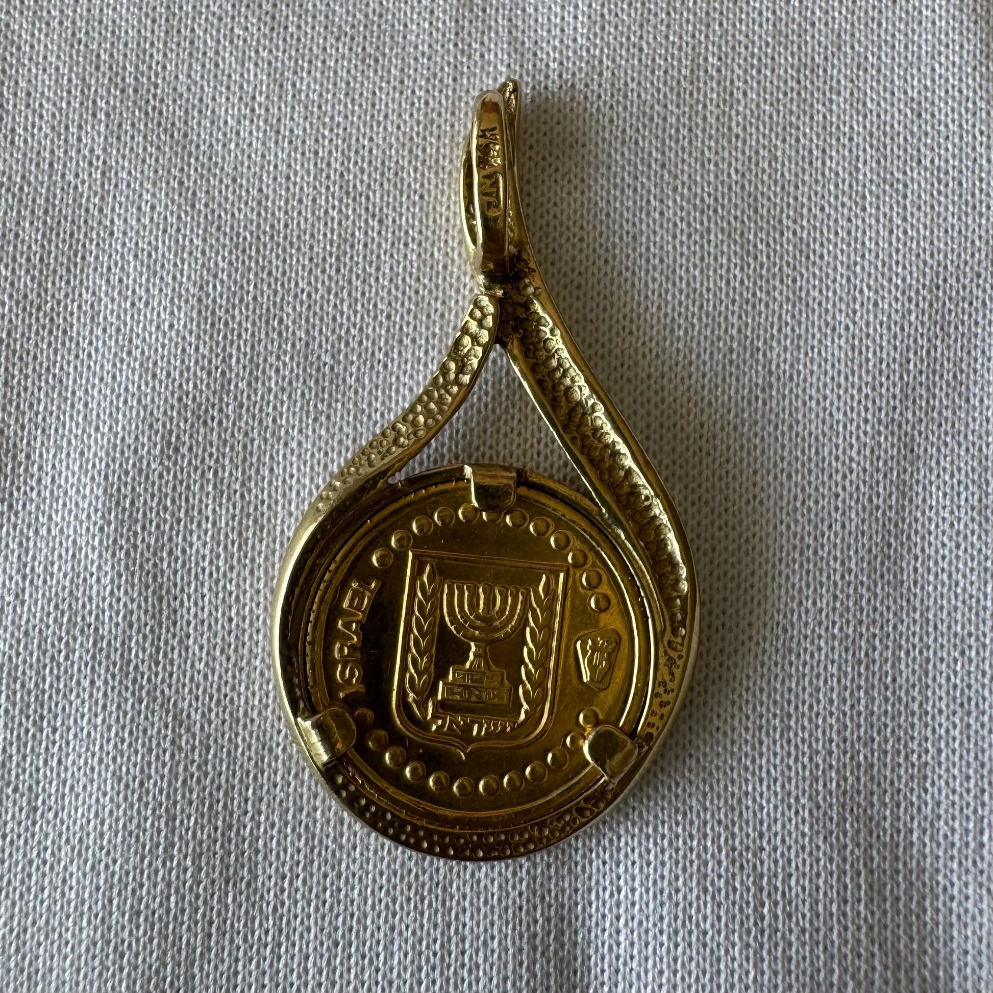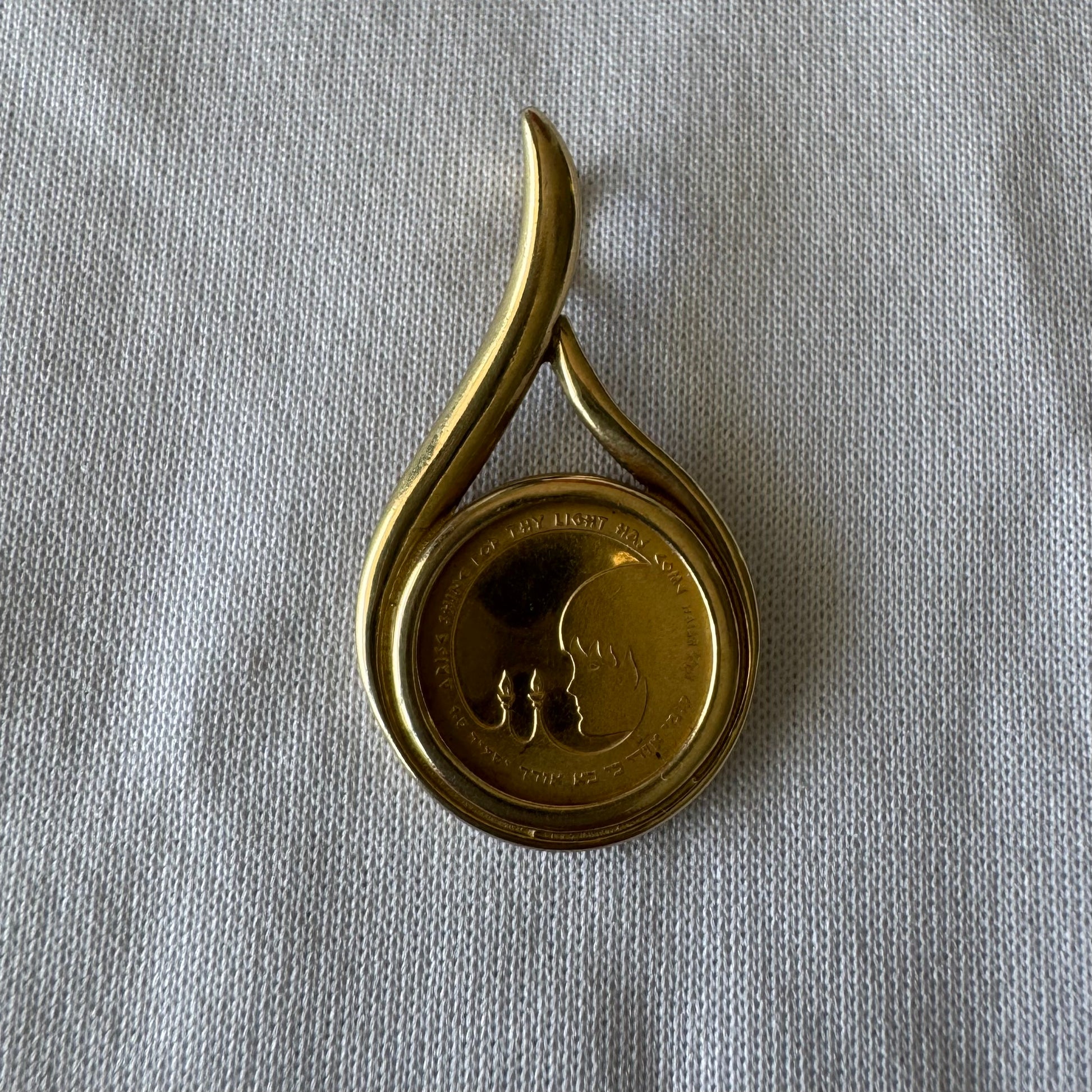 תליון זהב 14 קראט בעיצוב טיפתי ייחודי, משובץ מדלית זהב.