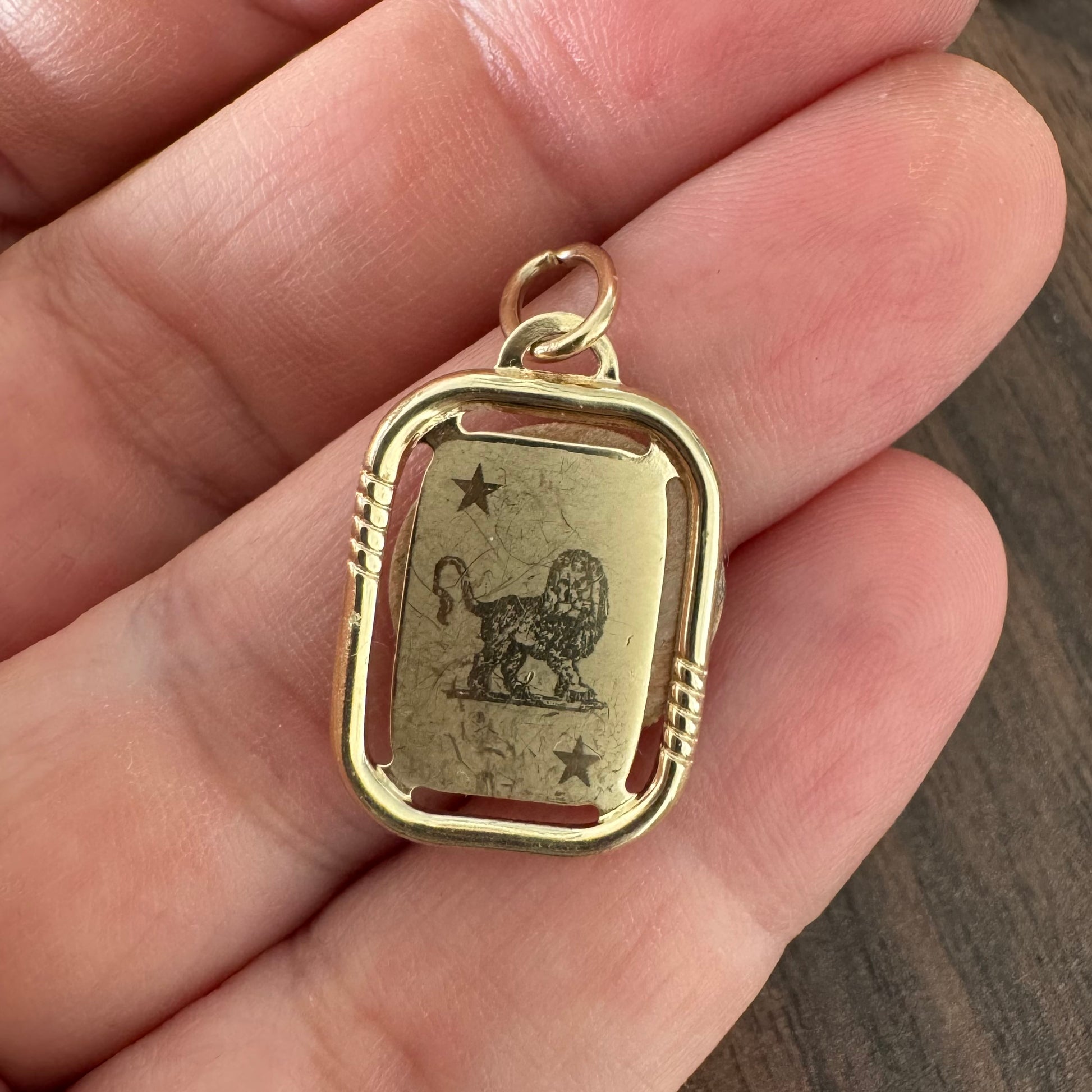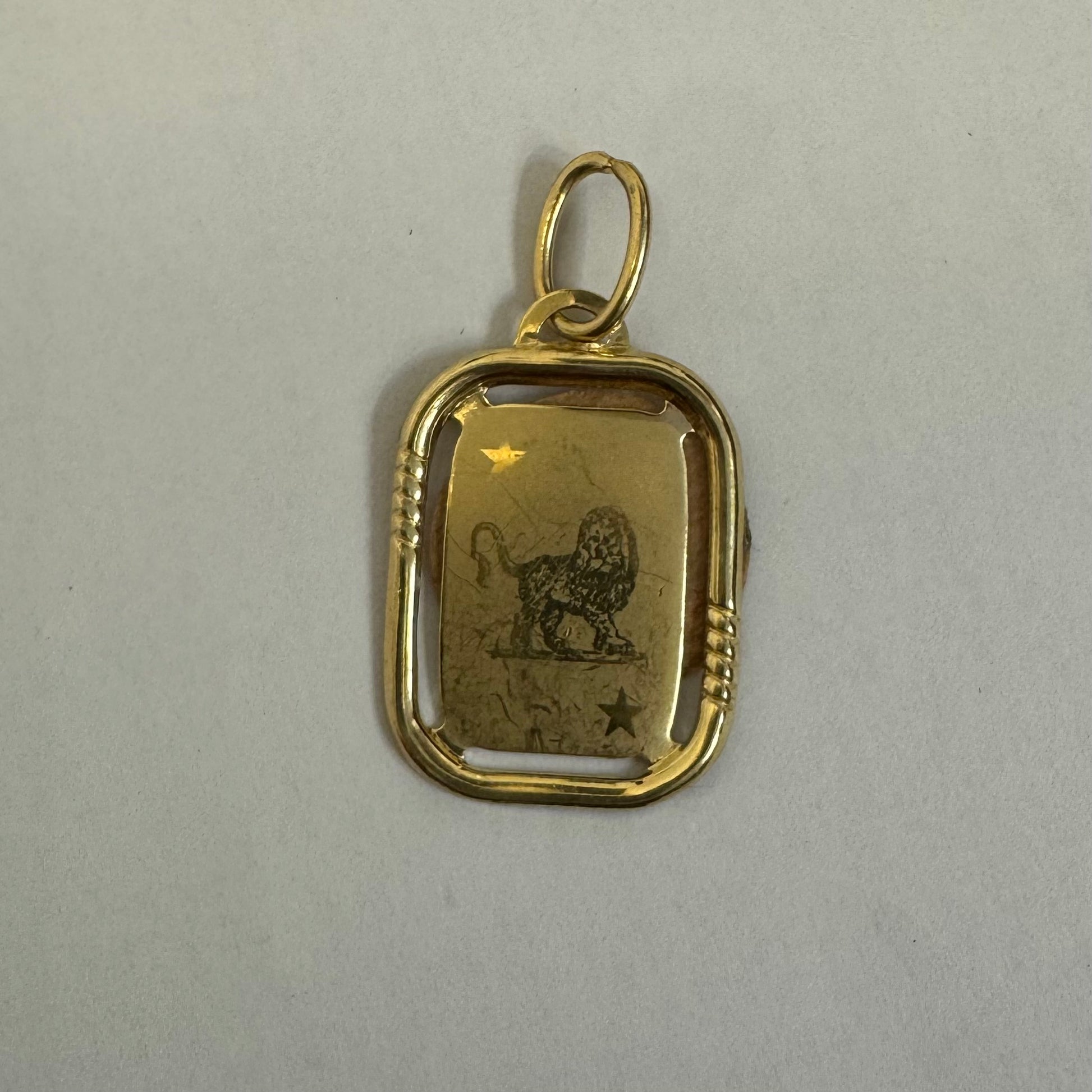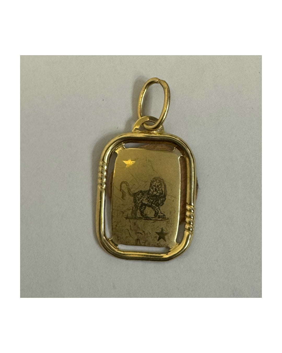 תליון זהב צהוב 14 קראט, מלבני, עם ציור של ״אריה״