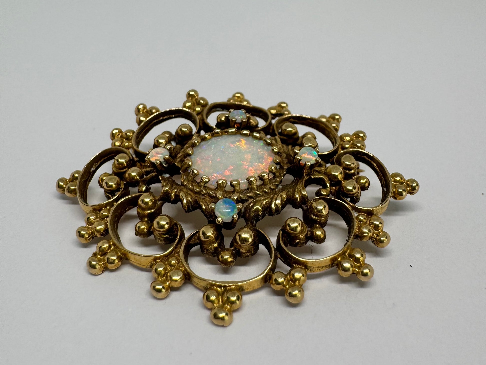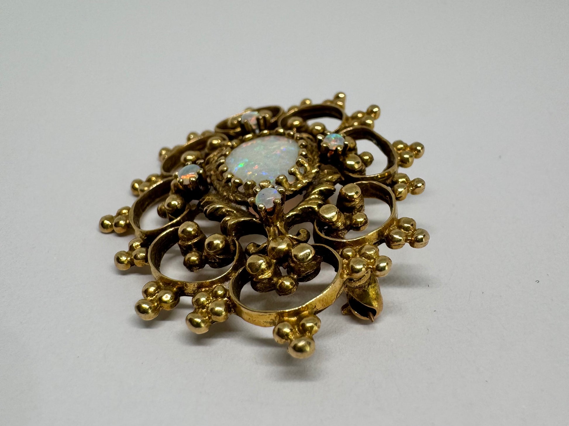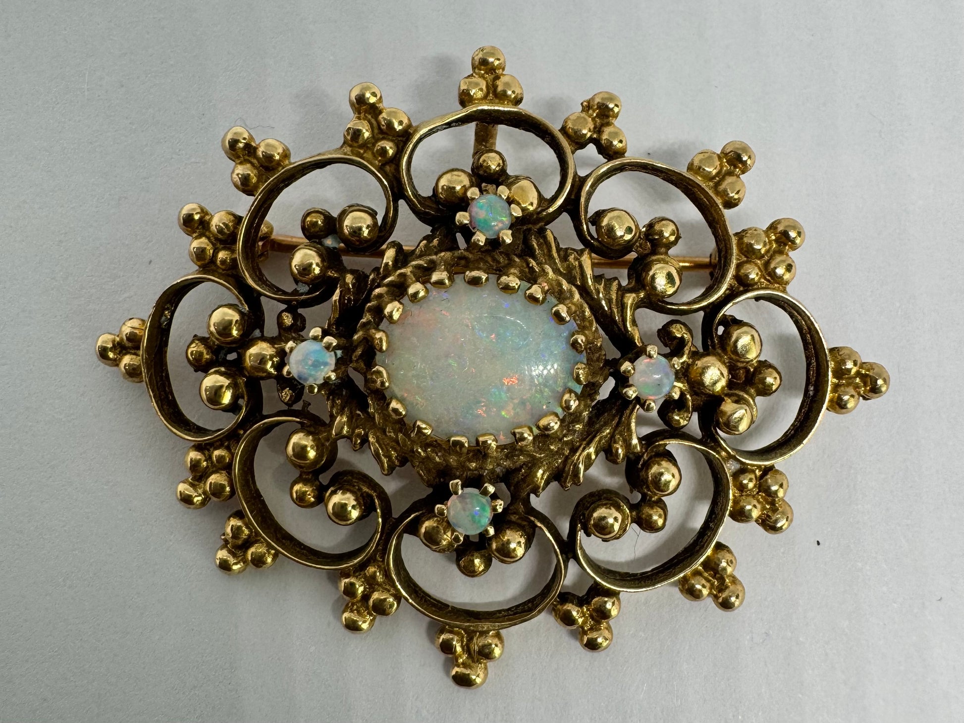 סיכת זהב צהוב 14 קראט משובצת אבני אופל