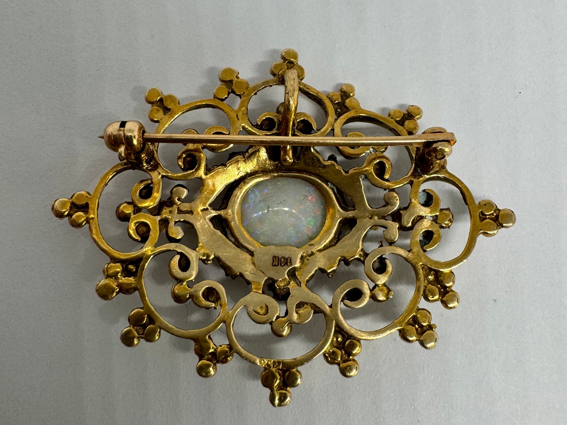 סיכה ותליון זהב צהוב 14K משובץ אופל