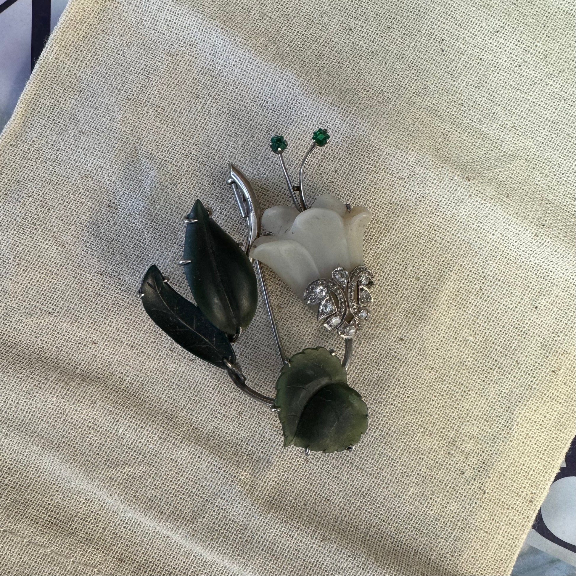 סיכת פרח משובצת יהלומים ואבני אמרלד