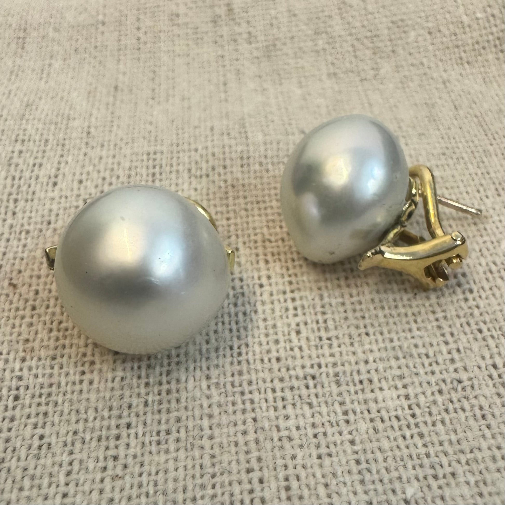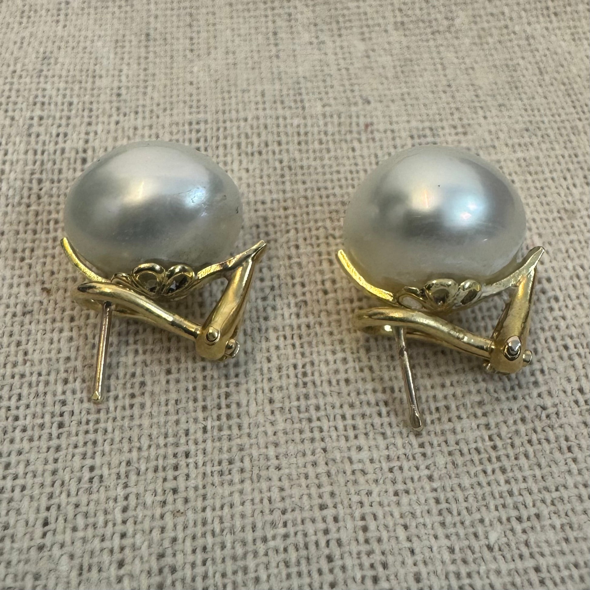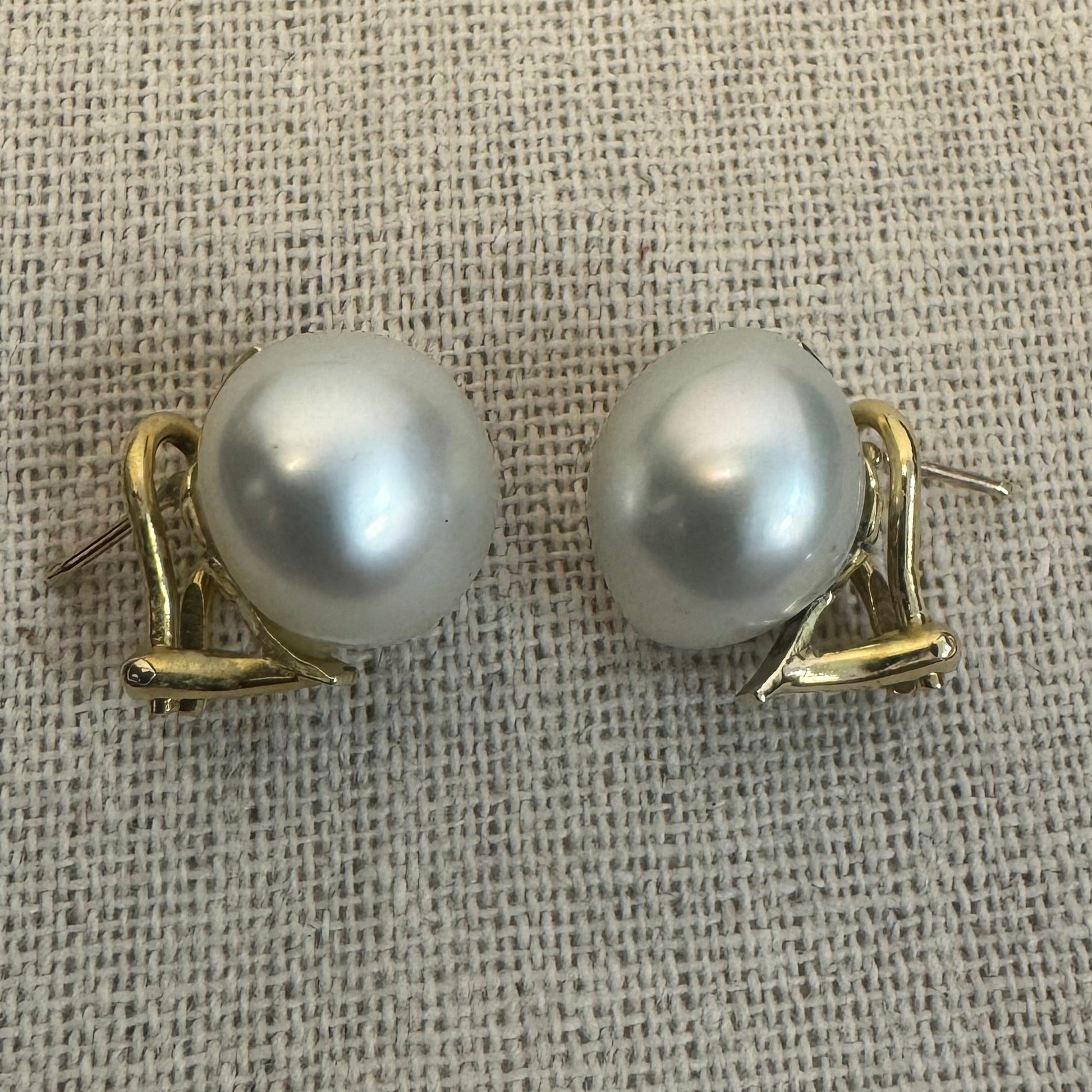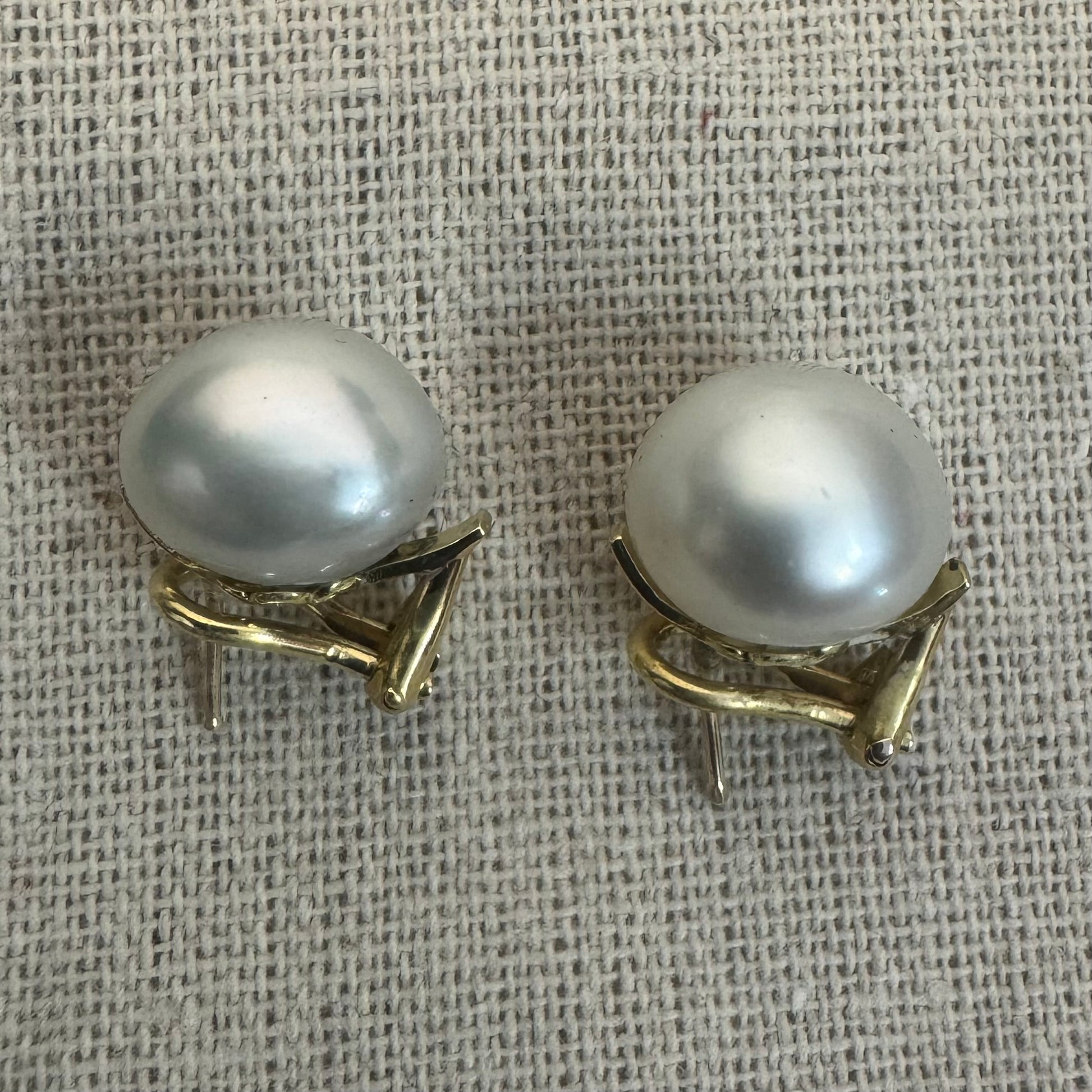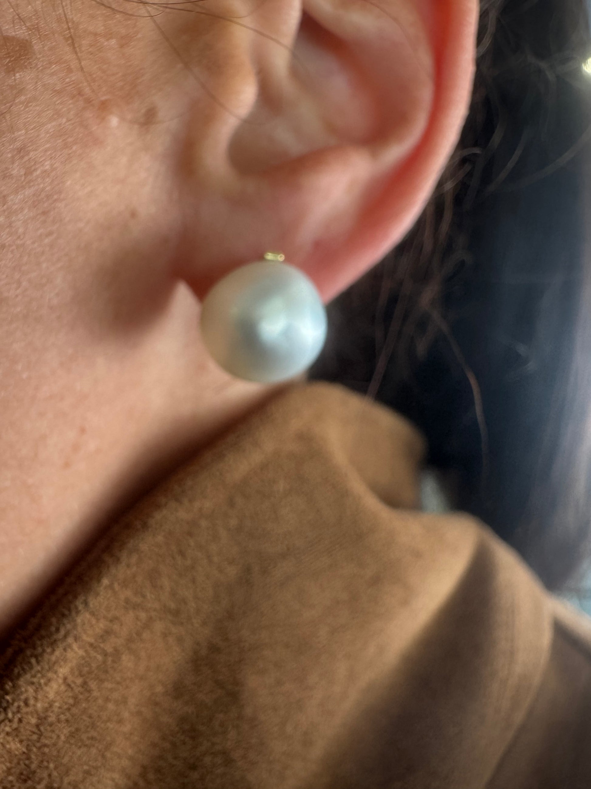 עגילים צמודים לאוזן זהב 14 קראט משובצים פנינים לבנות גדולות ובוהקות.