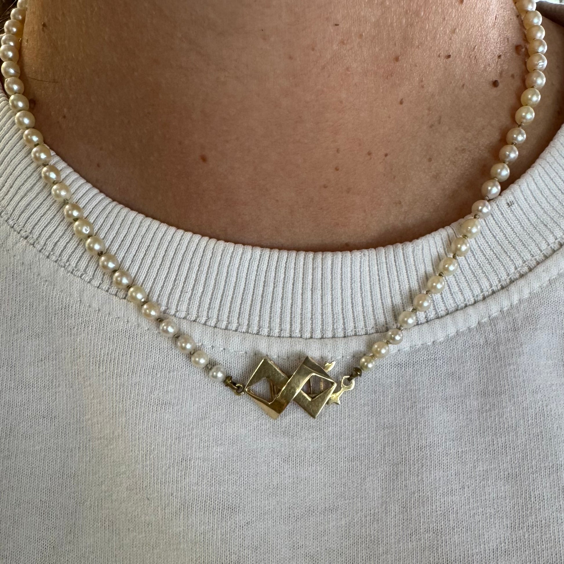 שרשרת פנינים עם סוגר זהב 14 קראט