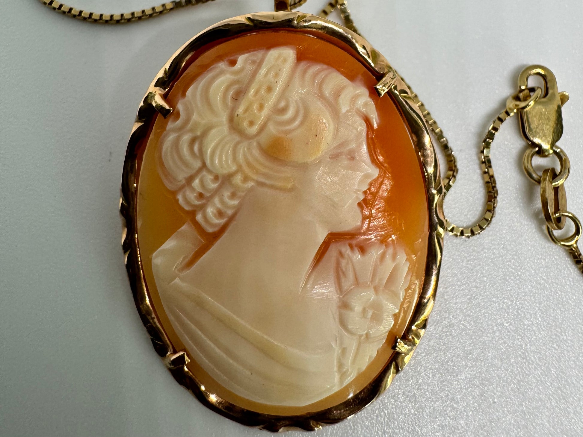 שרשרת זהב צהוב 14 קראט עם תליון ״קמאו״