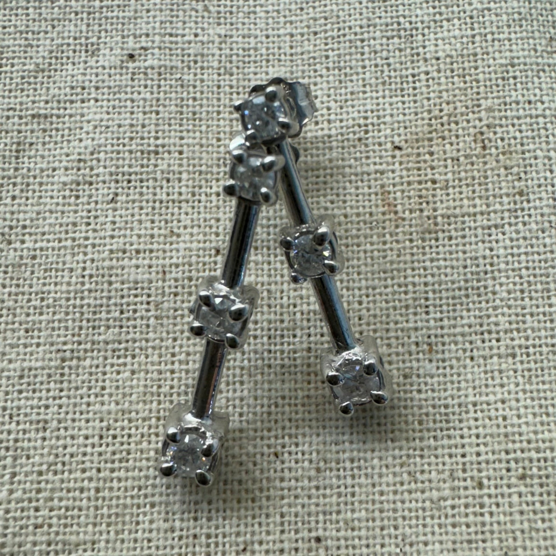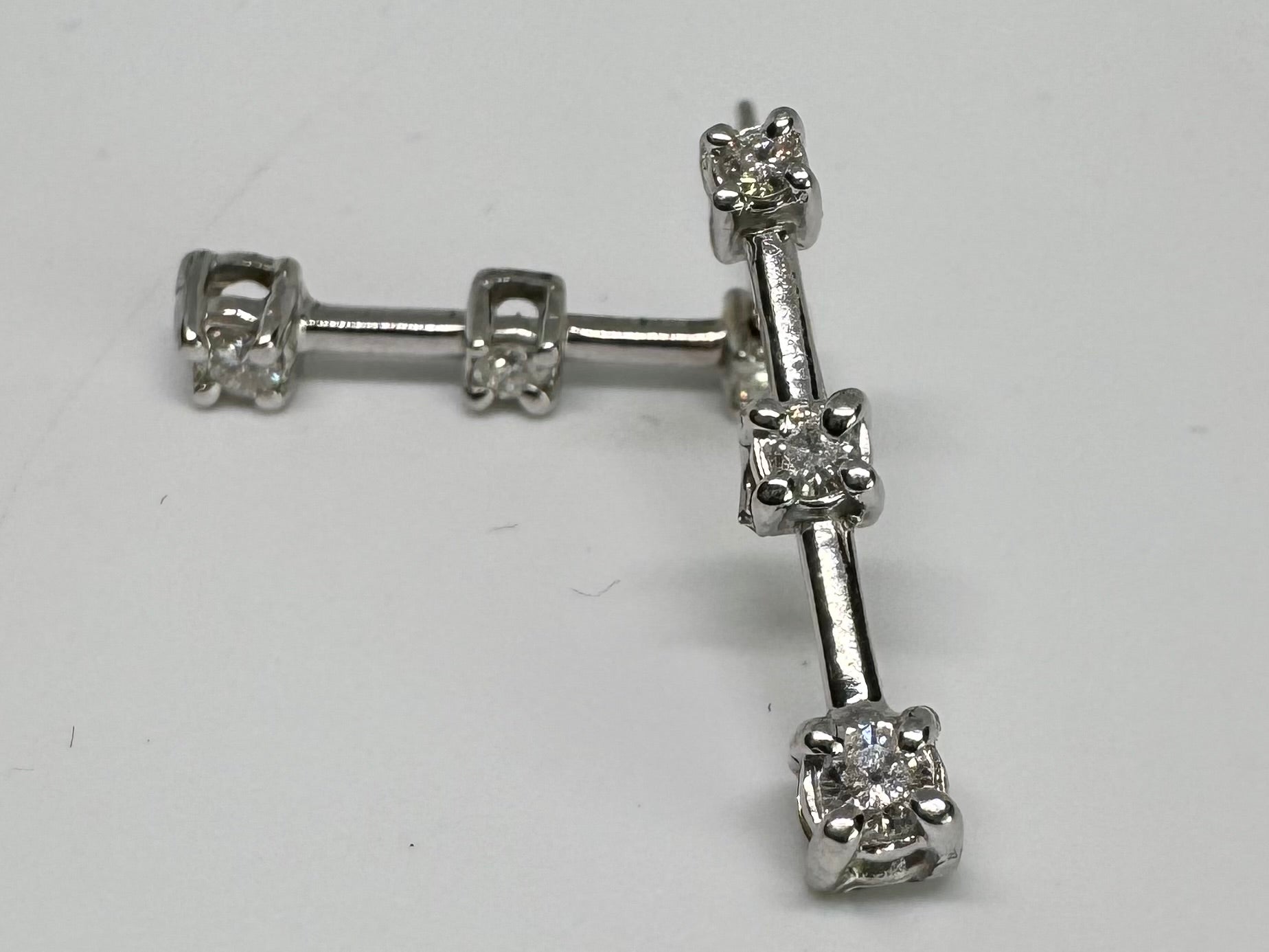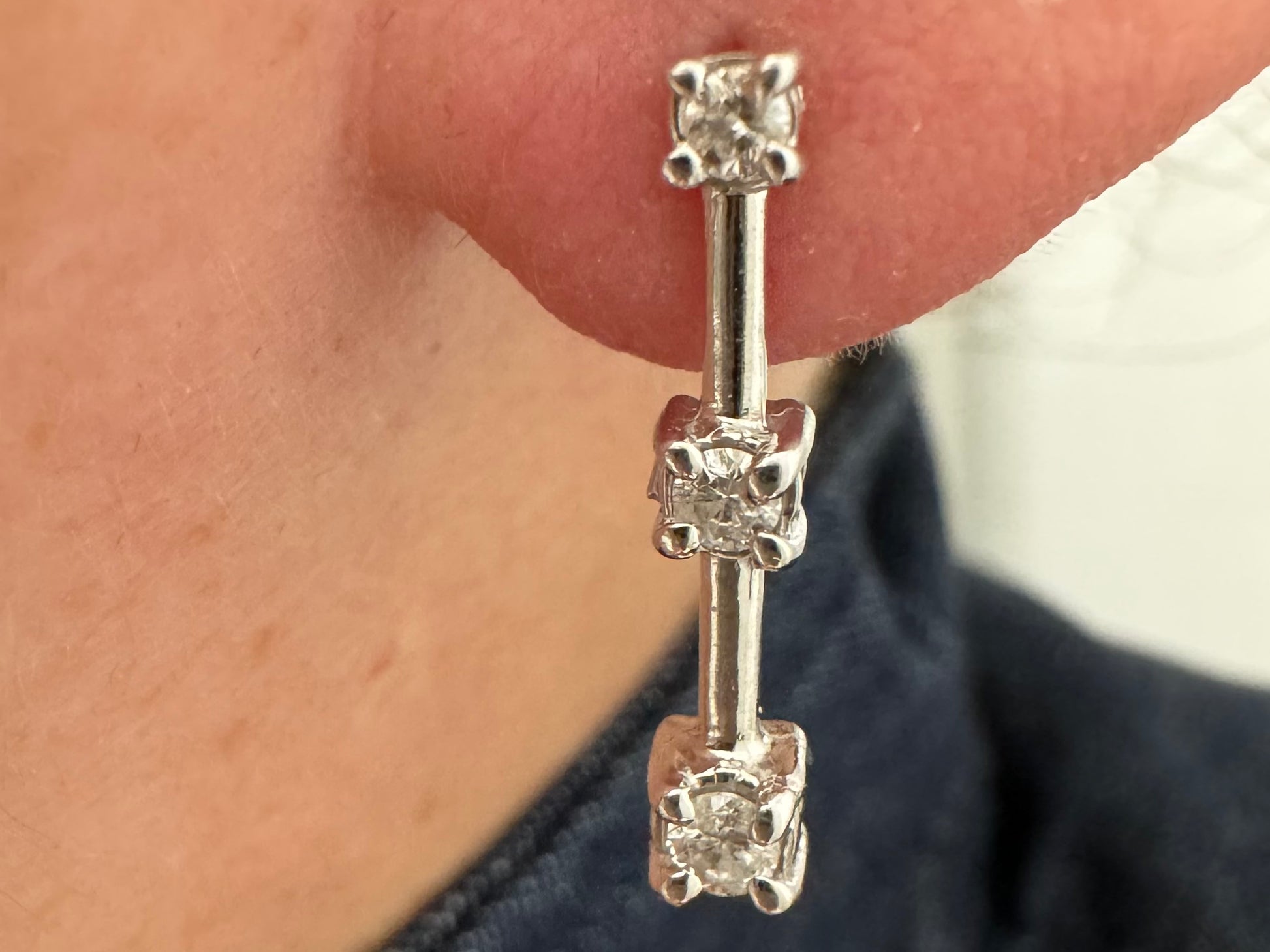 עגילי טיפה זהב לבן 14K משובצים 3 יהלומים.