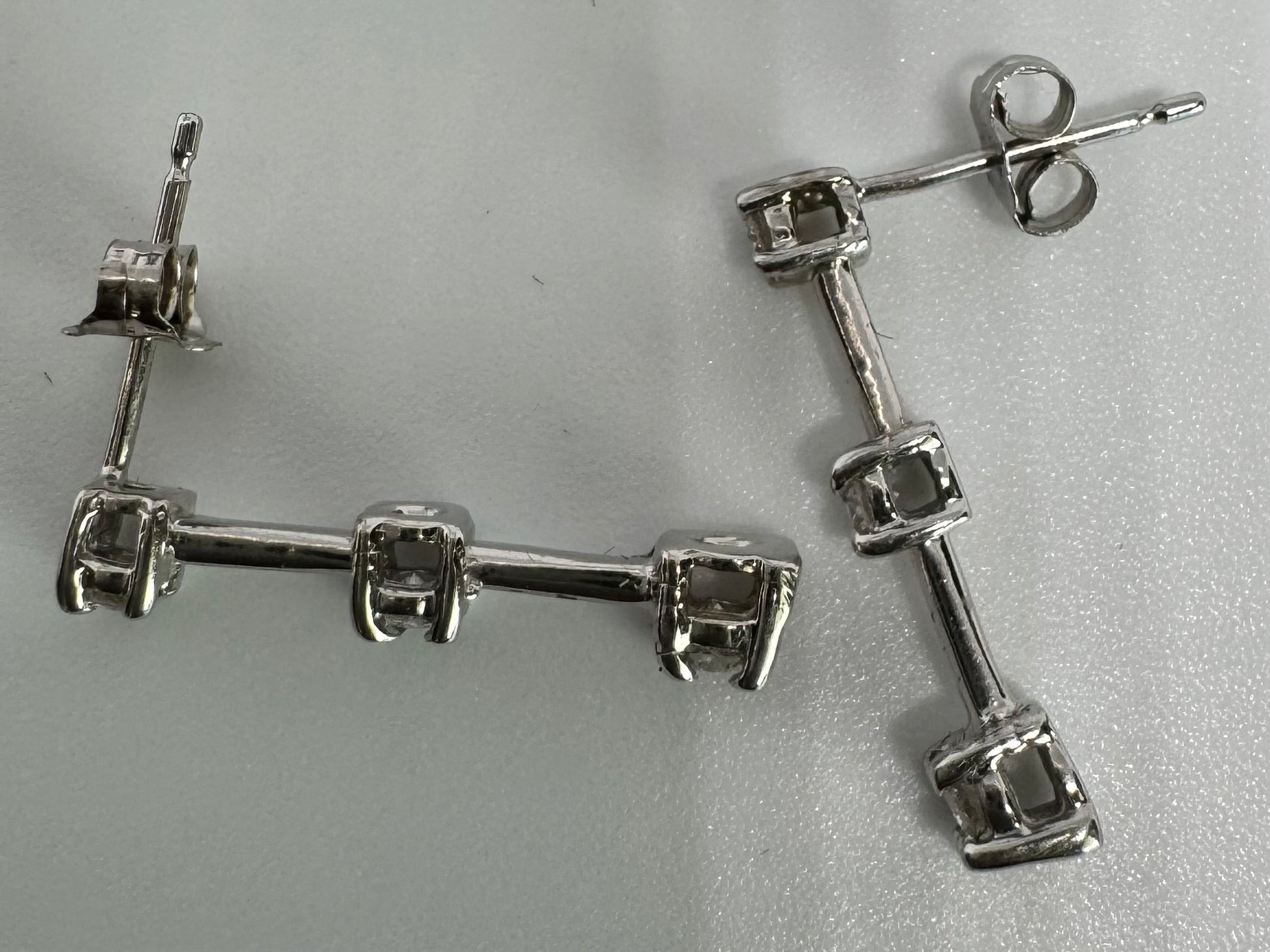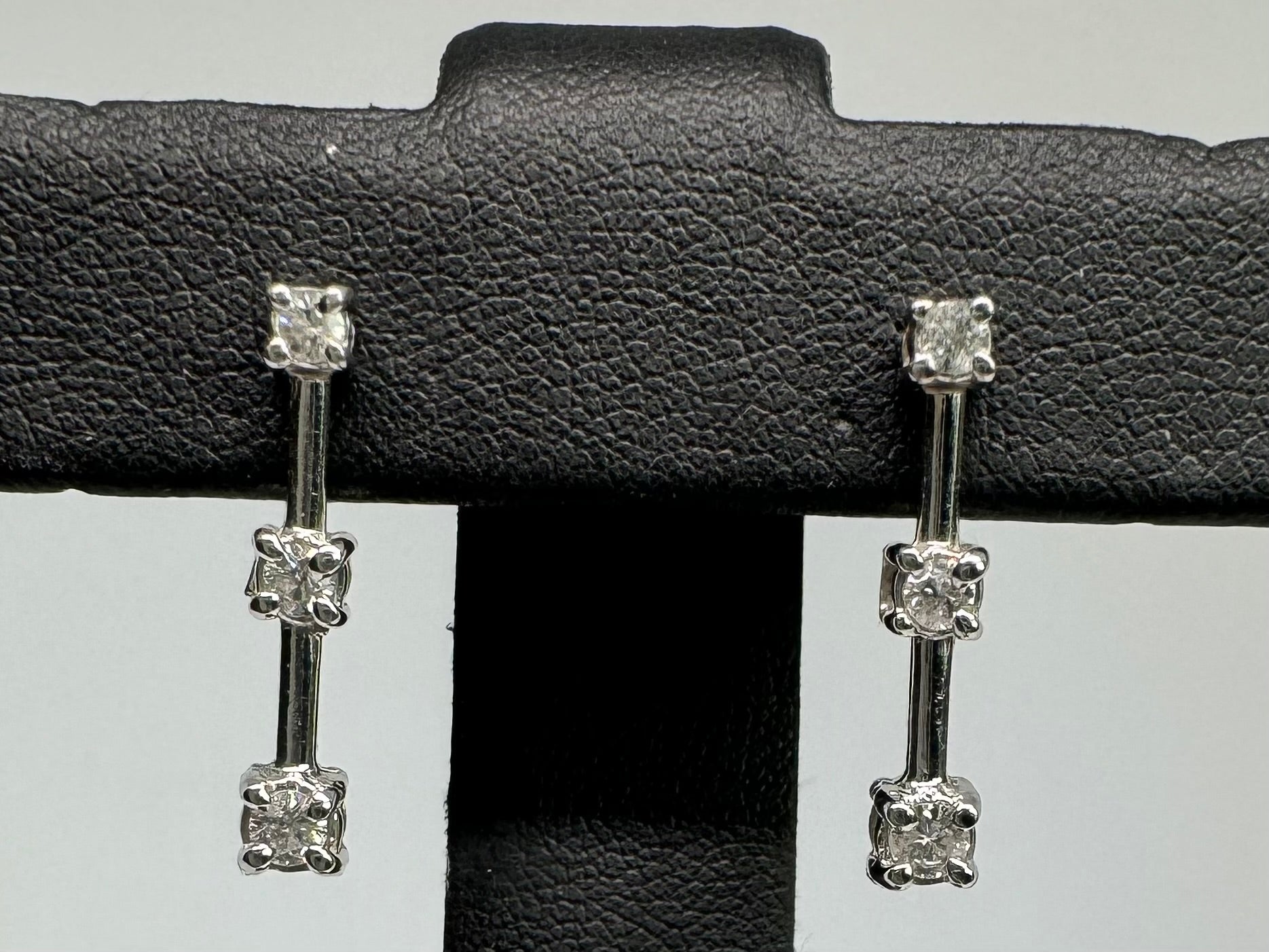 עגילי זהב לבן, 14 קראט, נופלים קשיחים, משובצים 3 יהלומים