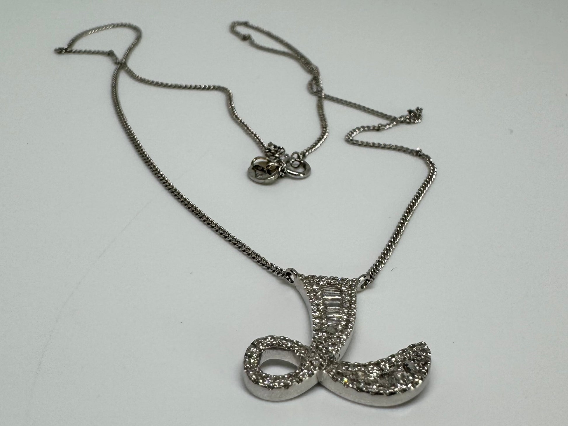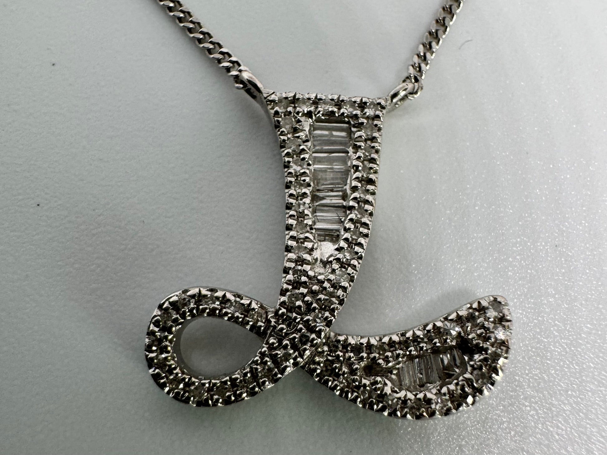 שרשרת "L" זהב לבן 14K משובצת יהלומים