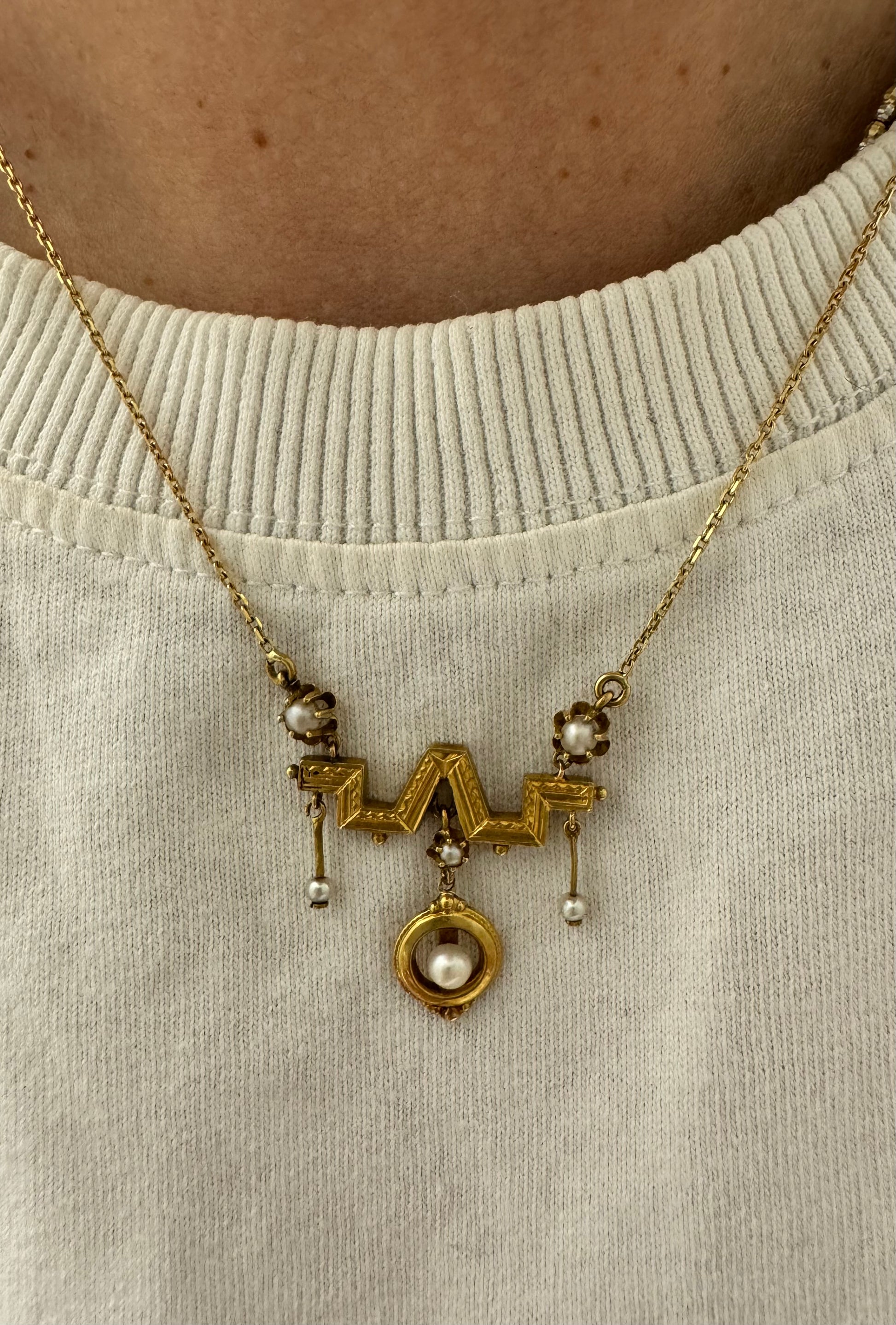 שרשרת זהב צהוב 14 קראט משובצת פנינים