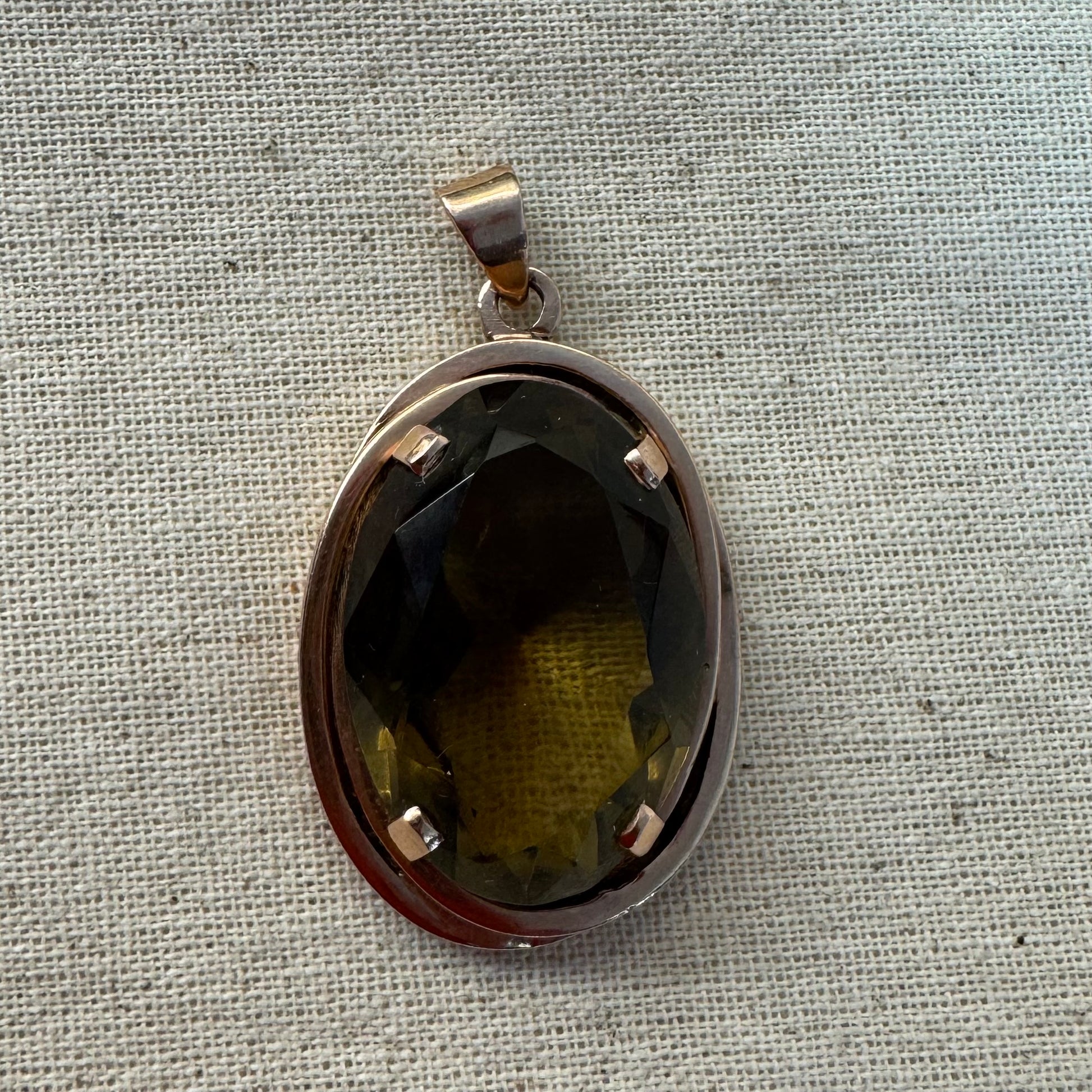 14K gold pendant set with a large oval-cut Smoky Quartz in a rare olive-green hue