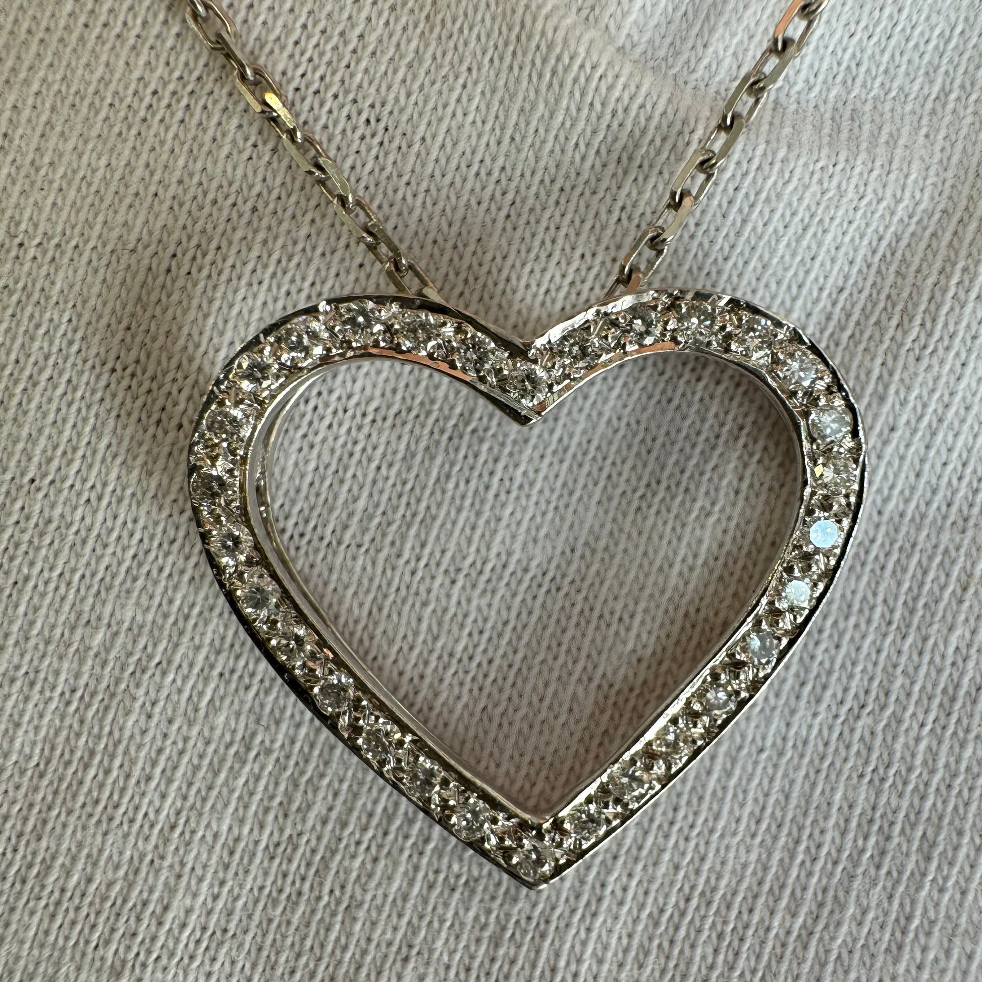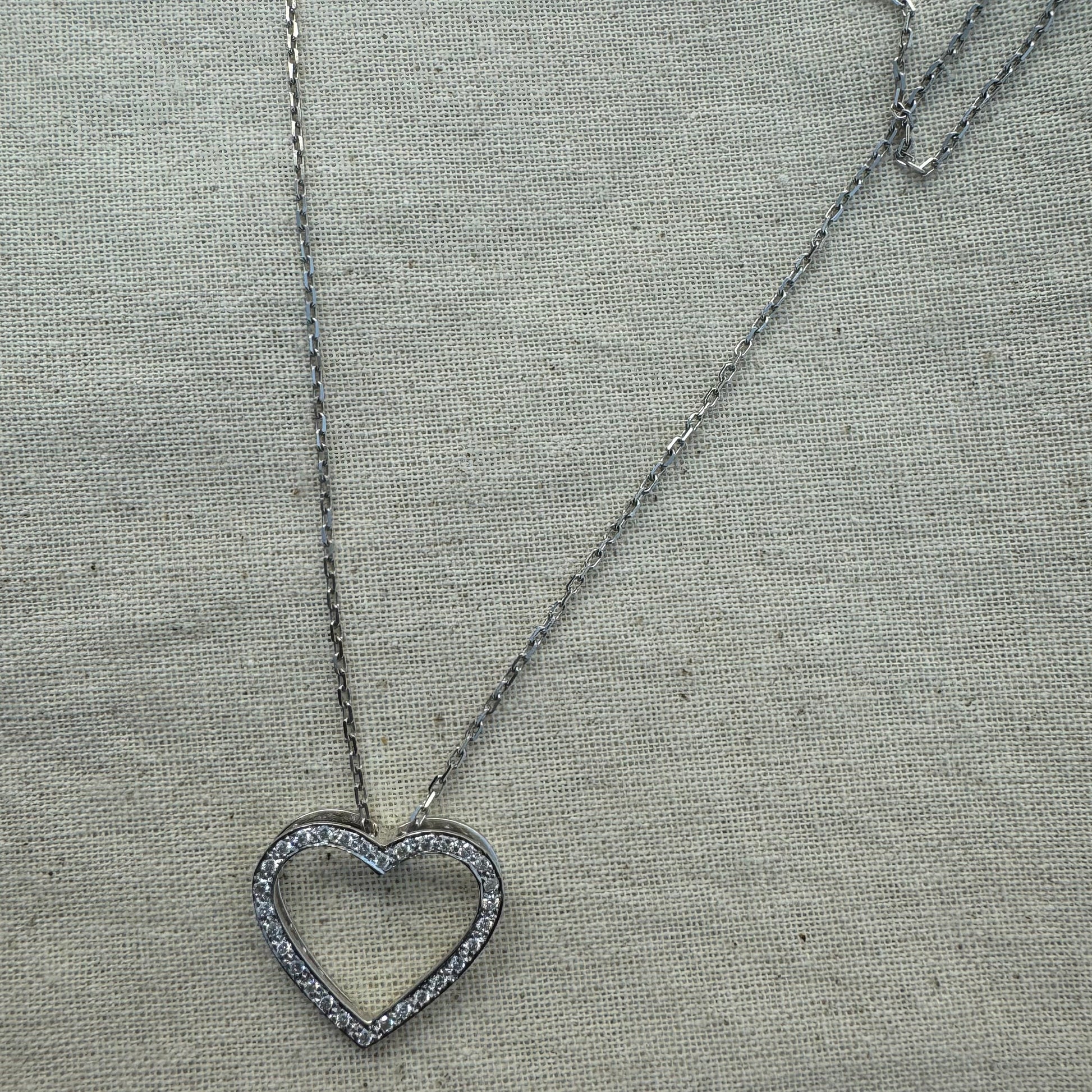 שרשרת זהב לבן 18 קראט עם תליון ״לב״ משובץ יהלומים