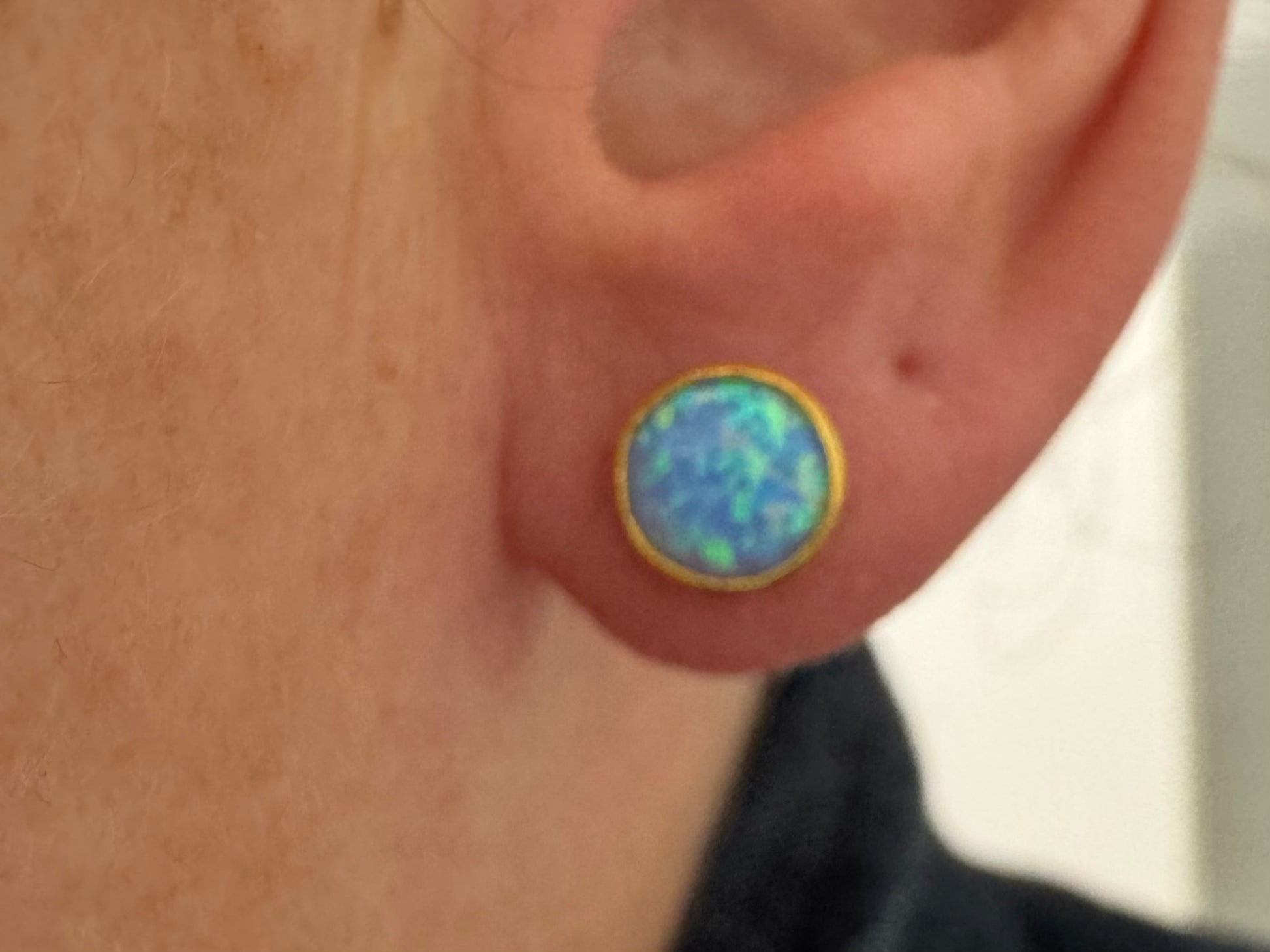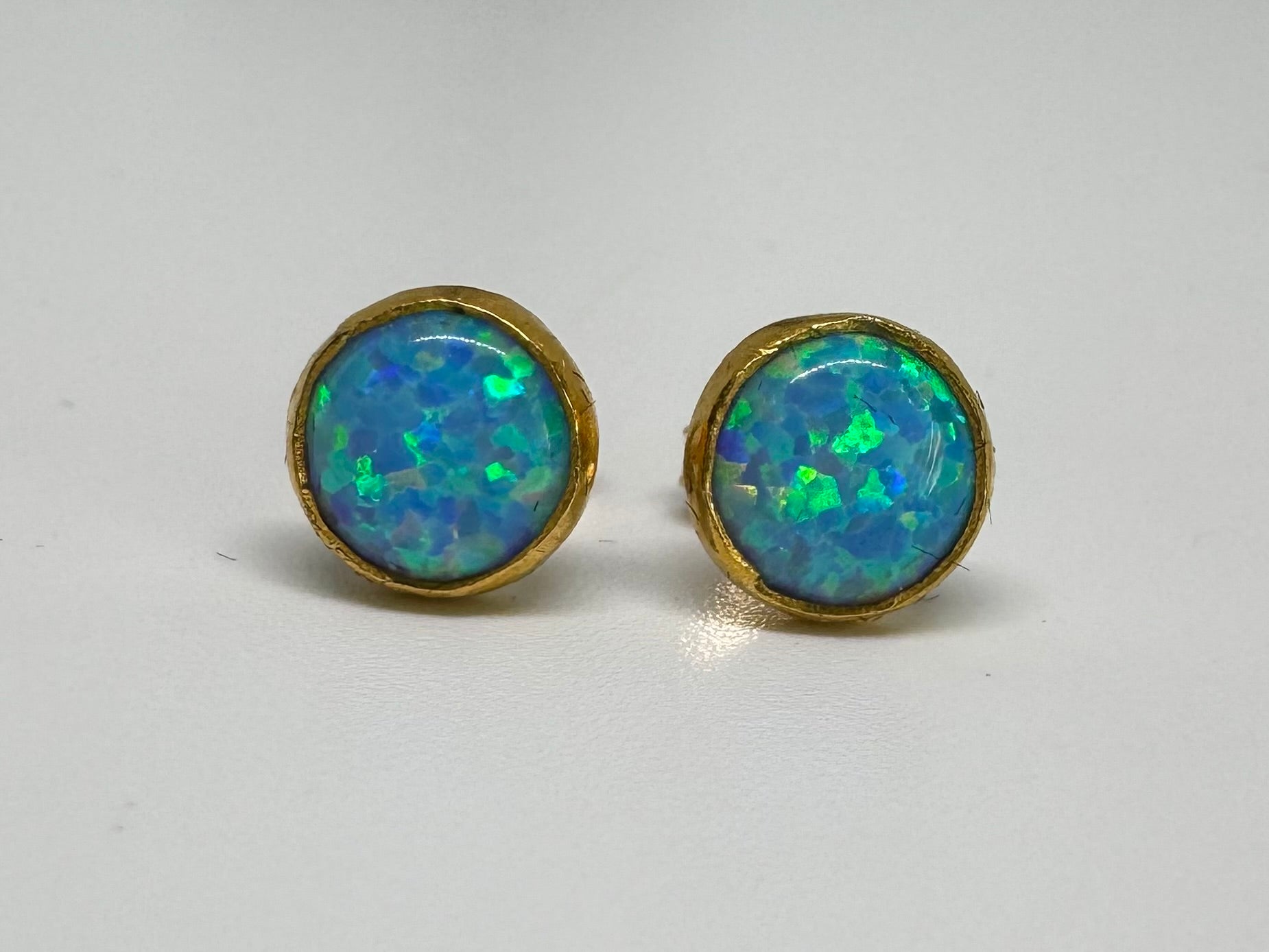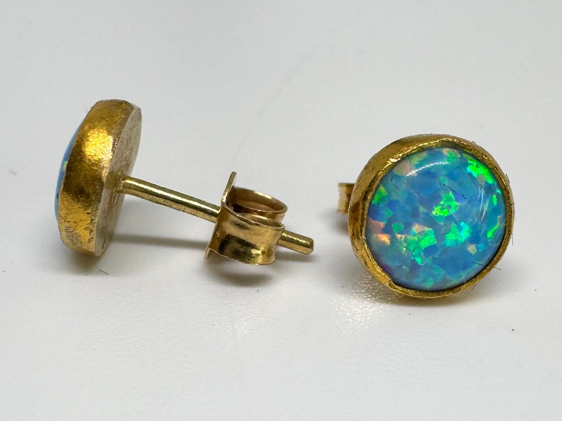 עגילי זהב צהוב 18 קראט משובצים אופל.