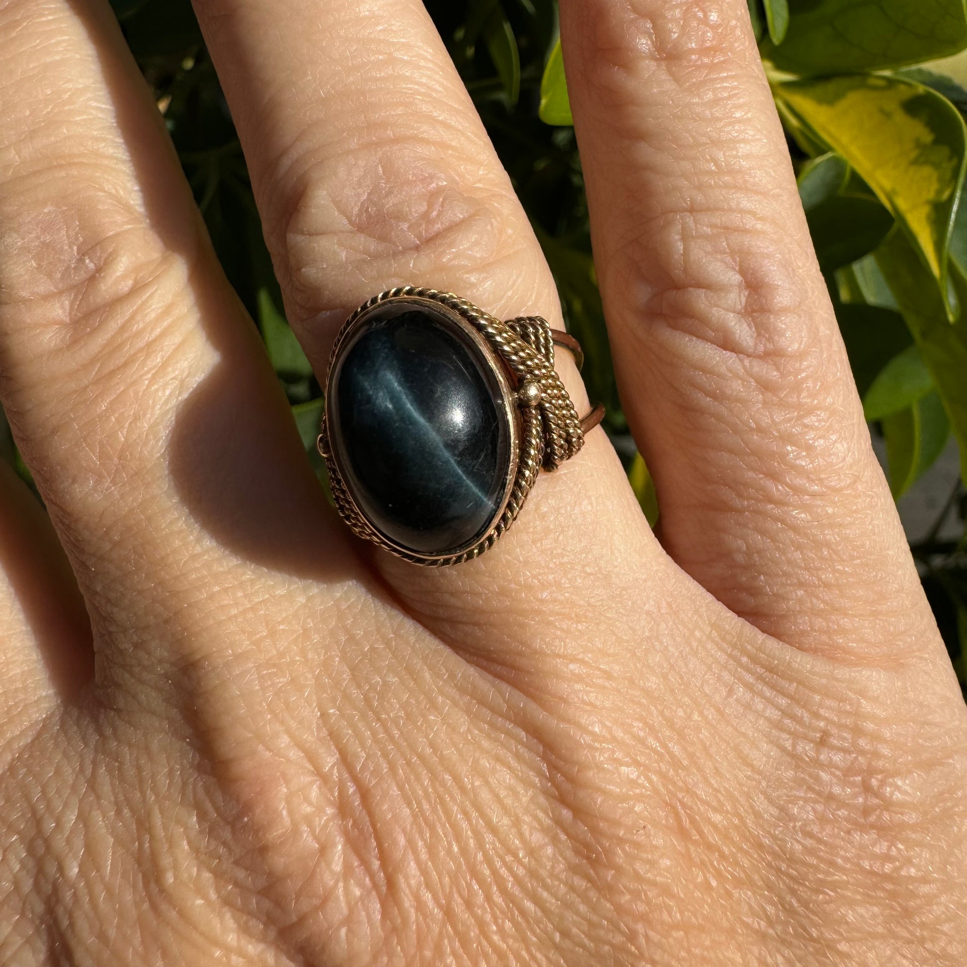 טבעת זהב אדום 14 קראט משובצת אבן ג׳ייד שחורה