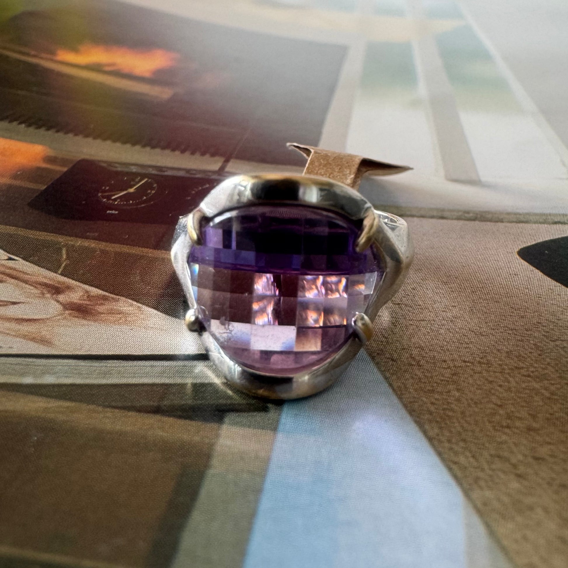טבעת זהב לבן 14 קראט משובצת אבן אמטיסט בצבע סגול בהיר