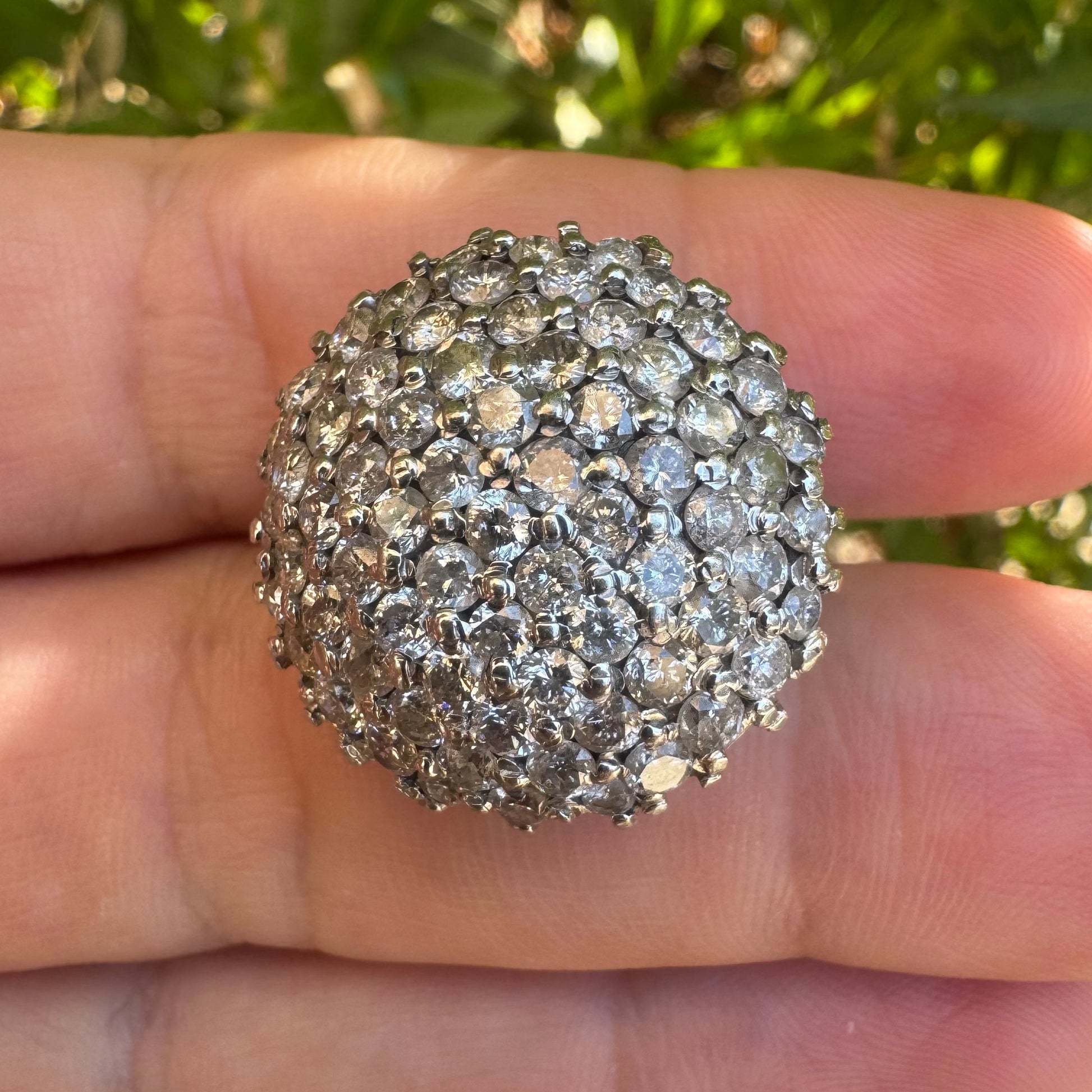 טבעת זהב לבן 18 קראט משובצת יהלומים באפקט פאבה שבו האבנים משובצות בצורה צפופה ומכסות את כל השטח