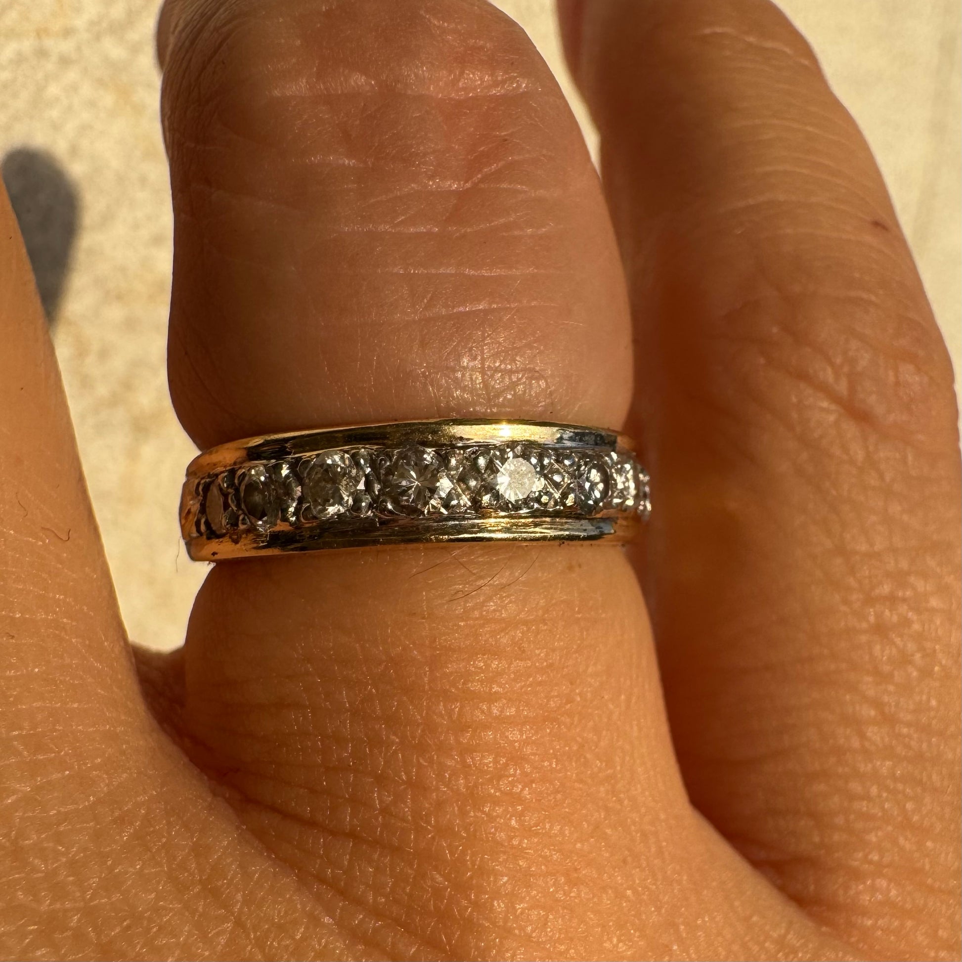 טבעת זהב צהוב 14 קראט, חצי איטרניטי, משובצת יהלומים