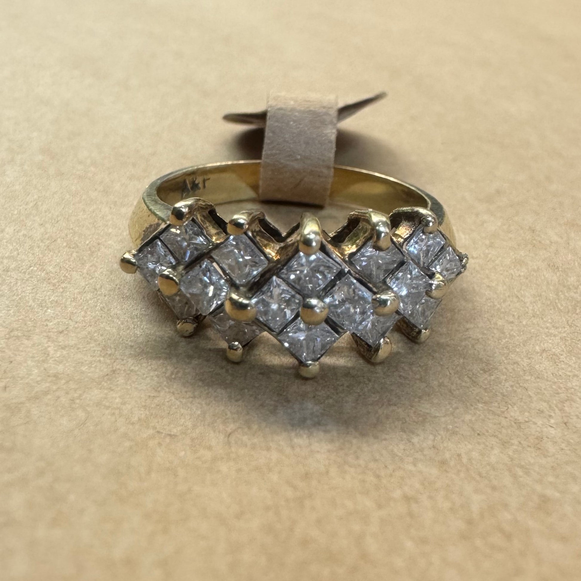 טבעת זהב צהוב 14 קראט משובצת יהלומים בחיתוך מרובע