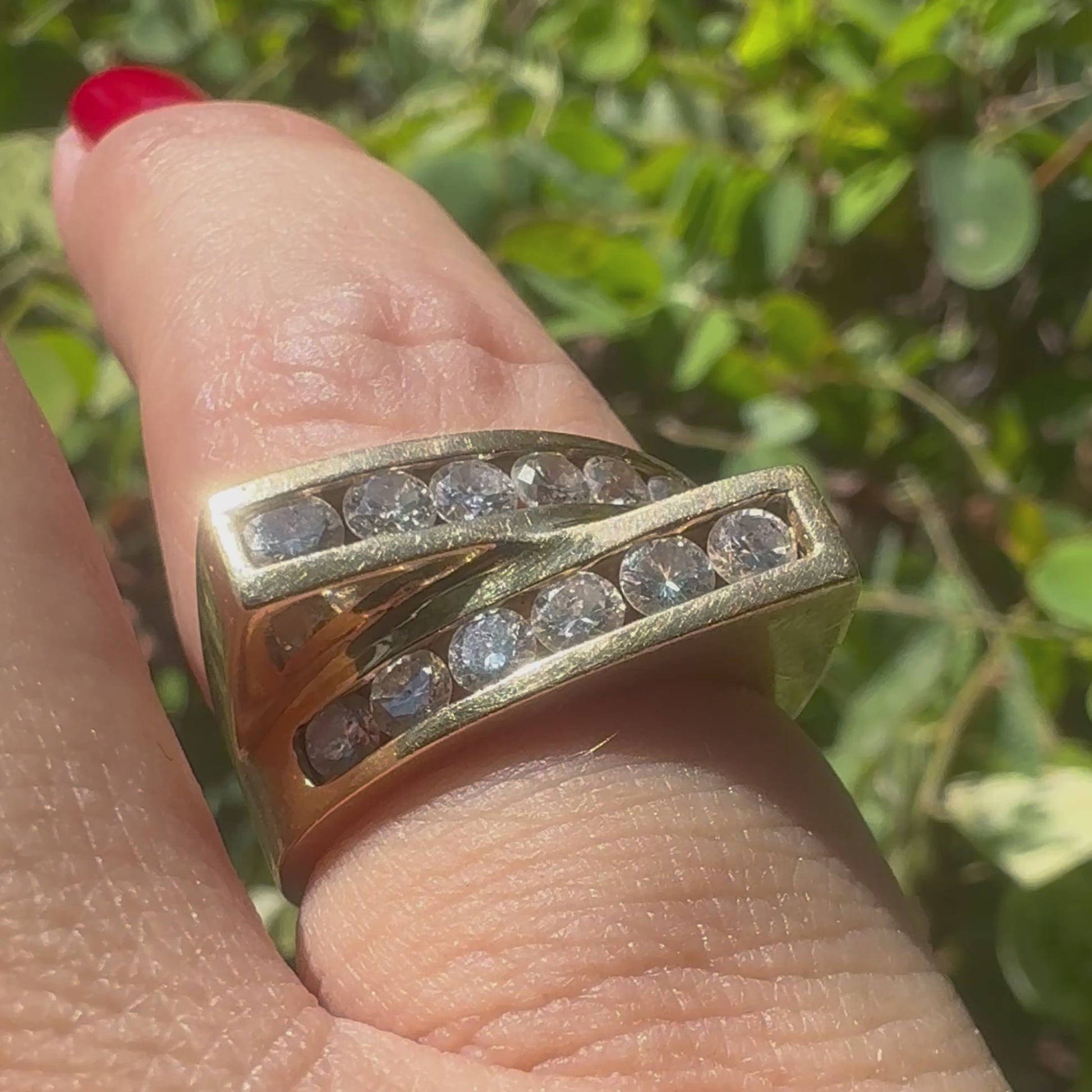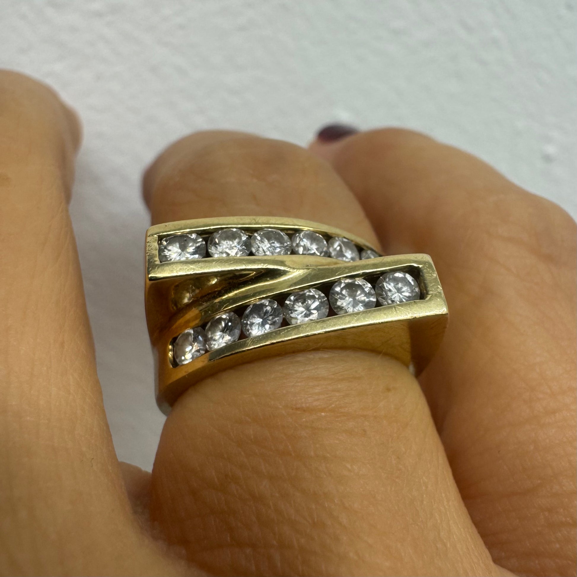 טבעת זהב צהוב 14 קראט משובצת יהלומים