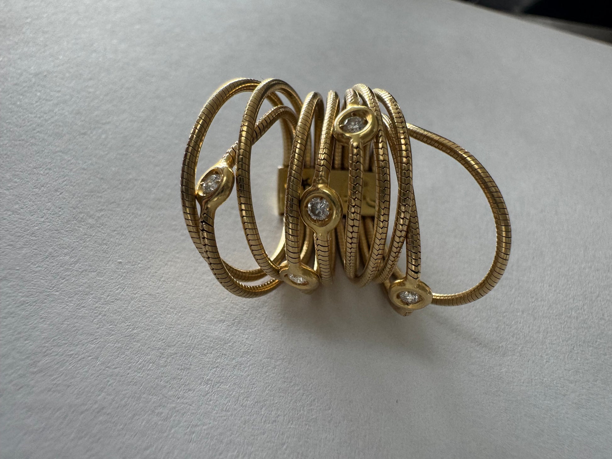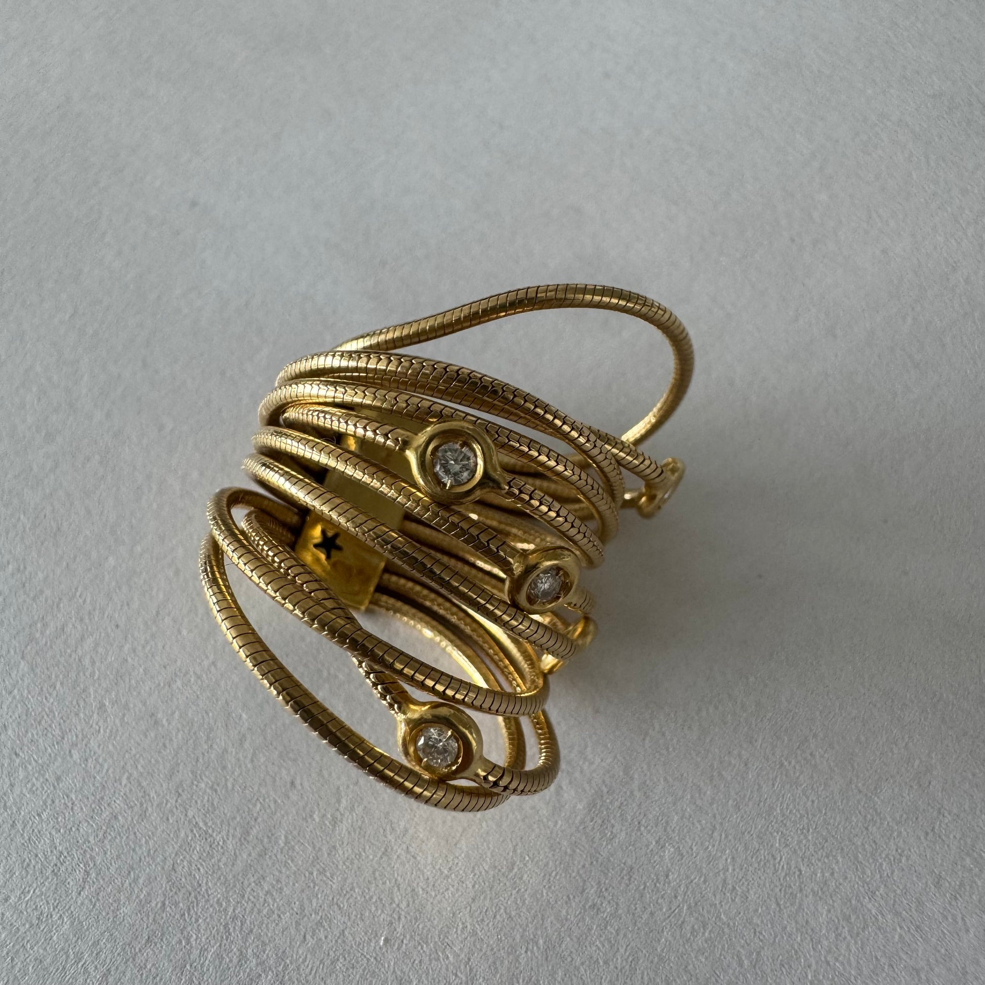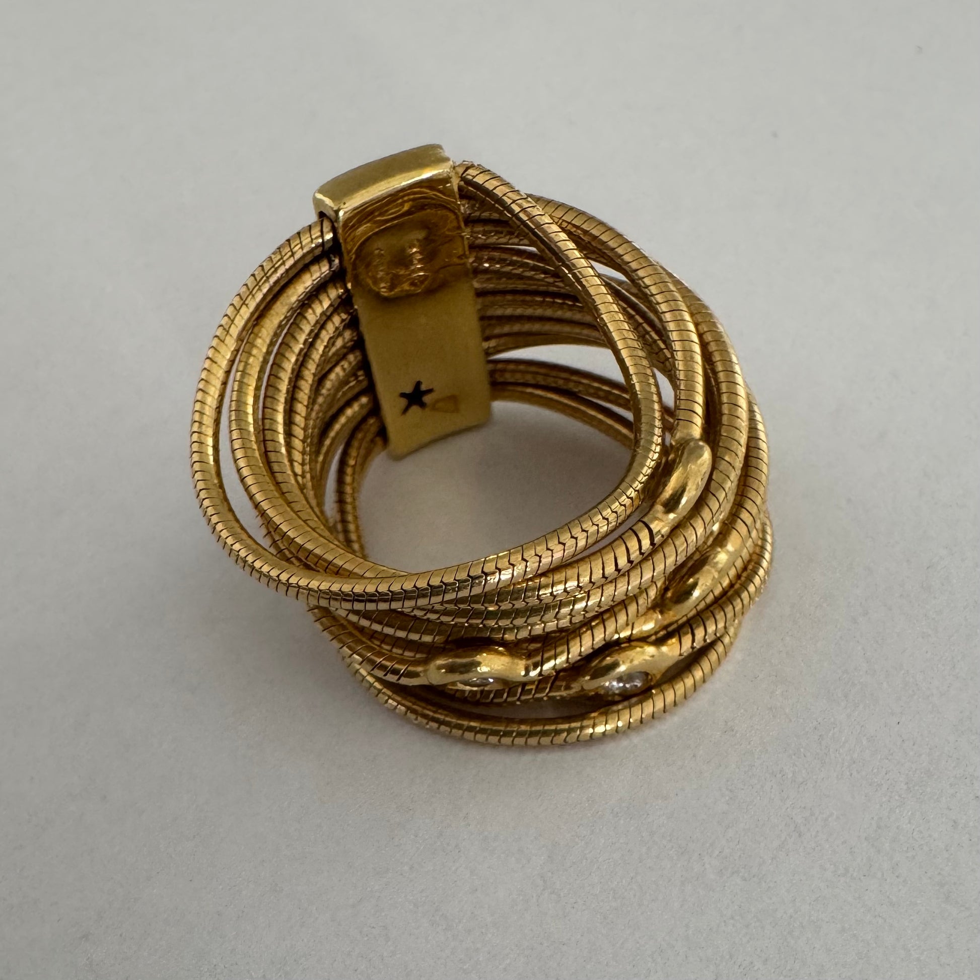 טבעת זהב צהוב 18 קראט של המותג H. Stern משובצת יהלומים בעיצוב רב־ליפופים אלגנטי