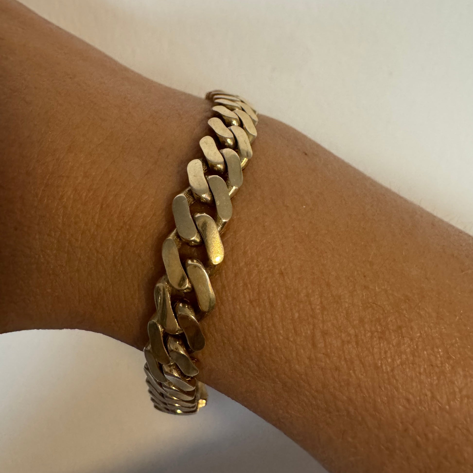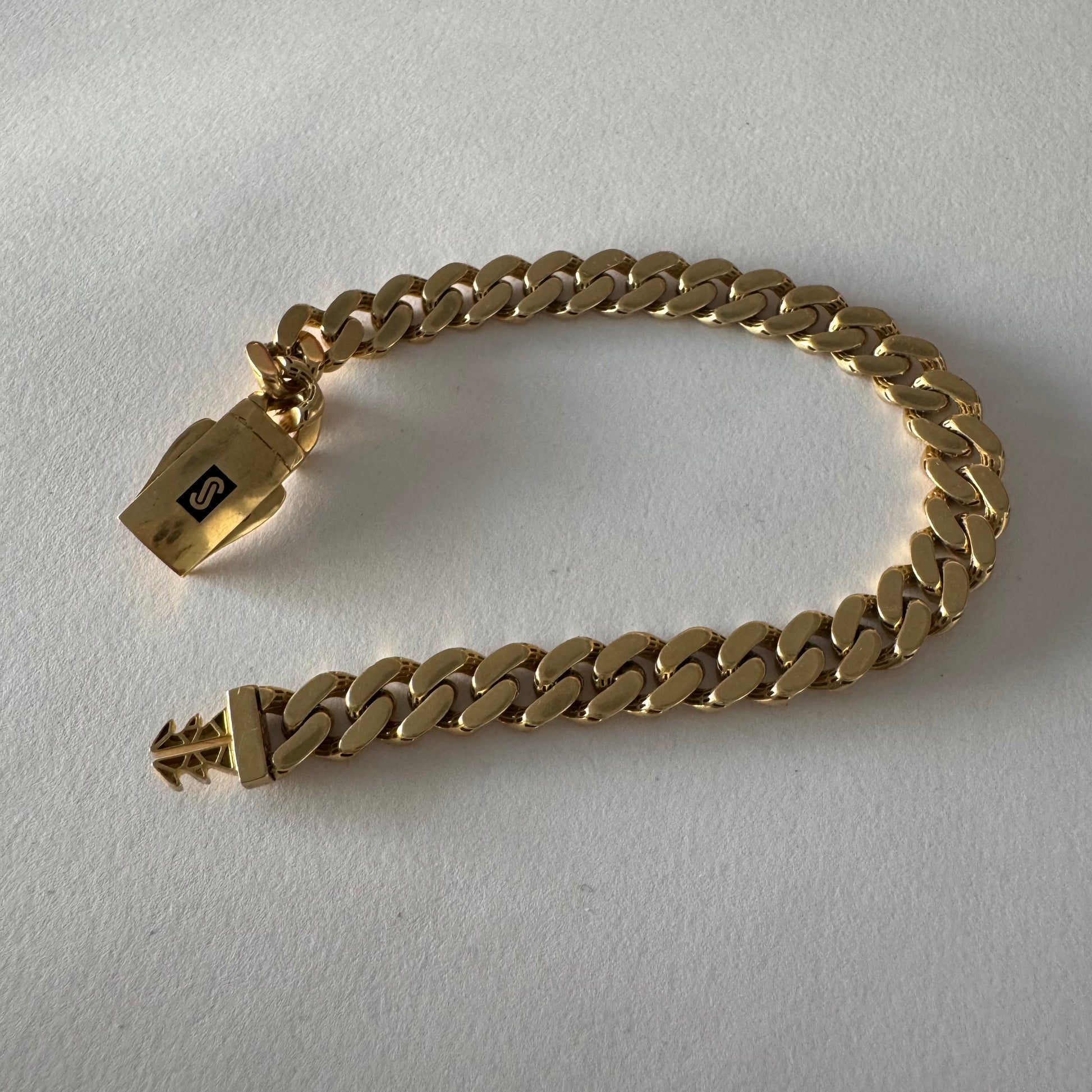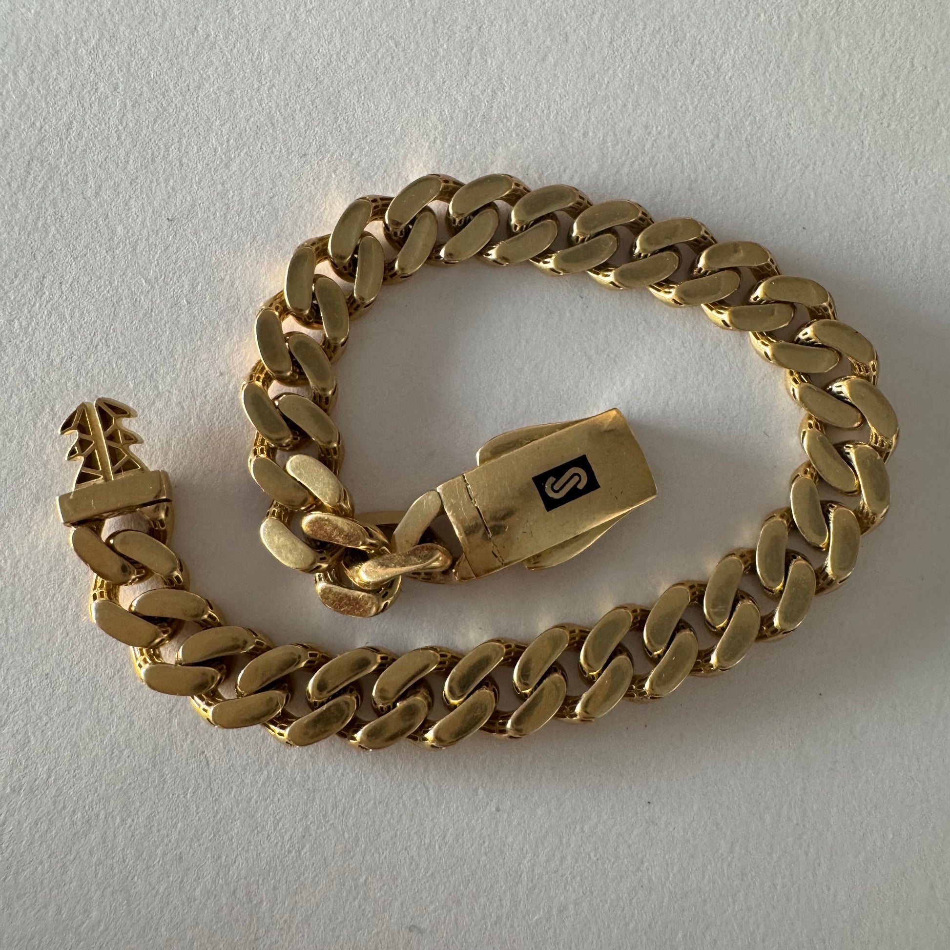 צמיד גורמט מזהב צהוב 14 קראט בעיצוב קלאסי ועל־זמני עם אבזם נוח ובטיחותי הנושא חתימת המותג.