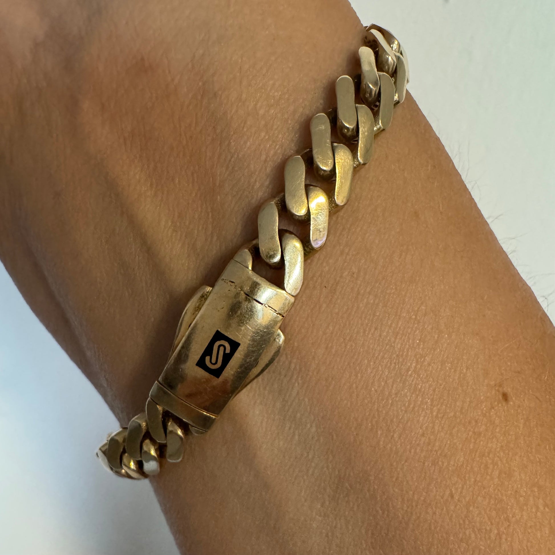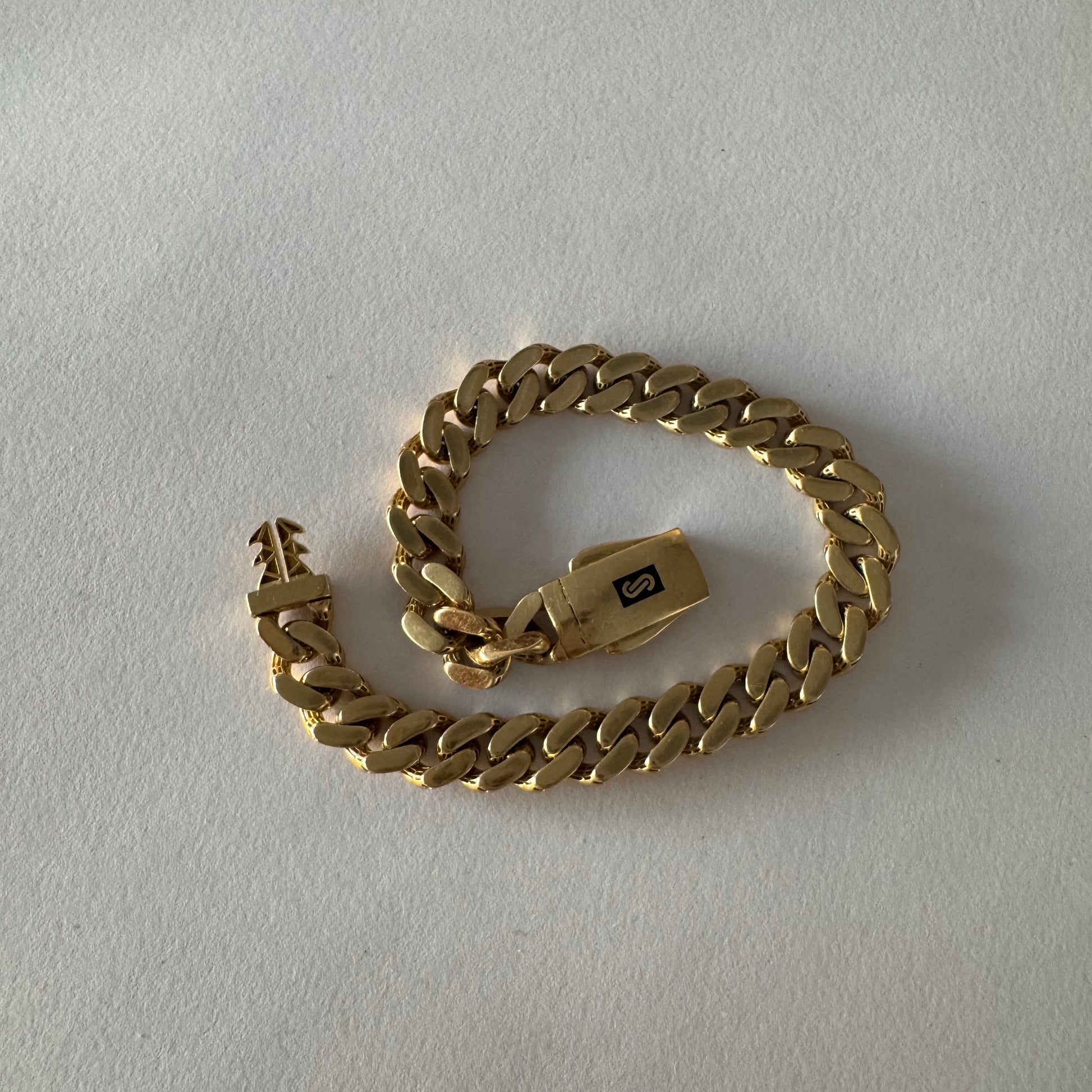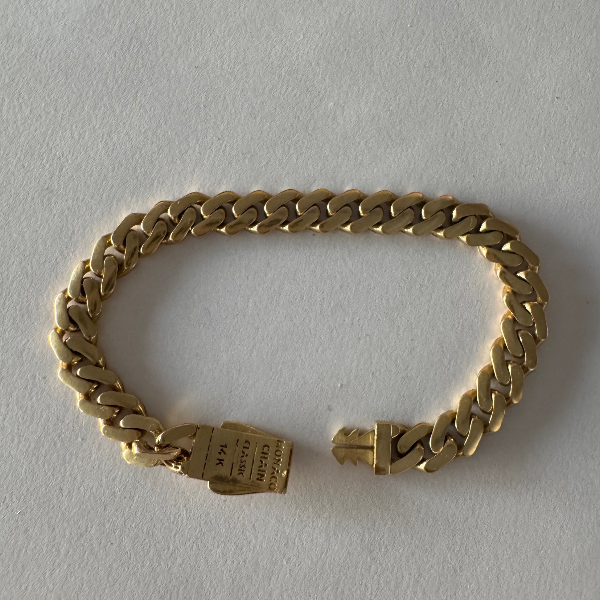 צמיד גורמט מזהב צהוב 14 קראט בעיצוב קלאסי ועל־זמני עם אבזם נוח ובטיחותי הנושא חתימת המותג.