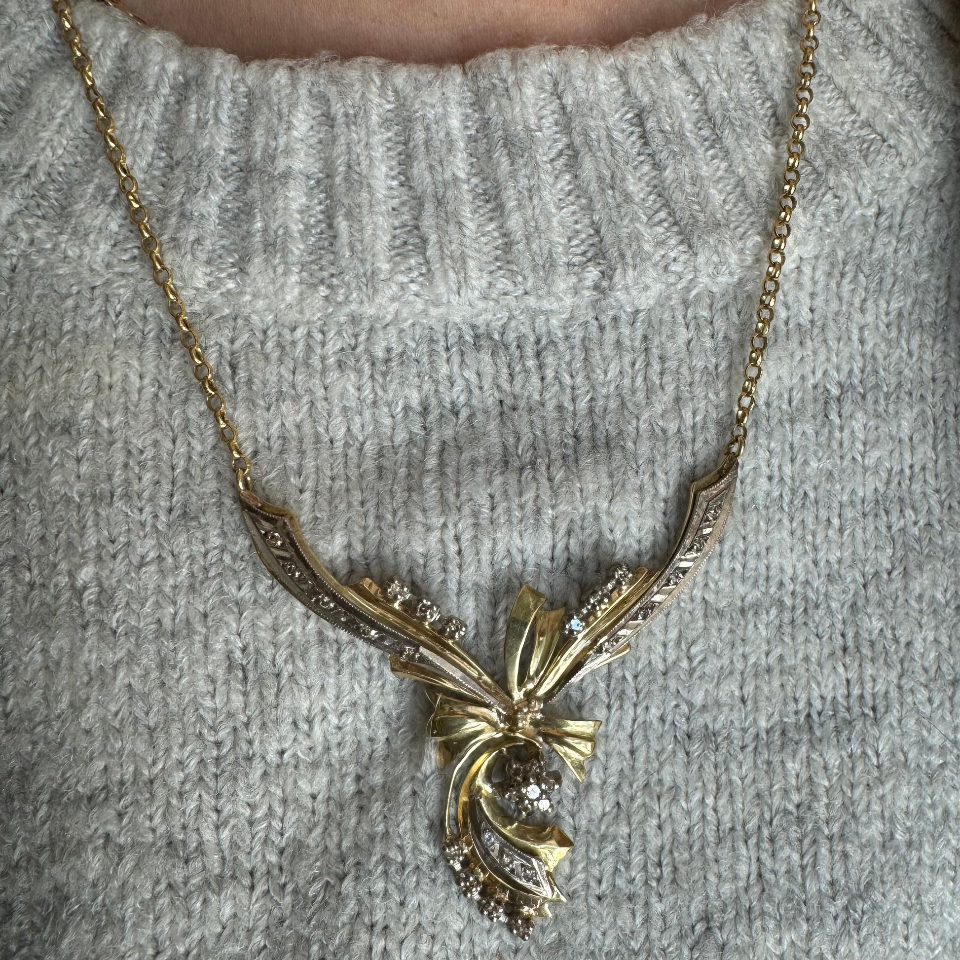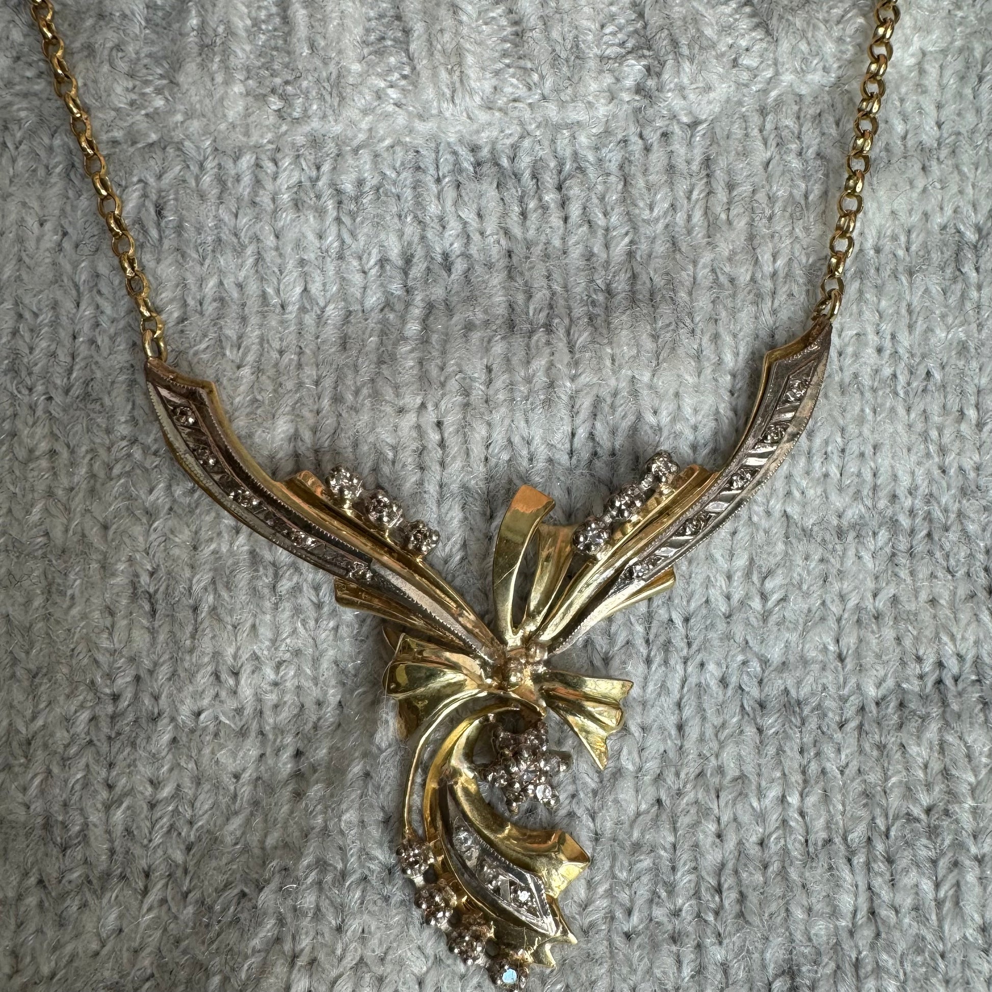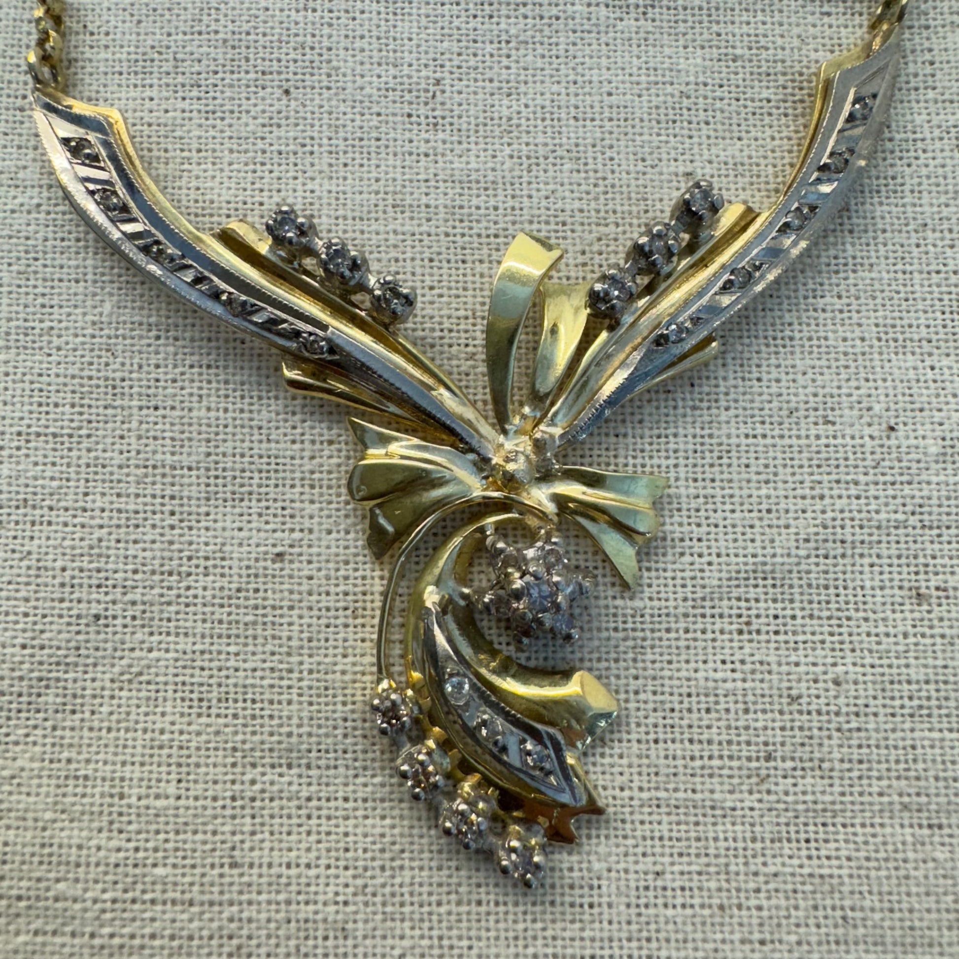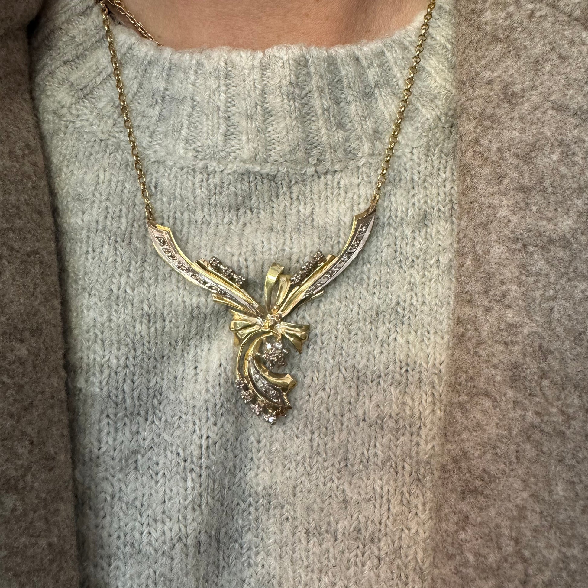 שרשרת זהב צהוב ולבן 18 קראט משובצת יהלומים.