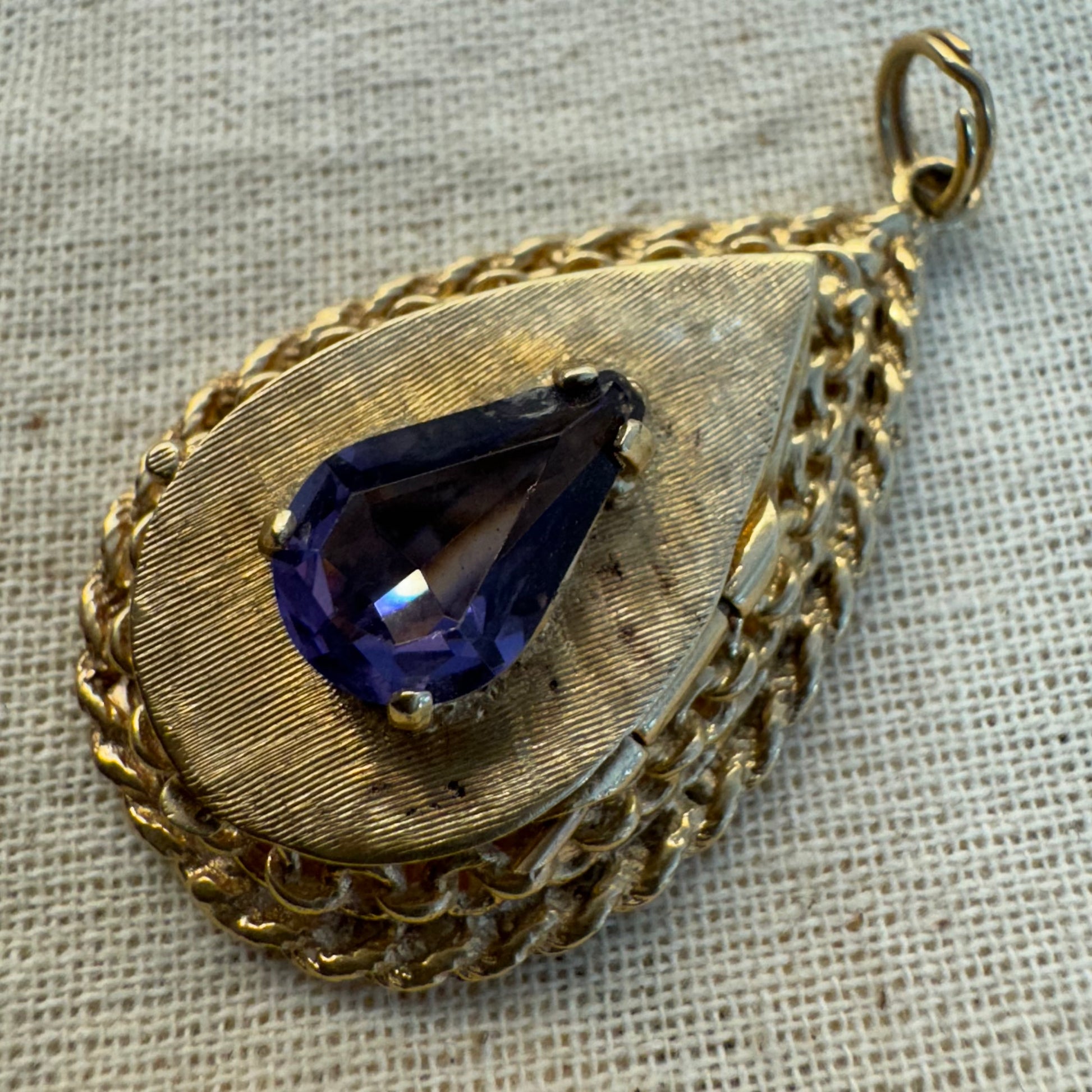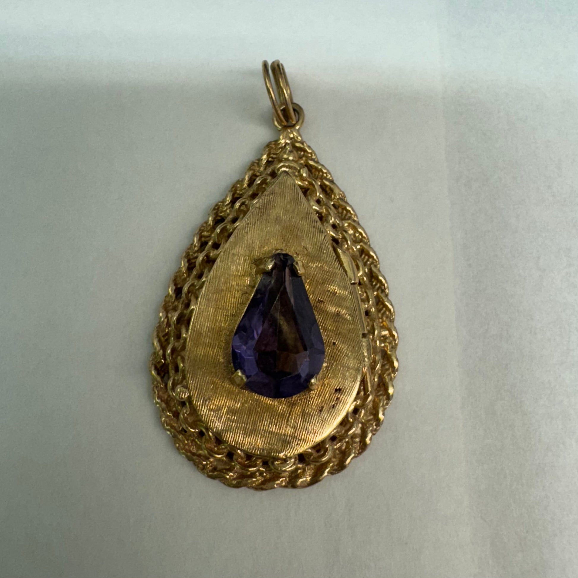 תליון זהב צהוב 14 קראט נפתח, משובץ באבן אמטיסט