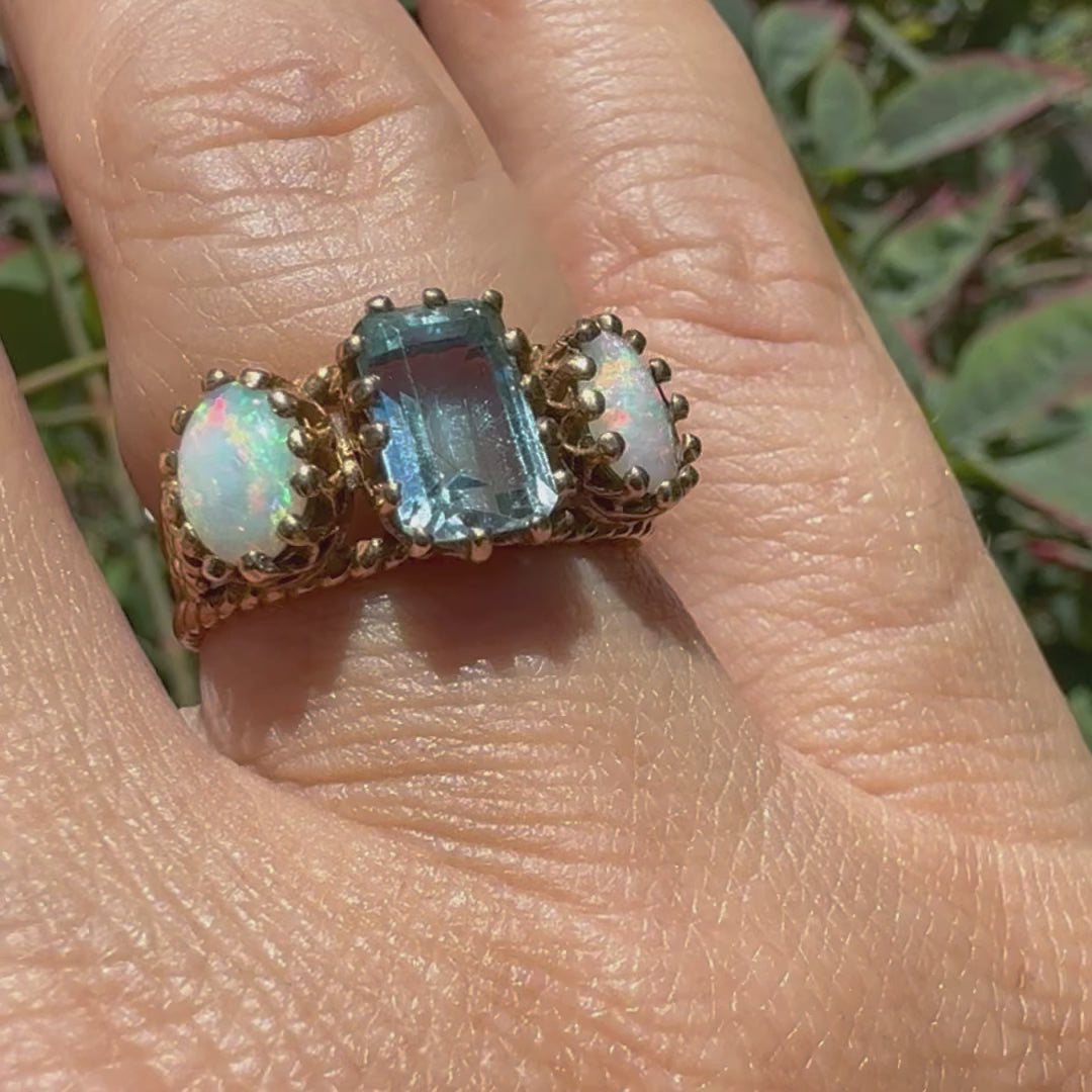 טבעת זהב 10K משובצת אקוומרין ואופלים