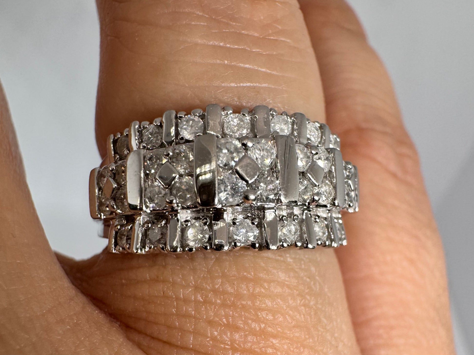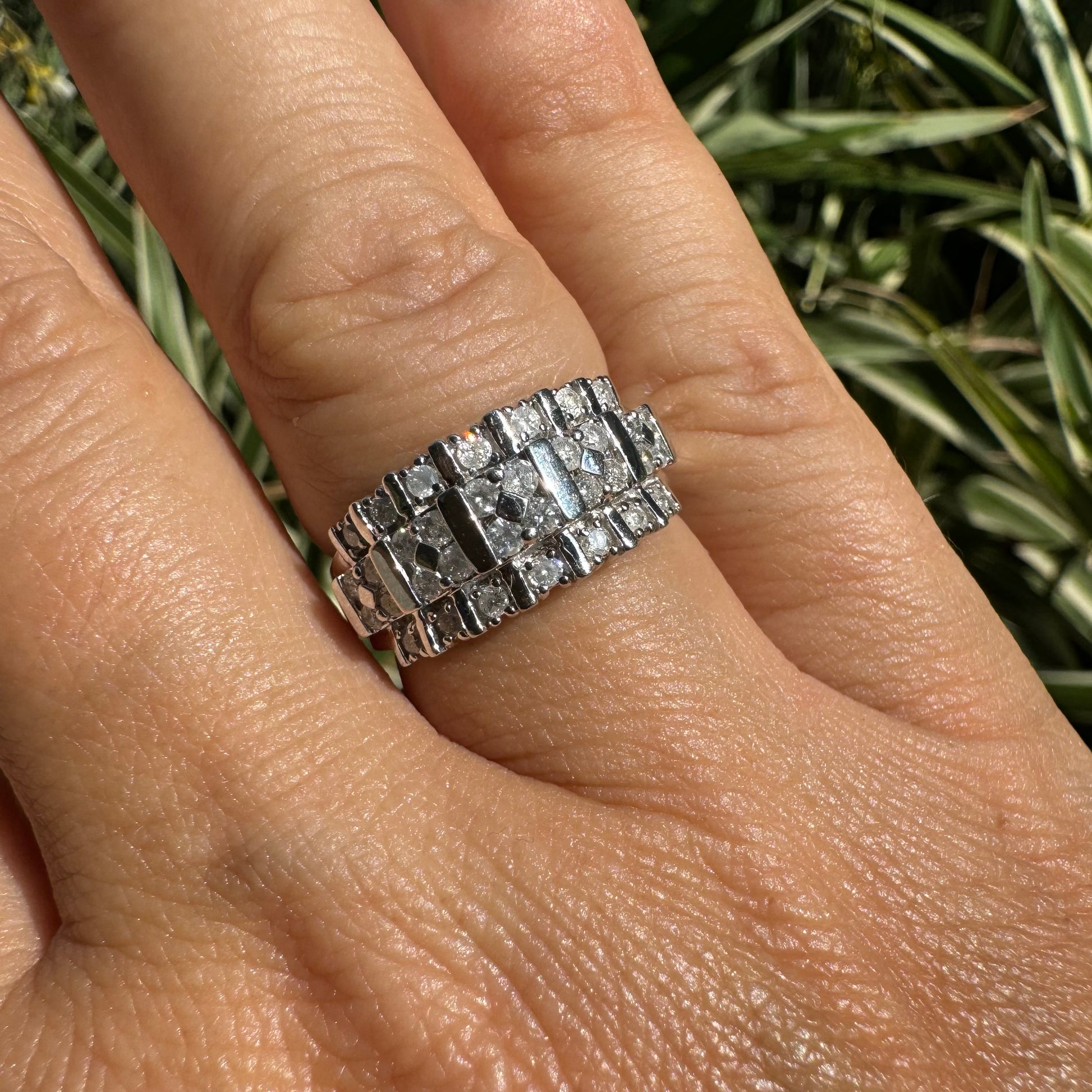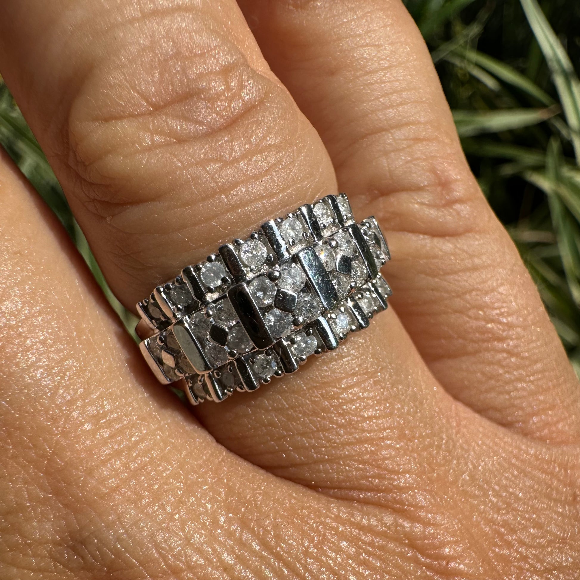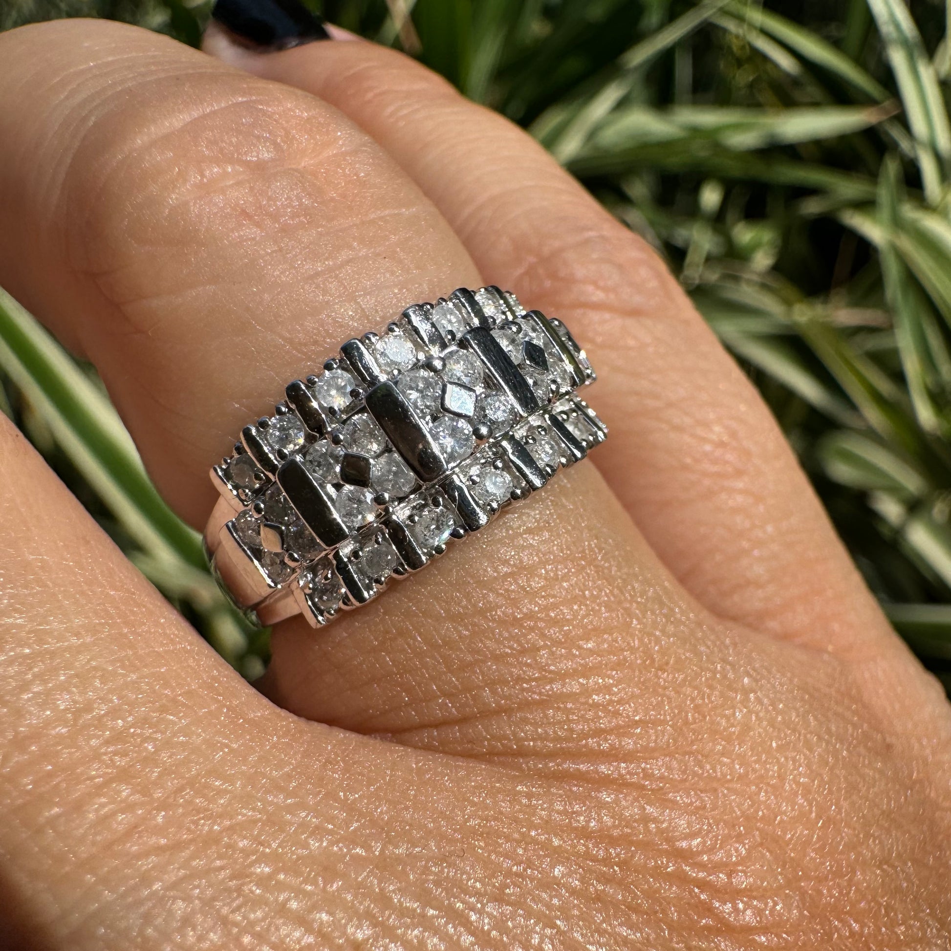 10K white gold ring featuring a bold, structured design set with Diamonds