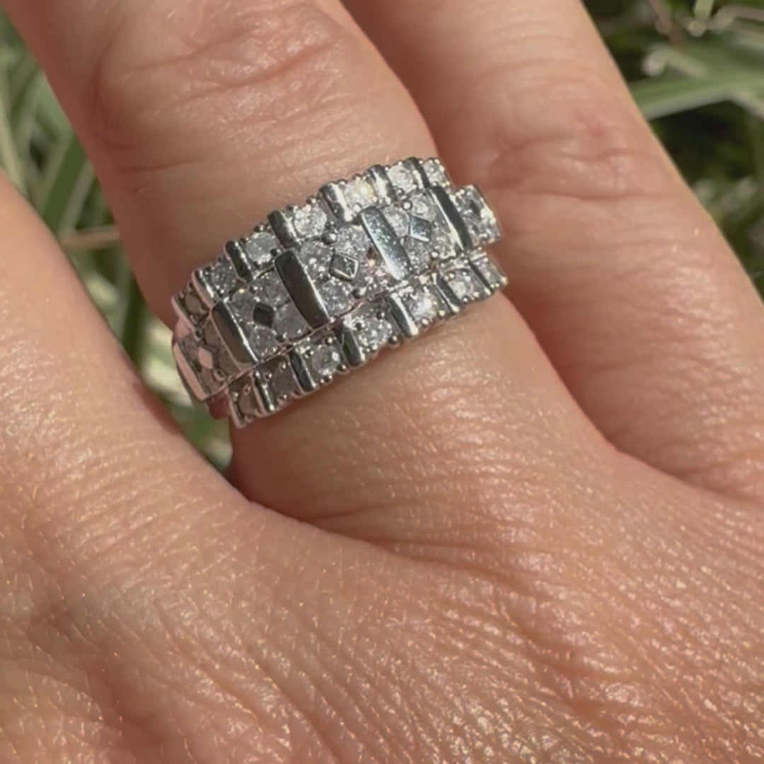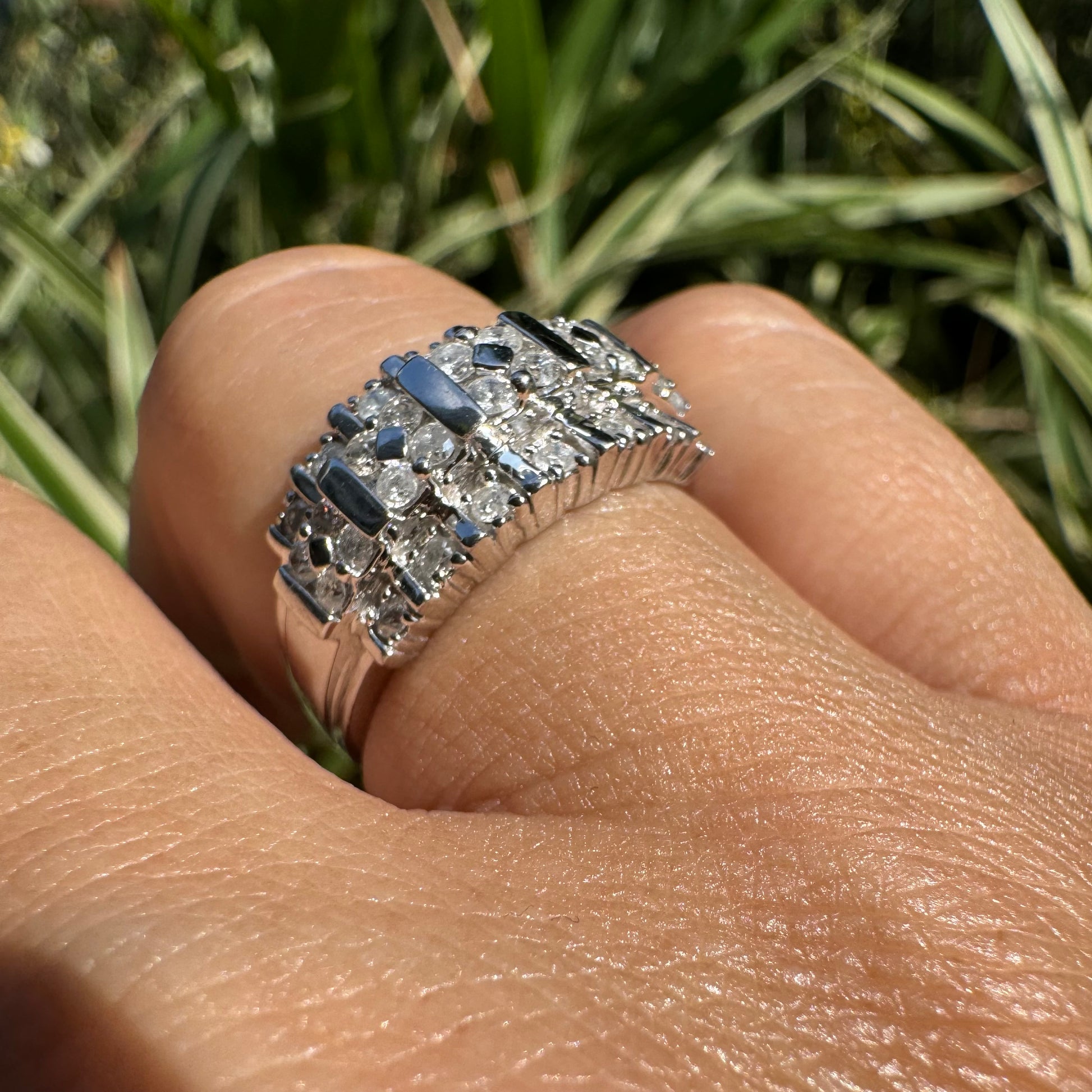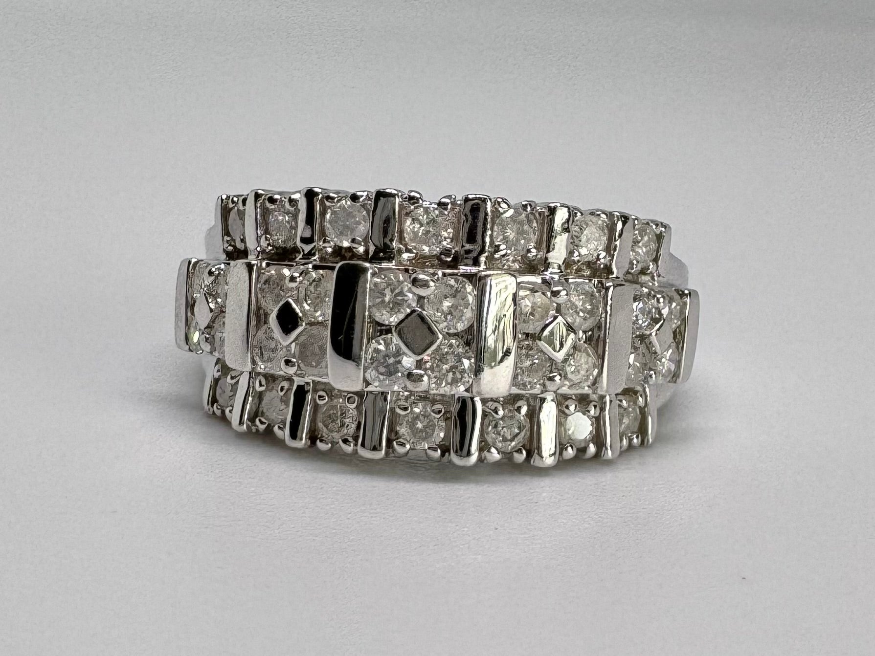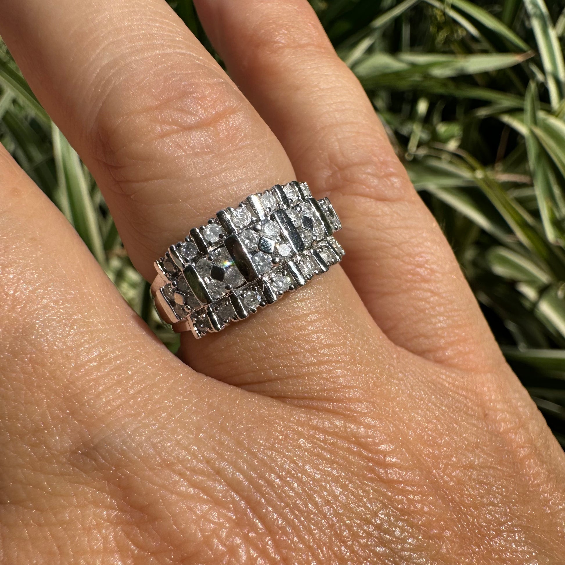 10K white gold ring featuring a bold, structured design set with Diamonds