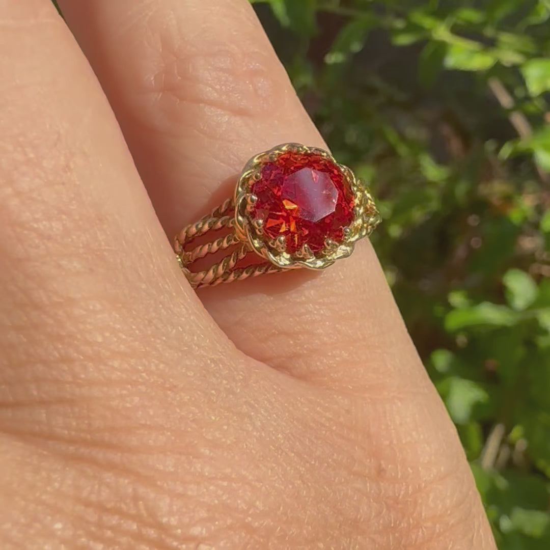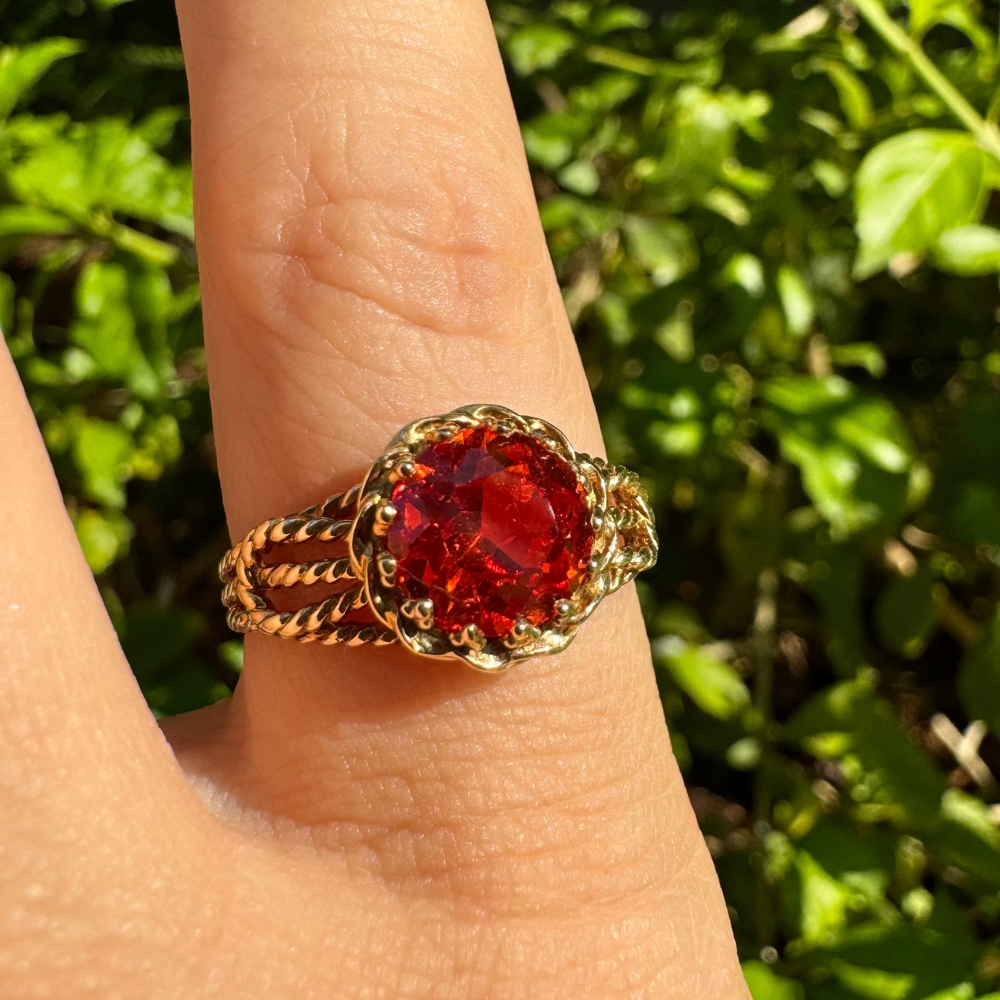 טבעת זהב צהוב 10 קראט משובצת אבן חן כתומה