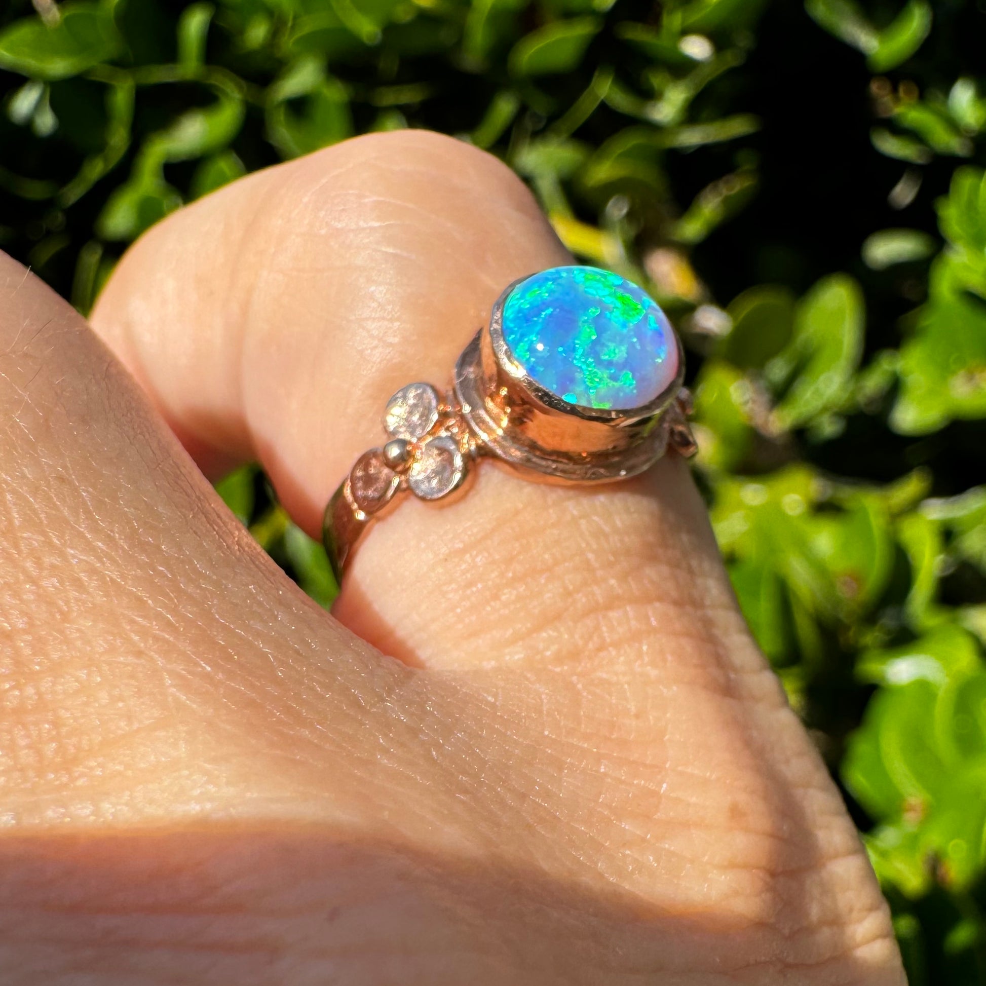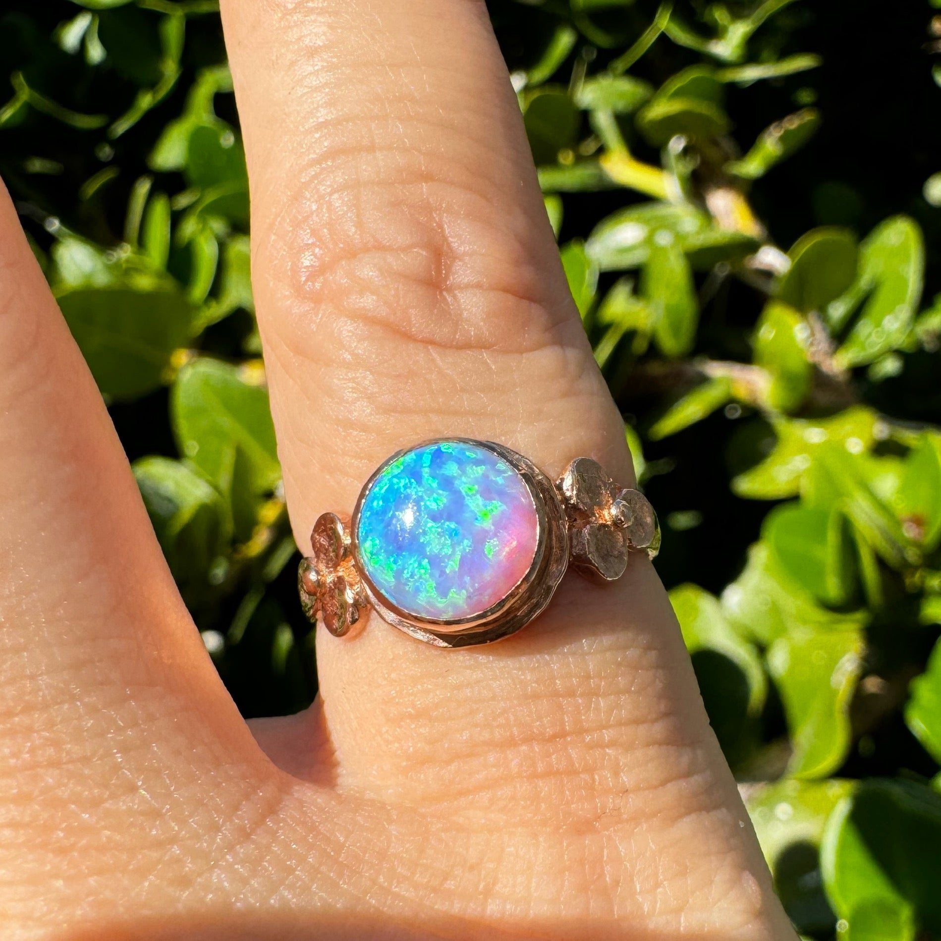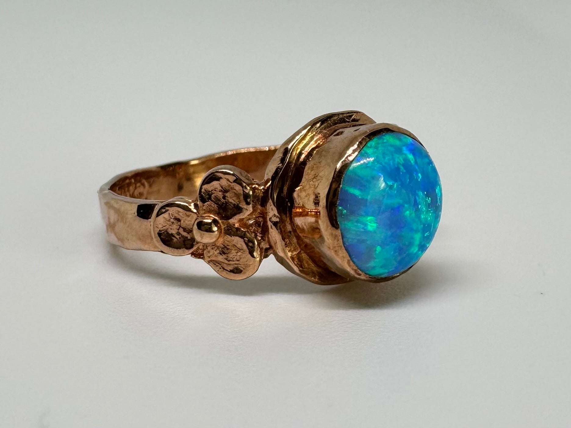 טבעת זהב אדום 10 קראט משובצת אבן אופל
