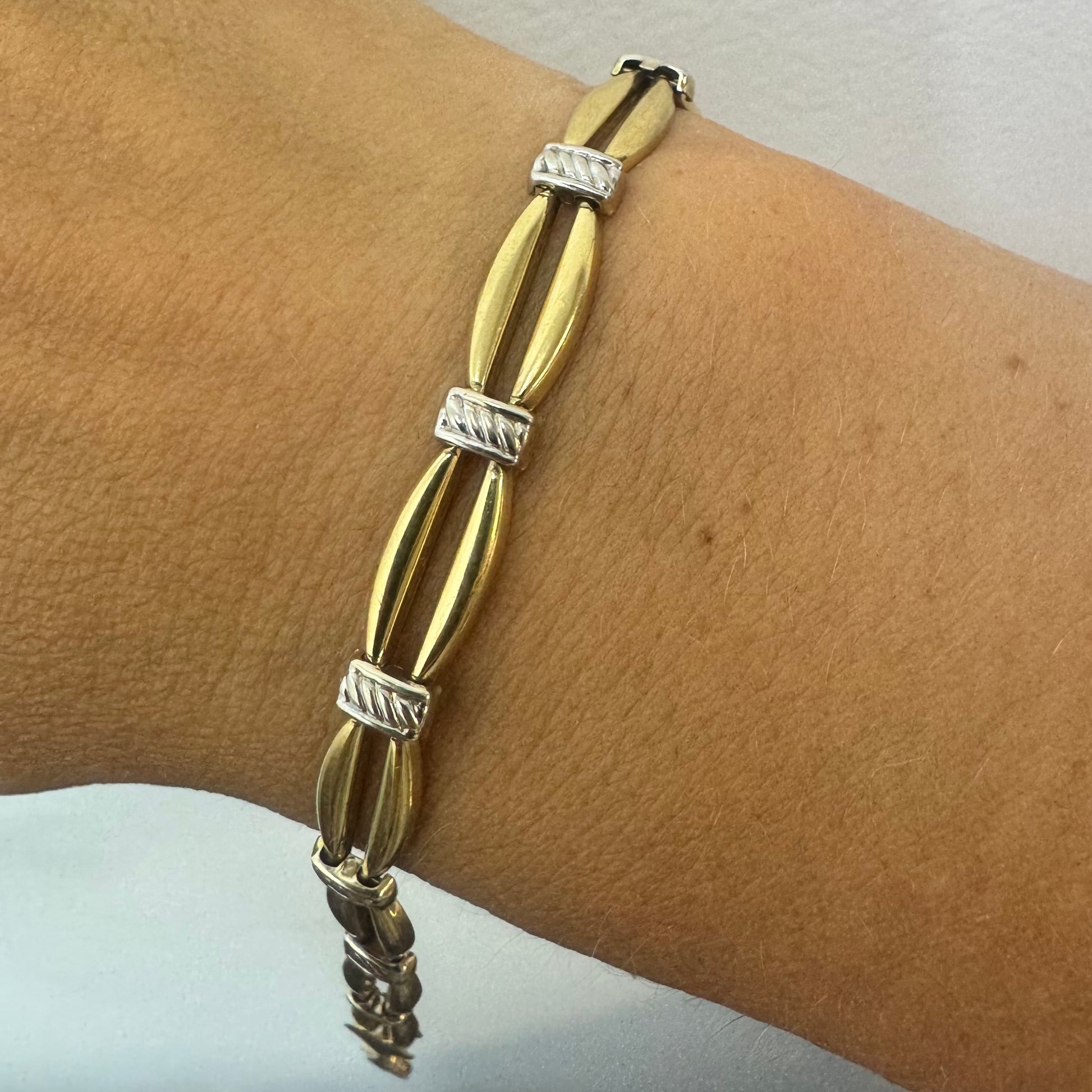 צמיד זהב צהוב וזהב לבן 10 קראט, חוליות.