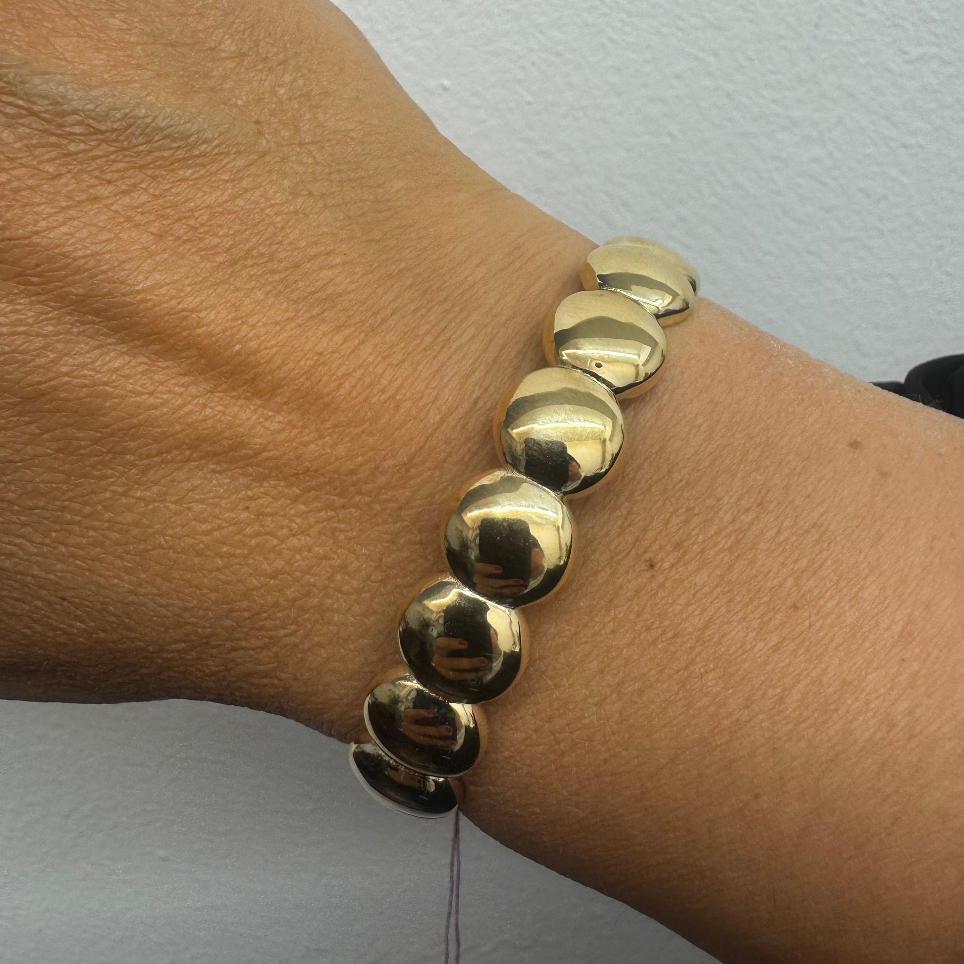 צמיד זהב צהוב 14 קראט קשיח עם חוליות עגולות, שטוחות ומבריקות, בעיצוב מינימליסטי אך בולט.