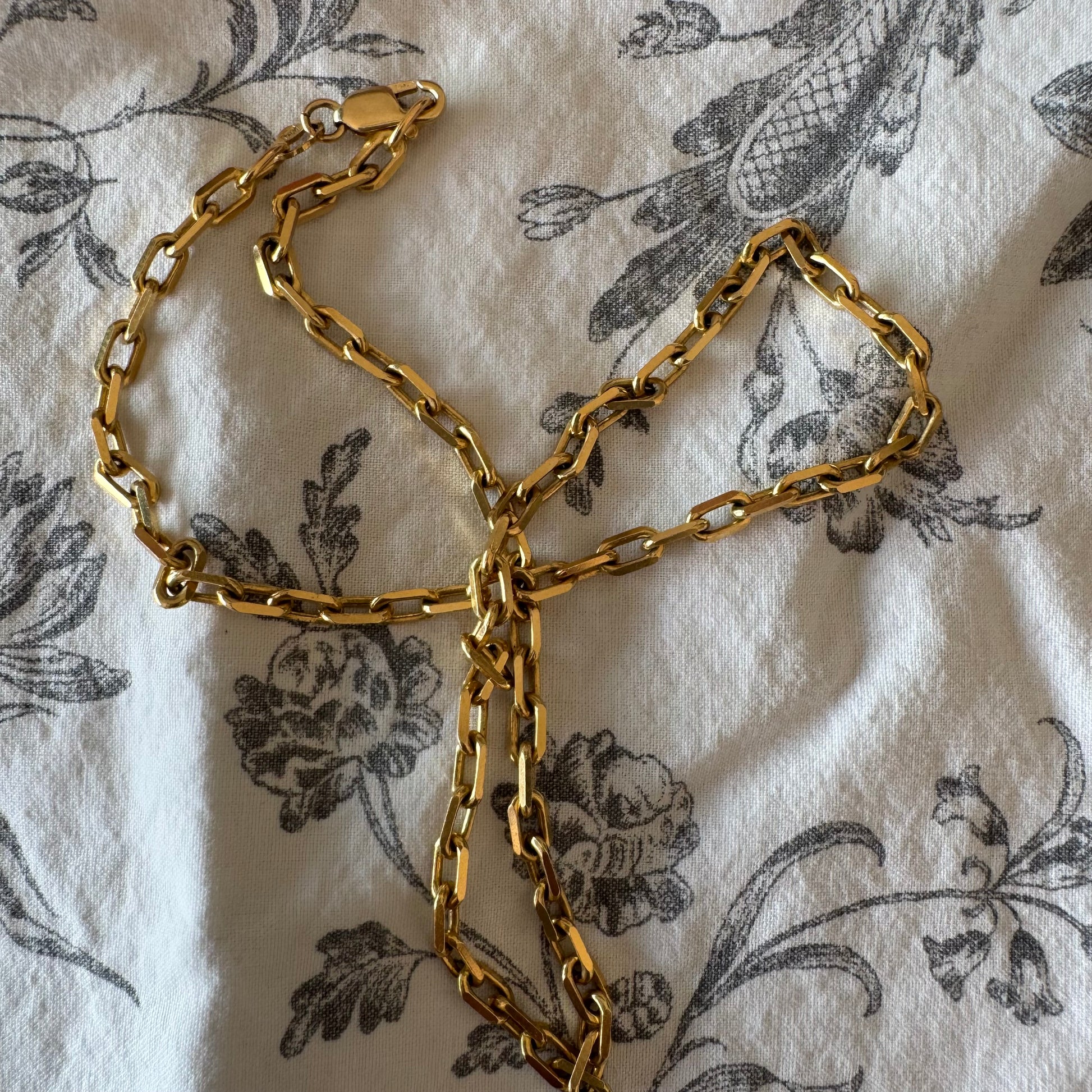 14K gold chain necklace featuring elegant elongated links with a polished finish.