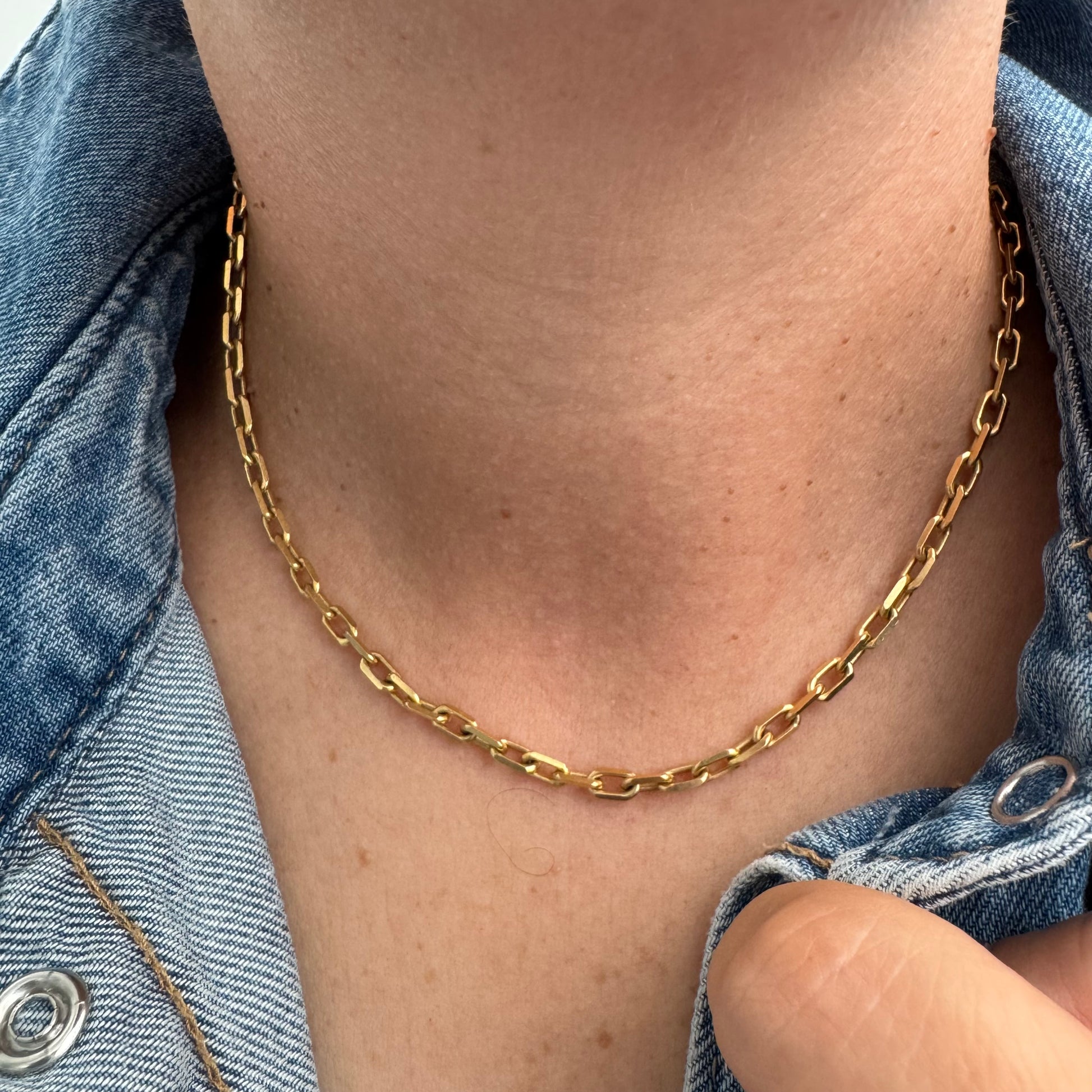 שרשרת זהב 14 קראט בעיצוב חוליות מוארכות ומבריקות.