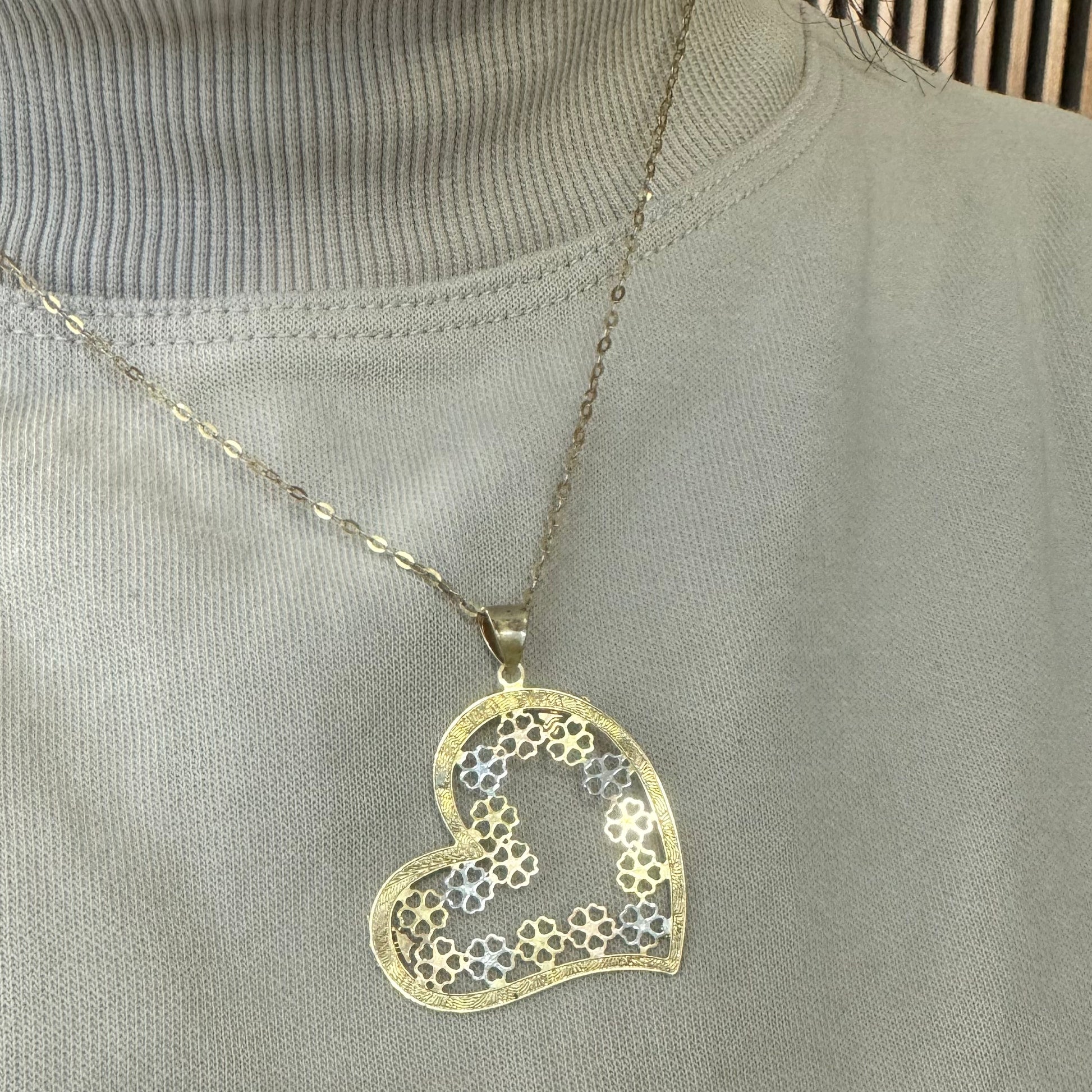 שרשרת זהב צהוב, לבן ואדום עם תליון ״לב״ גדול