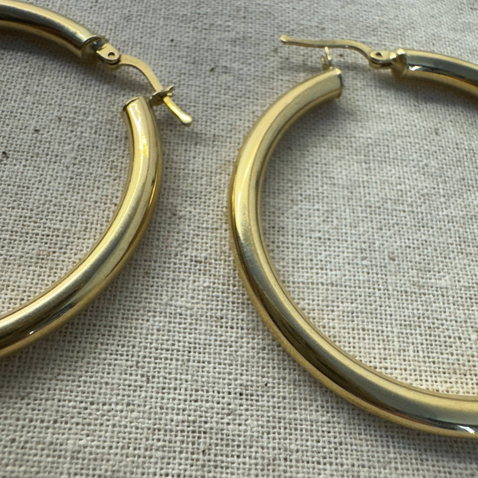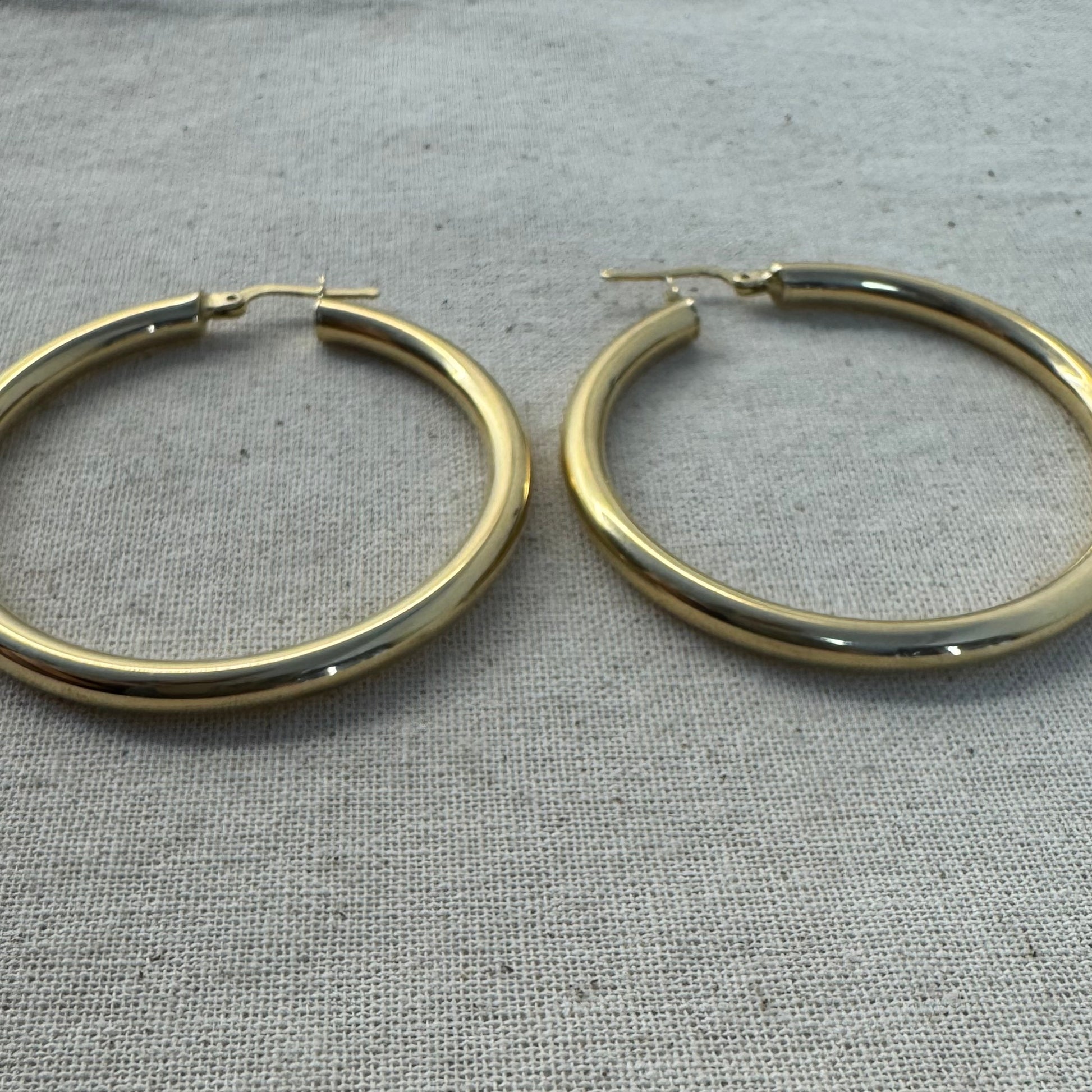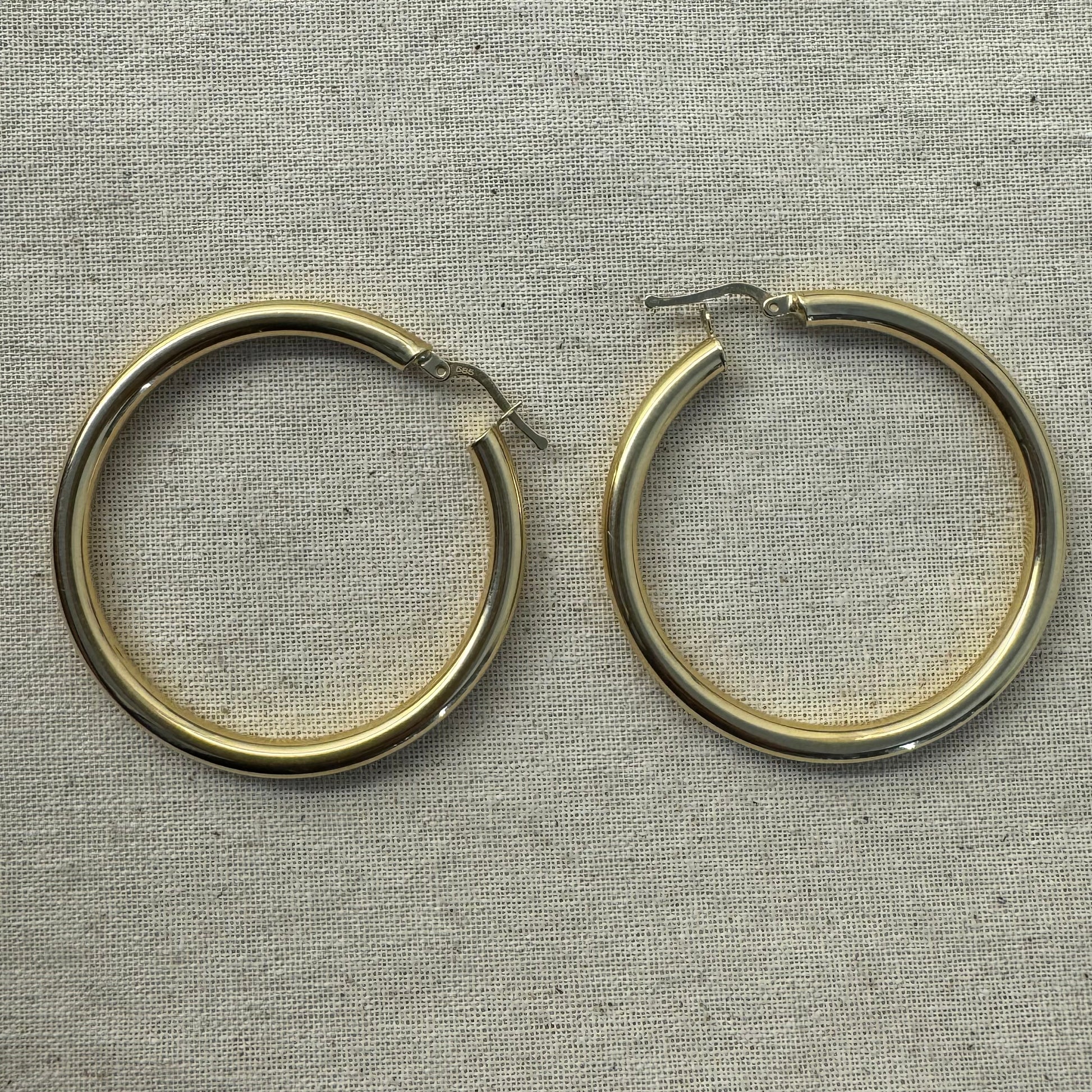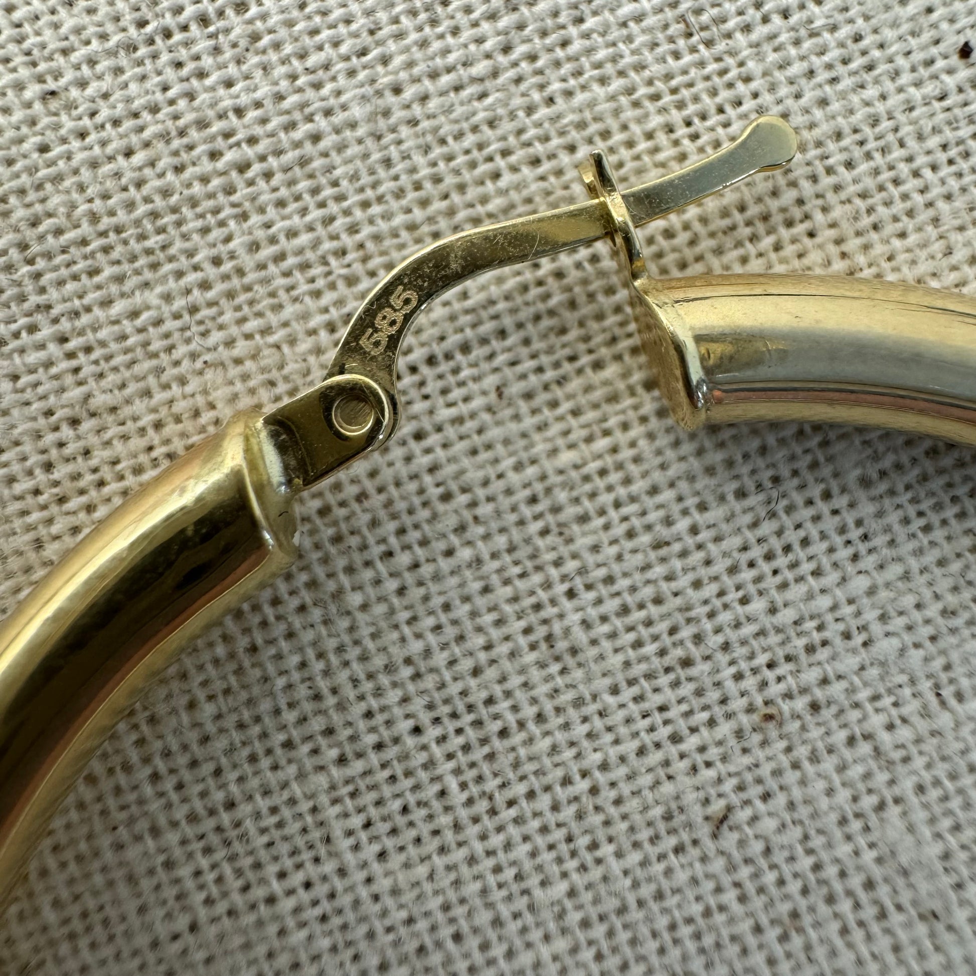 עגילי זהב צהוב 14 קראט , חישוקים גדולים
