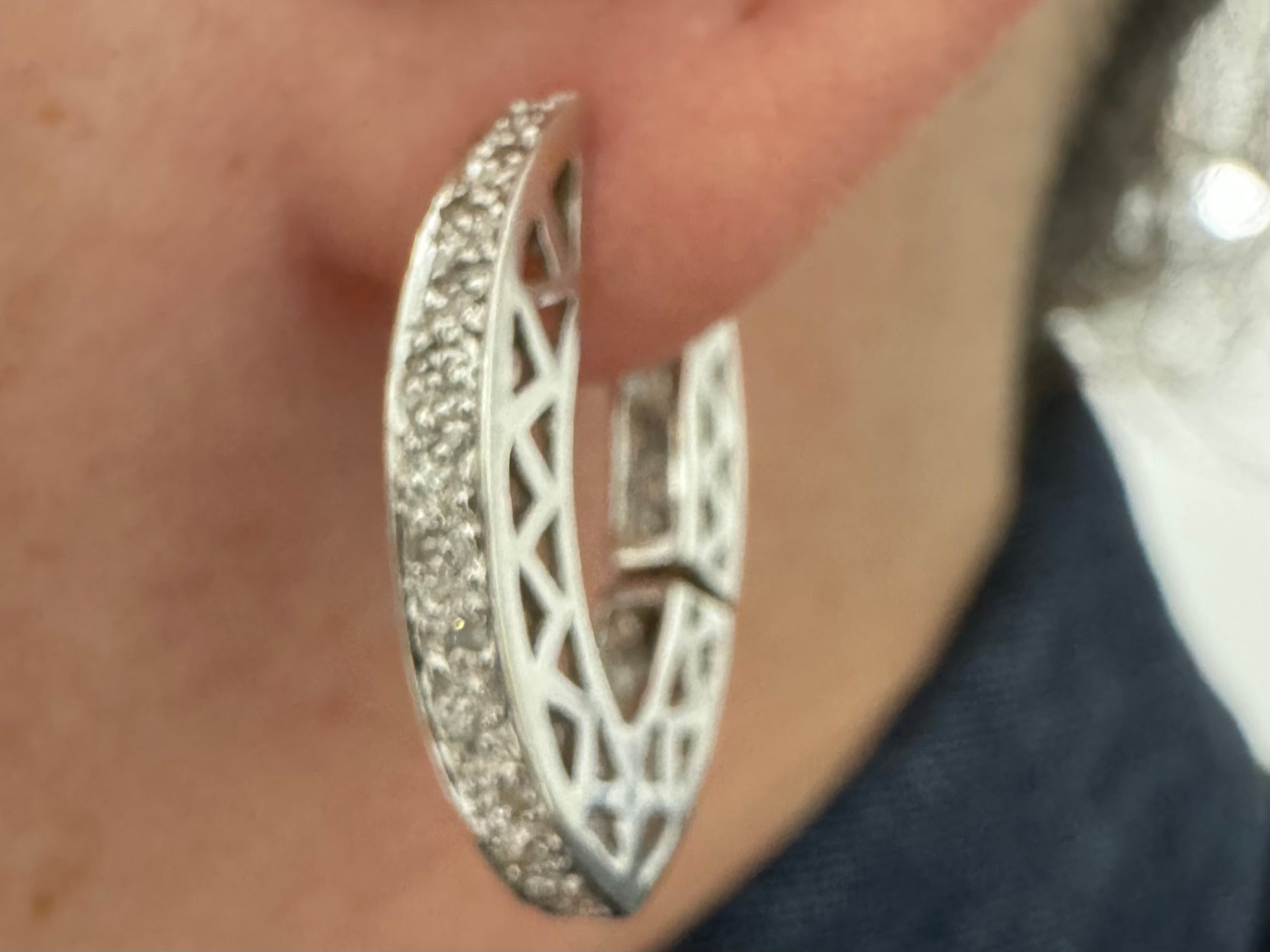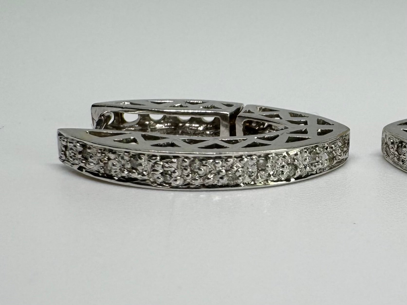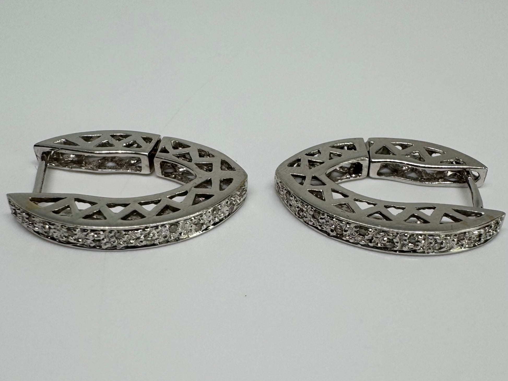14K white gold hoop earrings set with Diamonds