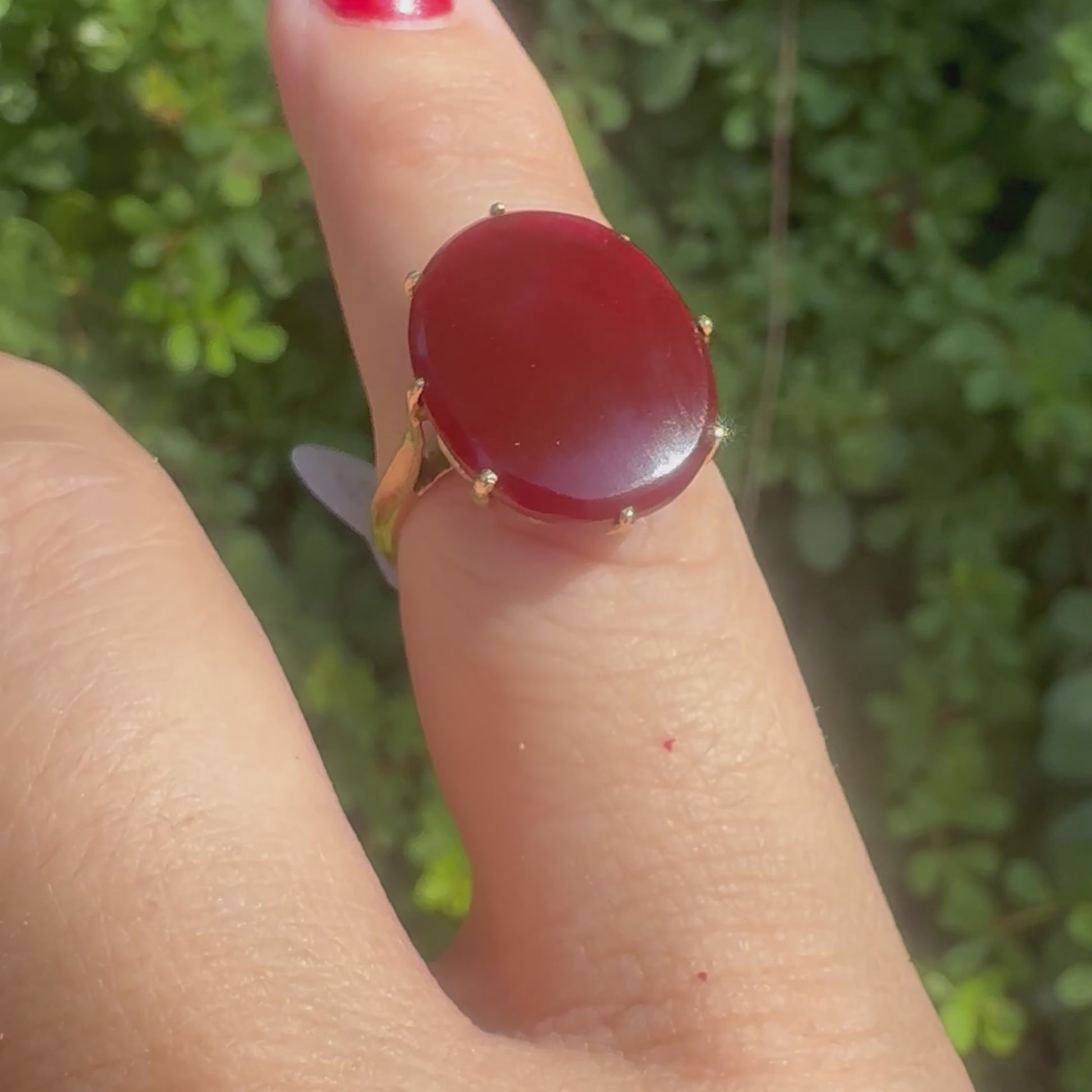 טבעת זהב 14K משובצת קרנליאן בצבע כתום
