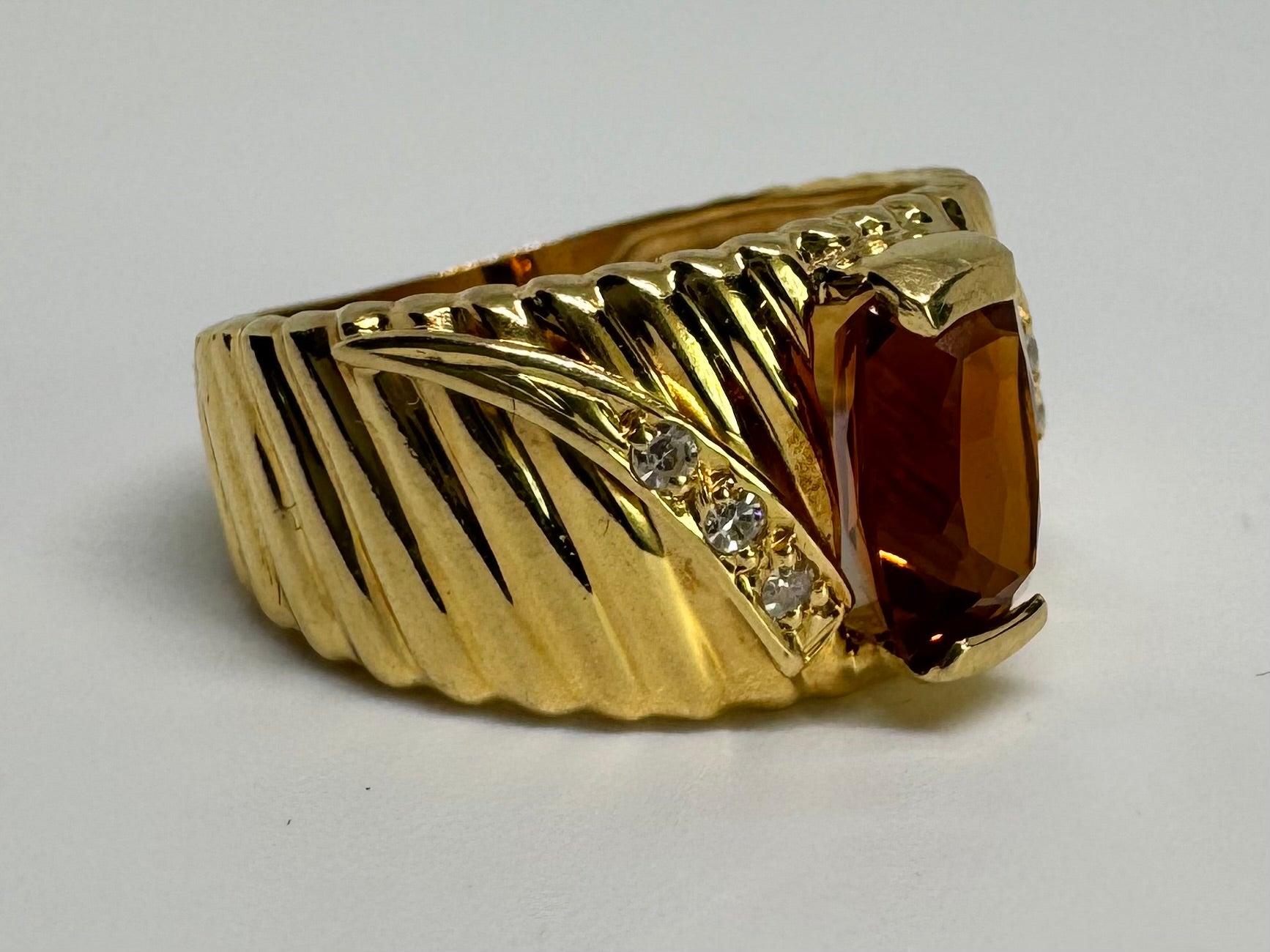 14K yellow gold ring set with Citrine & Diamonds with a textured gold band