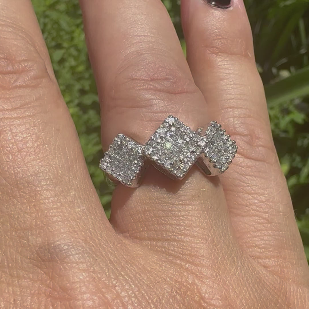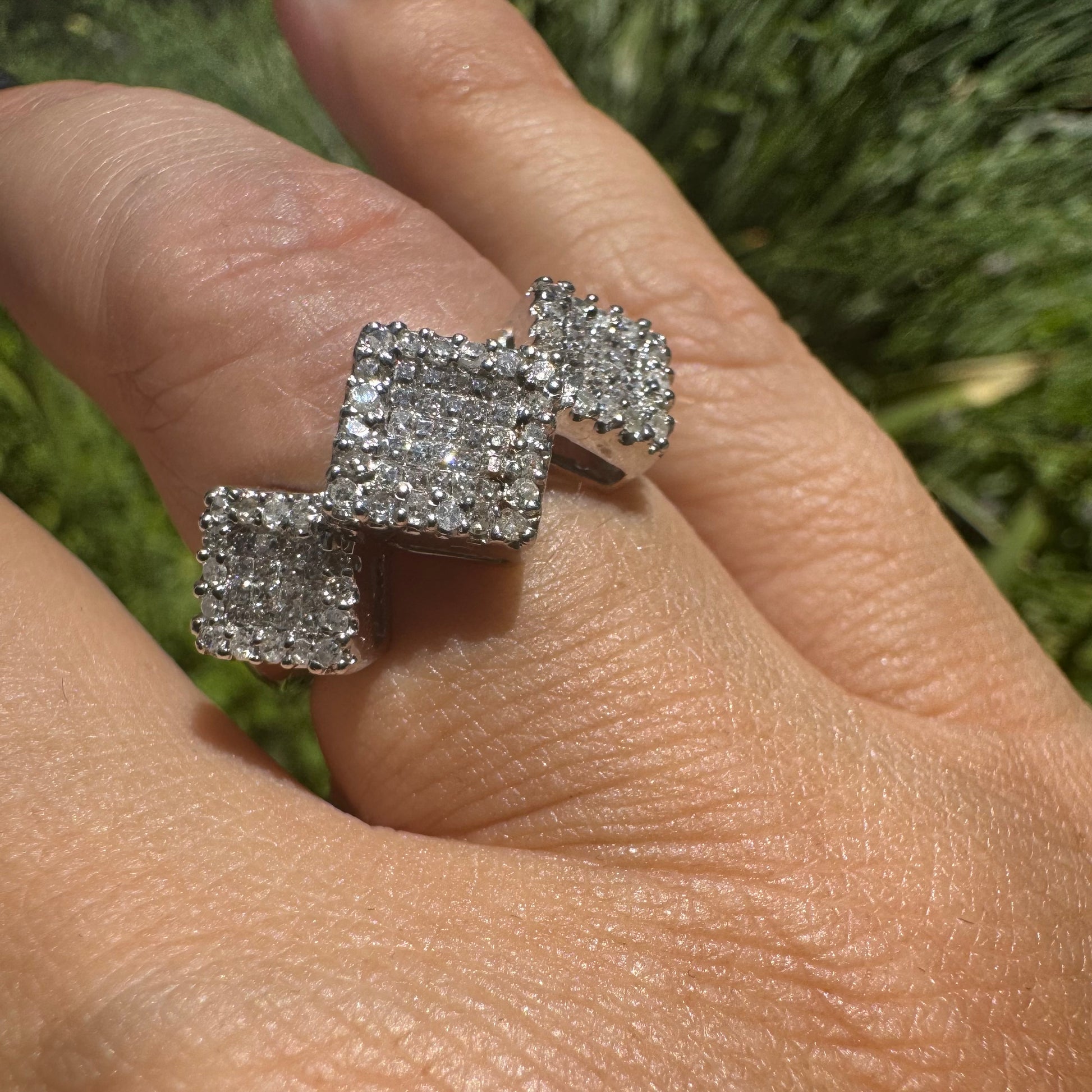 טבעת זהב לבן 14 קראט משובצת יהלומים
